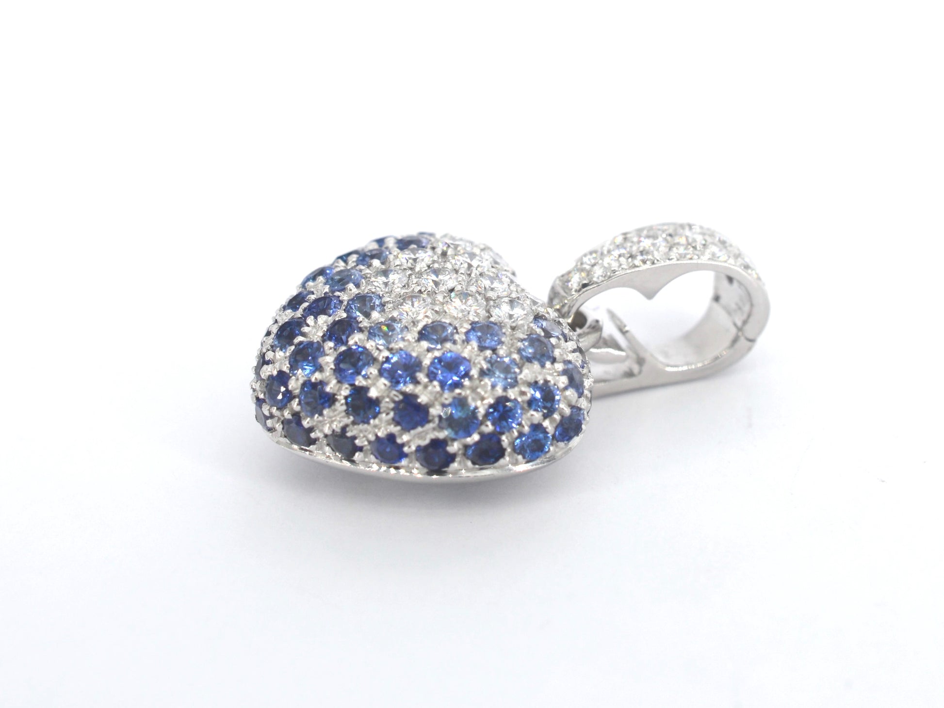 Leo Pizzo - Witgouden hart hanger met diamanten en saffieren