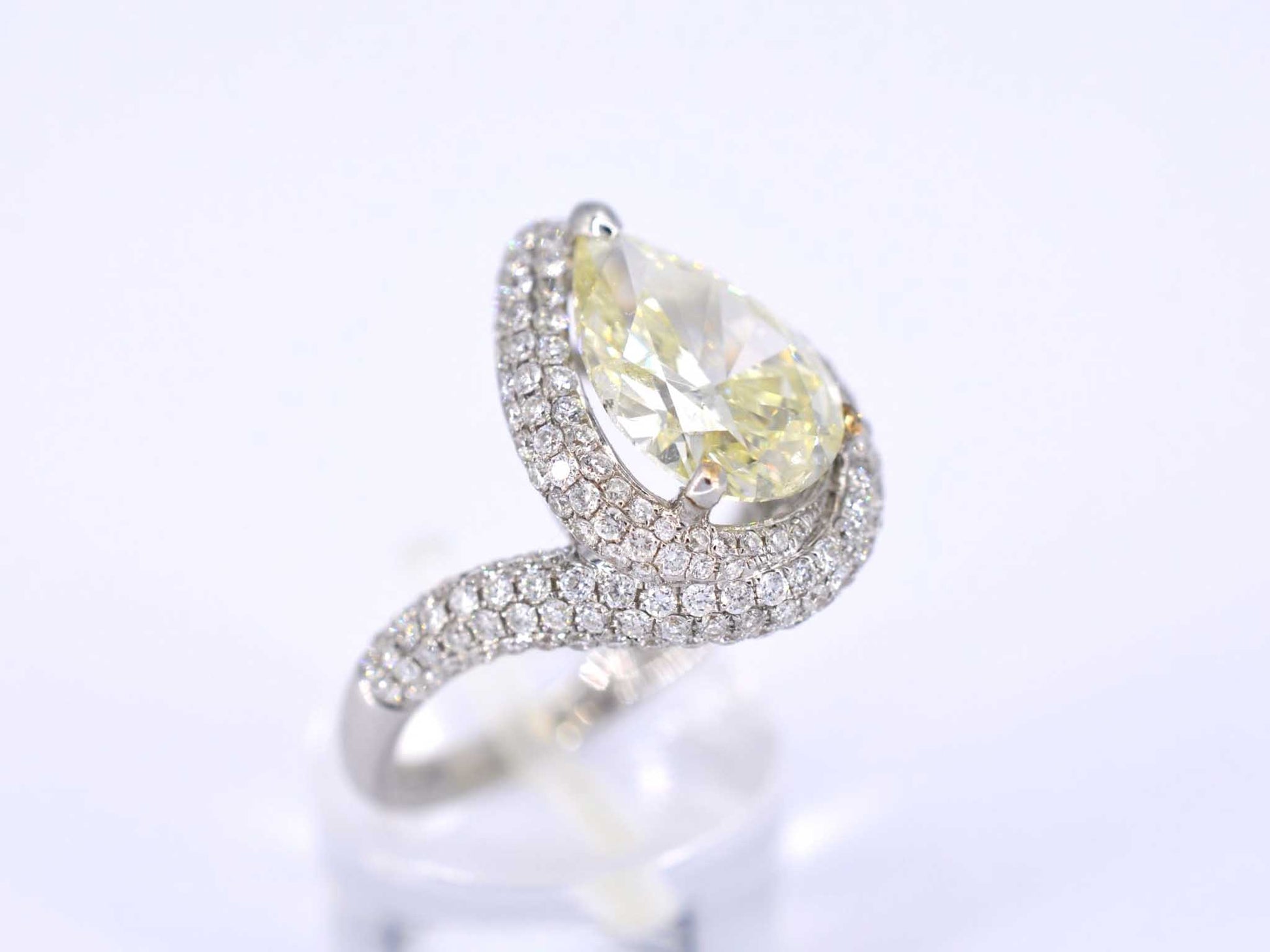 Witgouden bijzondere diamanten ring met een pear shape diamant van 3.00 carat