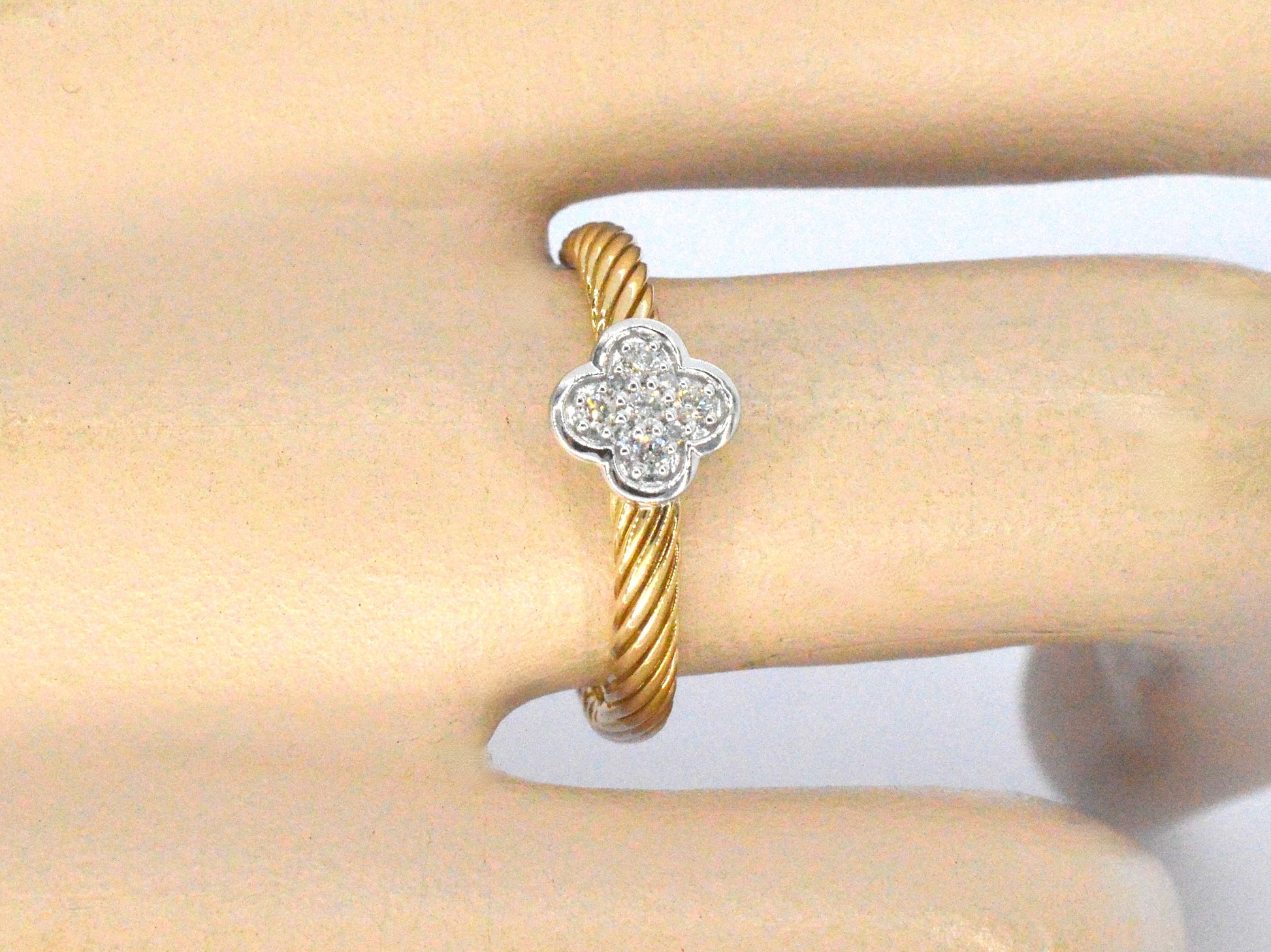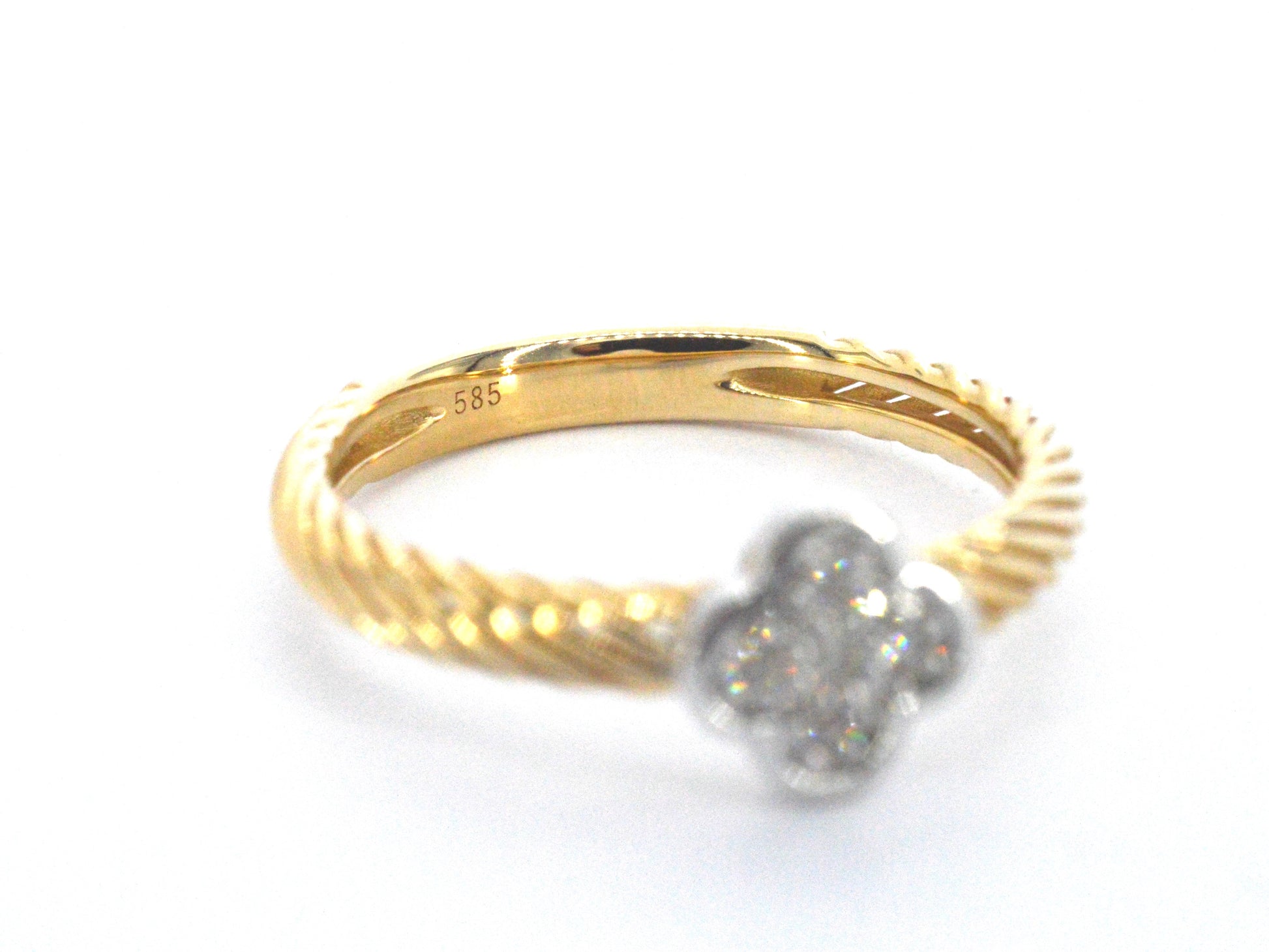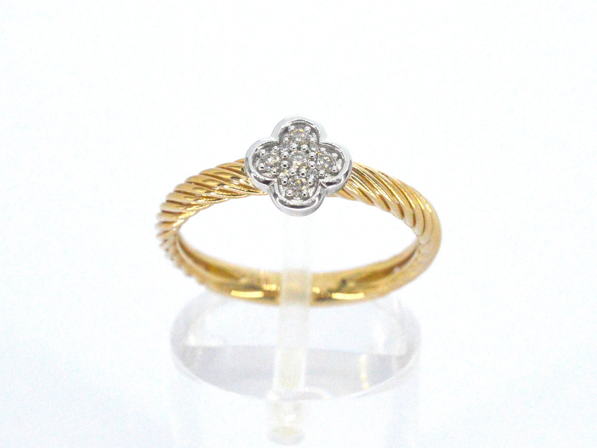 Goldring mit einem vierblättrigen Kleeblatt, besetzt mit Diamanten