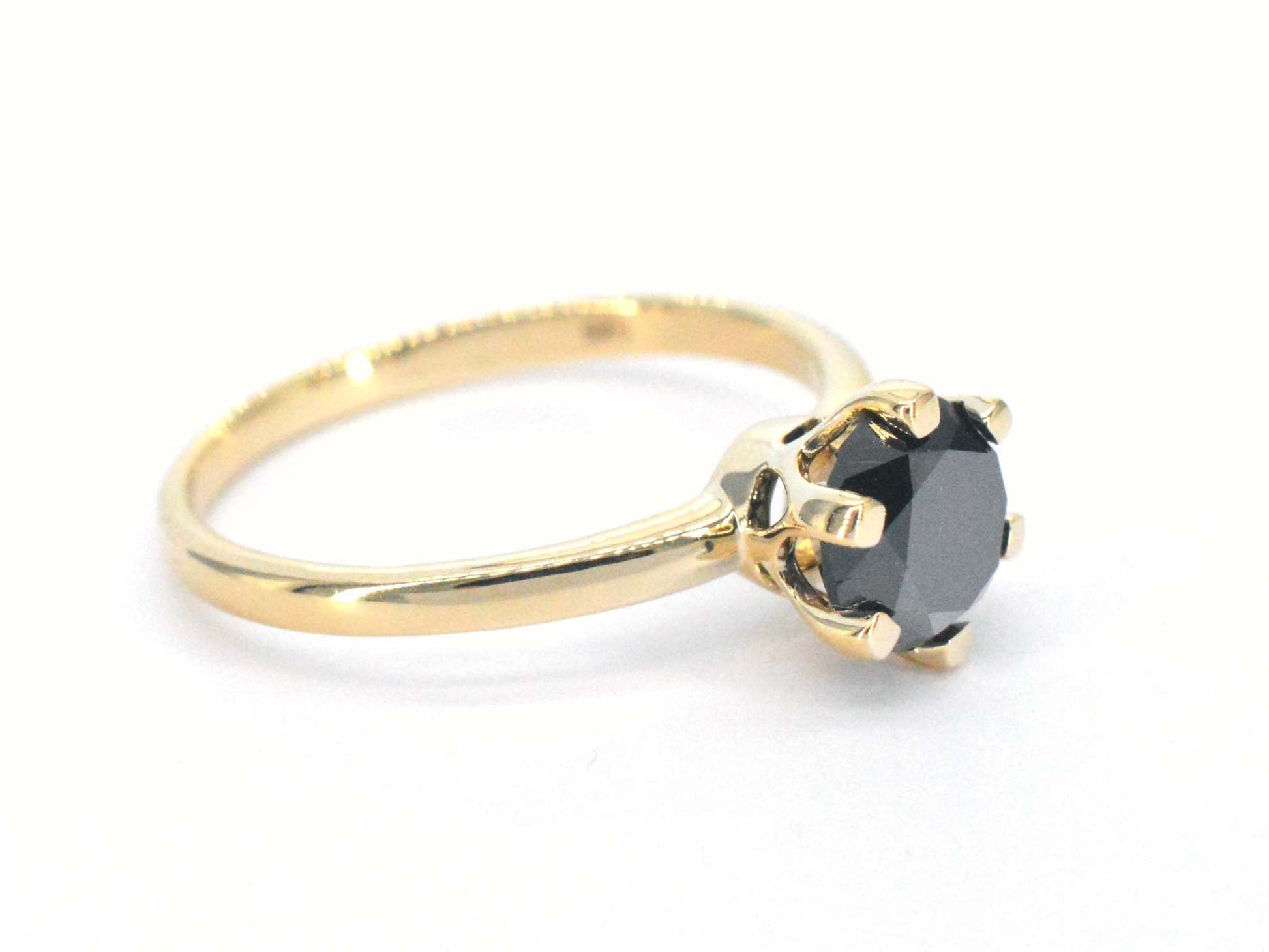 Goldener Solitärring mit einem schwarzen Diamanten im Brillantschliff