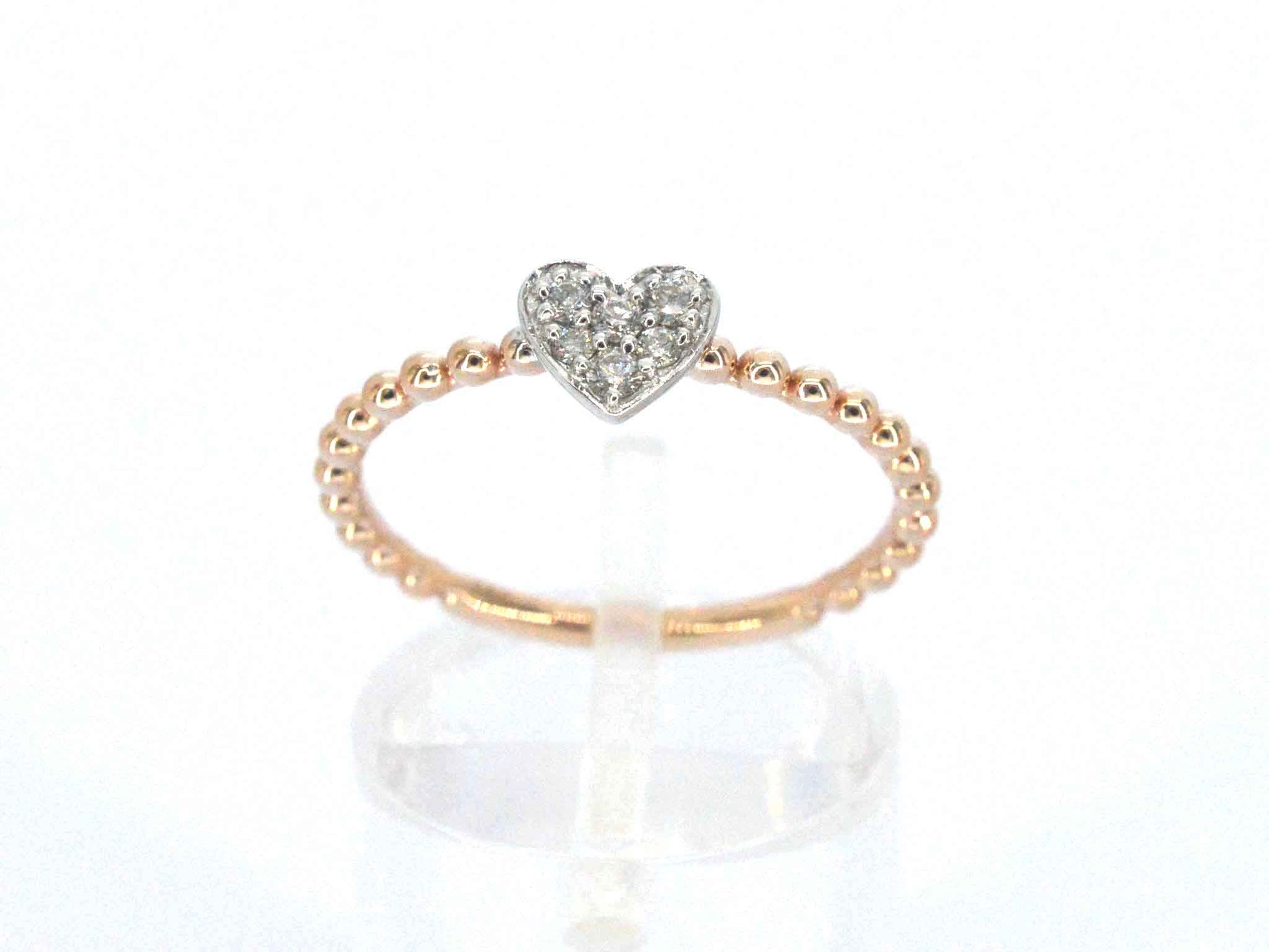 Roségoldring mit einem mit Diamanten besetzten Herz