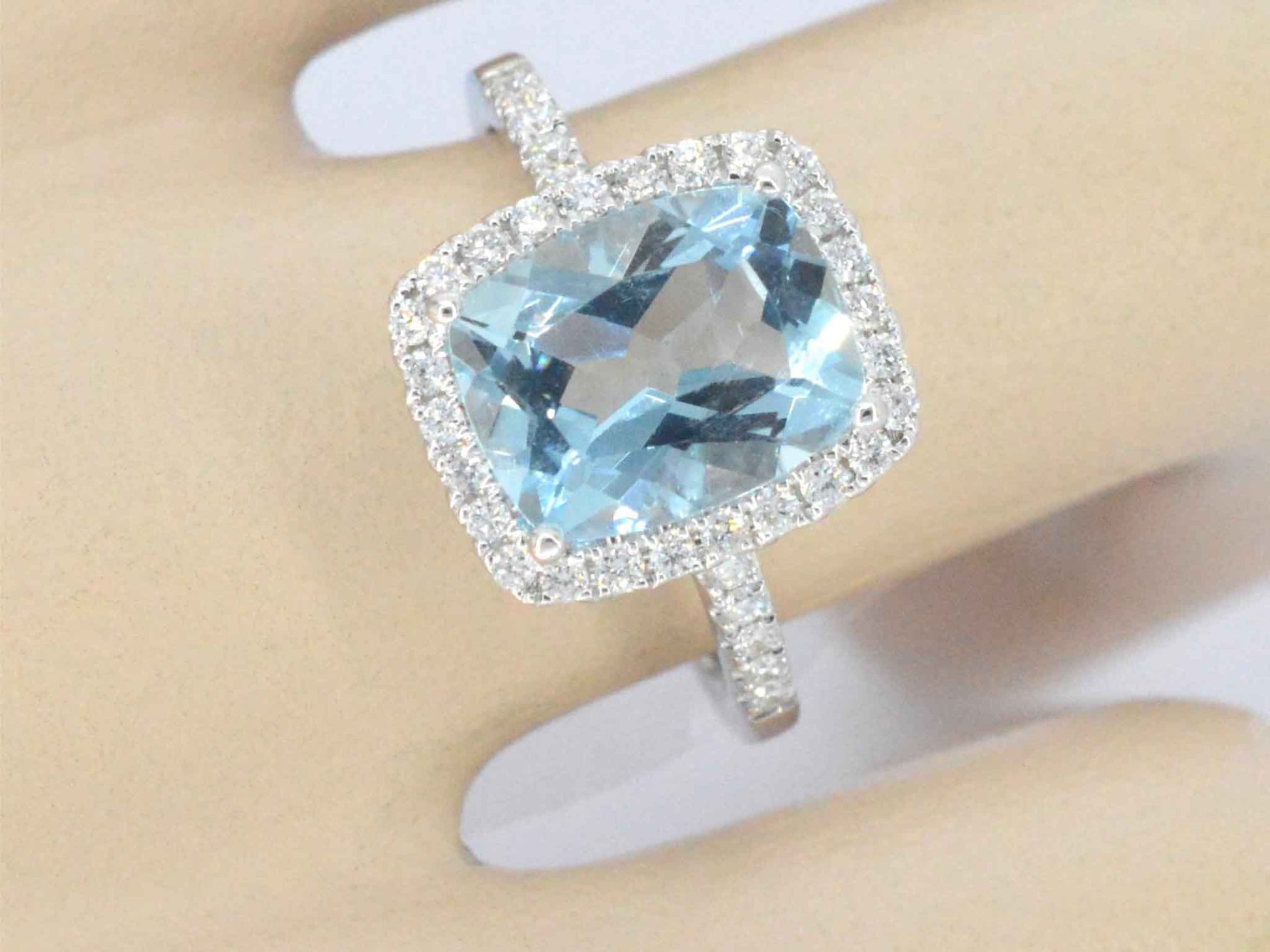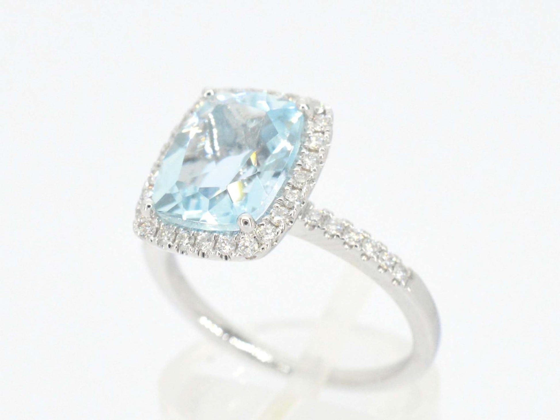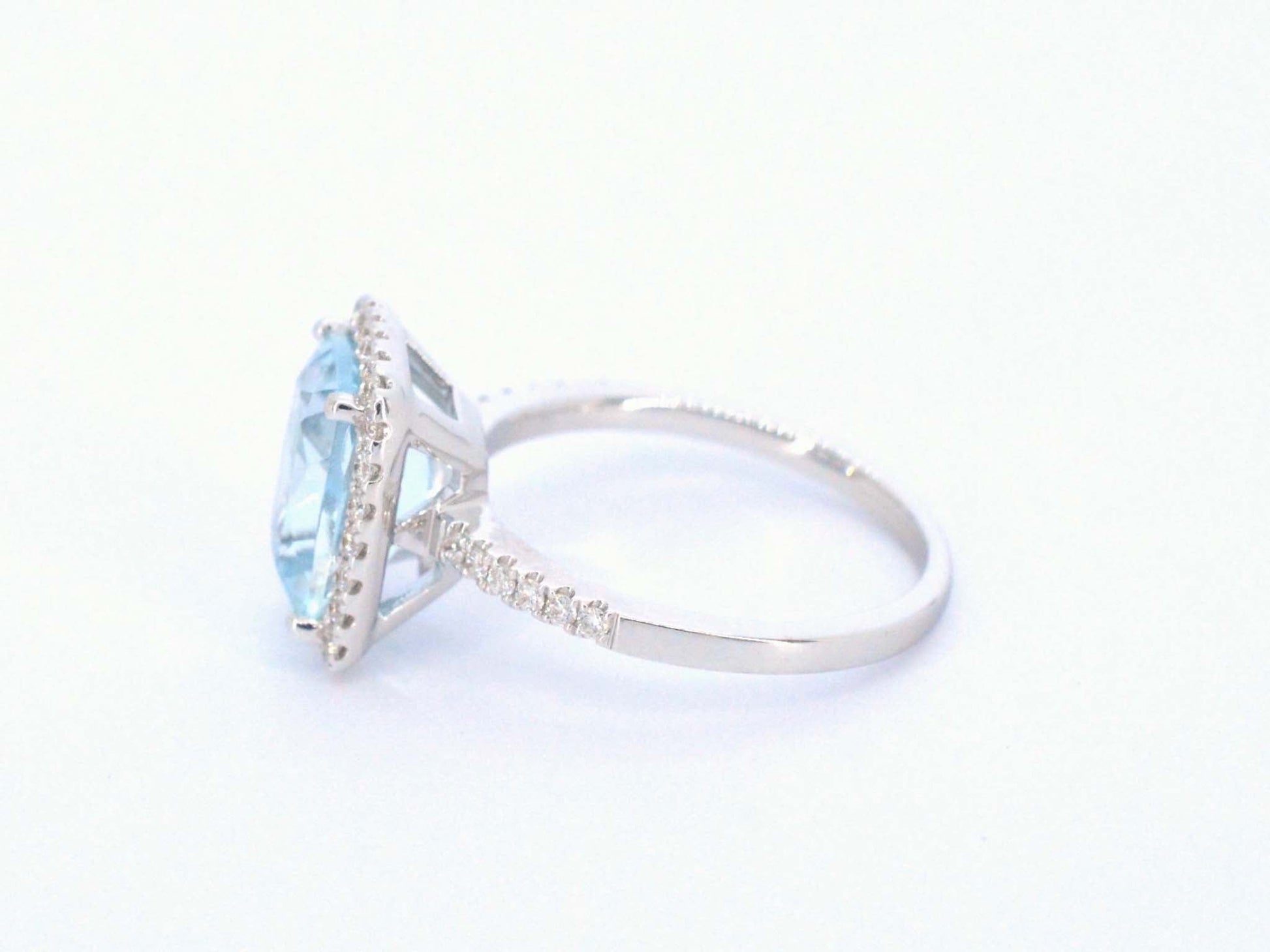 Weißgoldener Entouragering mit einem besonderen Aquamarin
