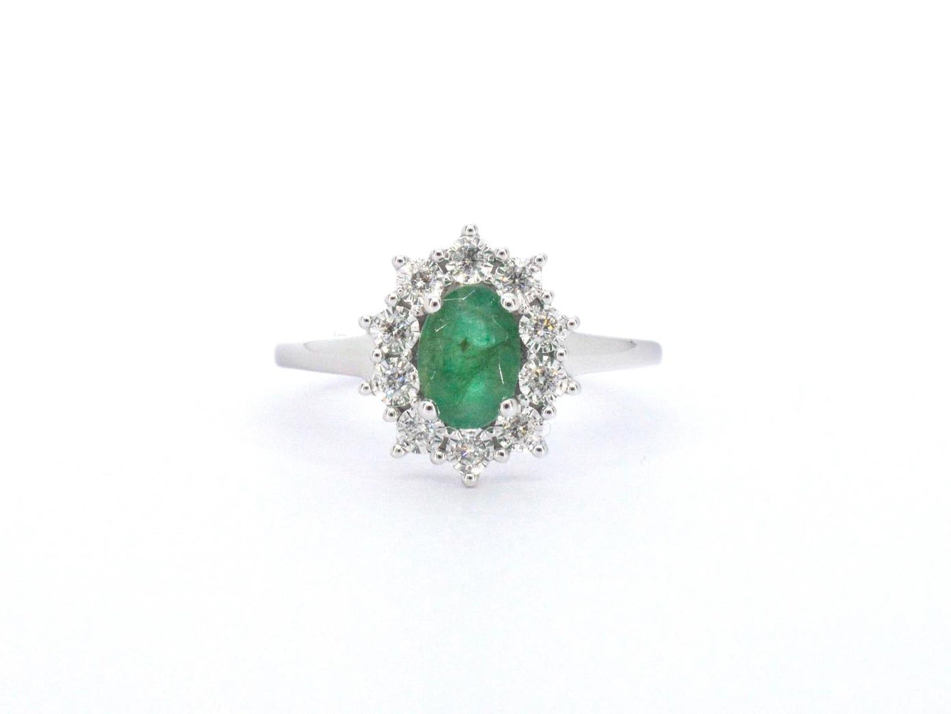Weißgold-Entouragering mit Smaragd und Diamanten