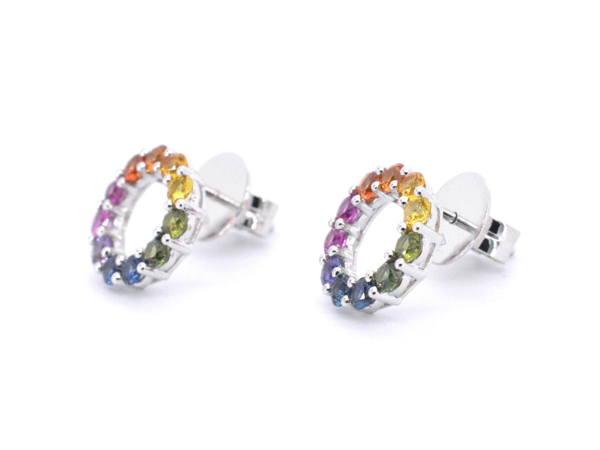 Weißgold-Ohrringe mit mehrfarbigen Saphiren im Kreis