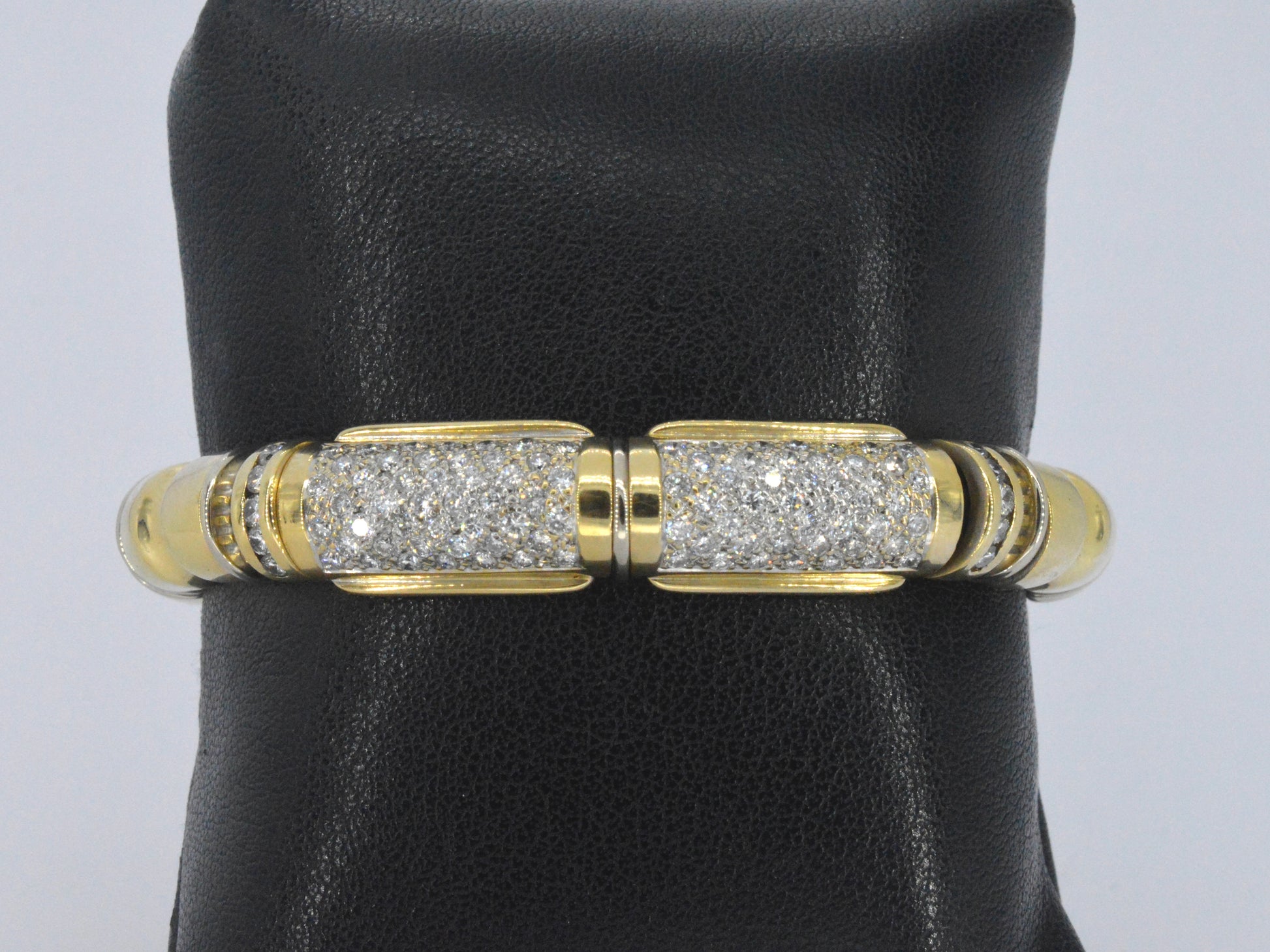 Gouden brede bangle armband met hoge kwaliteit aan diamanten
