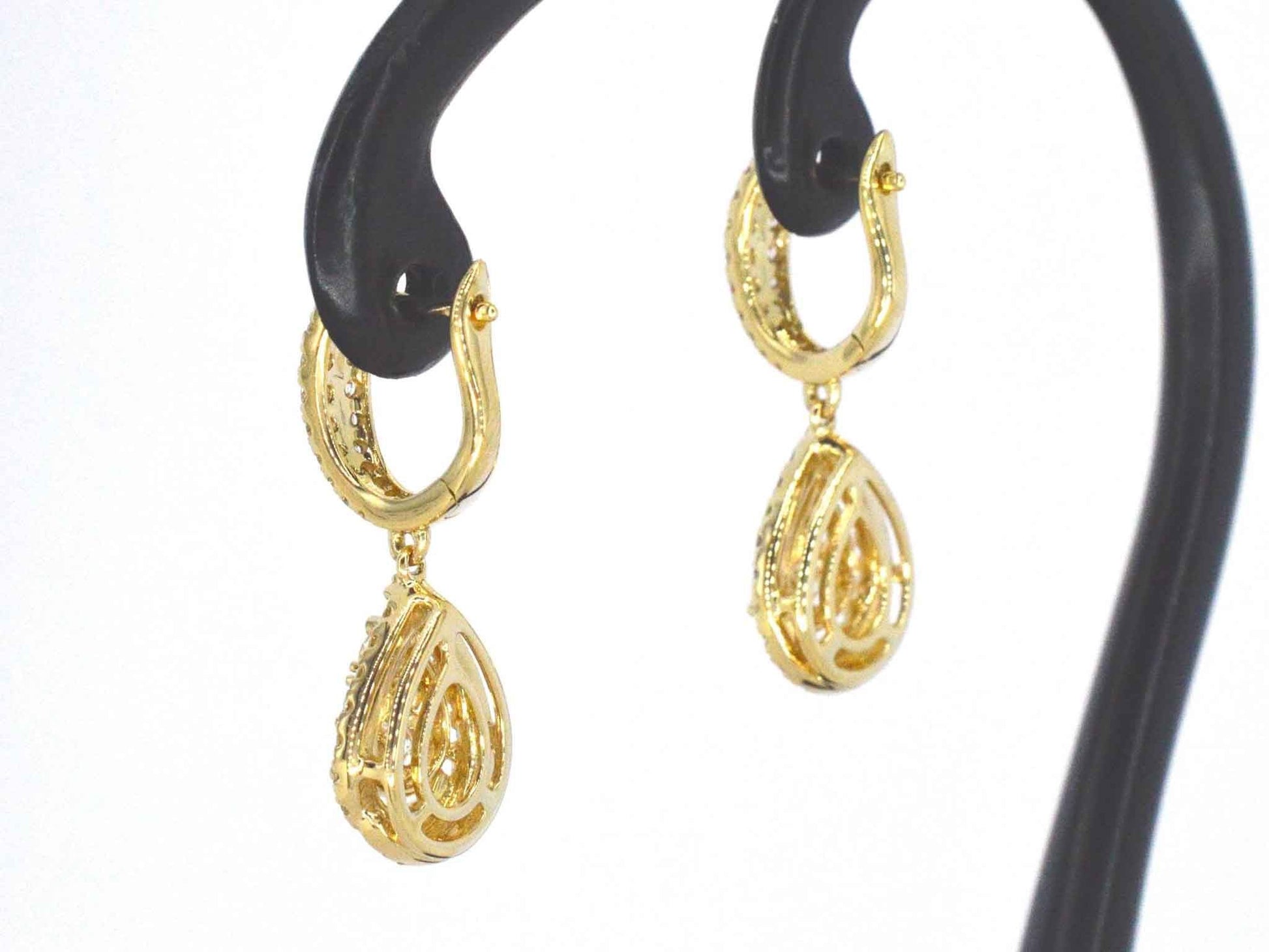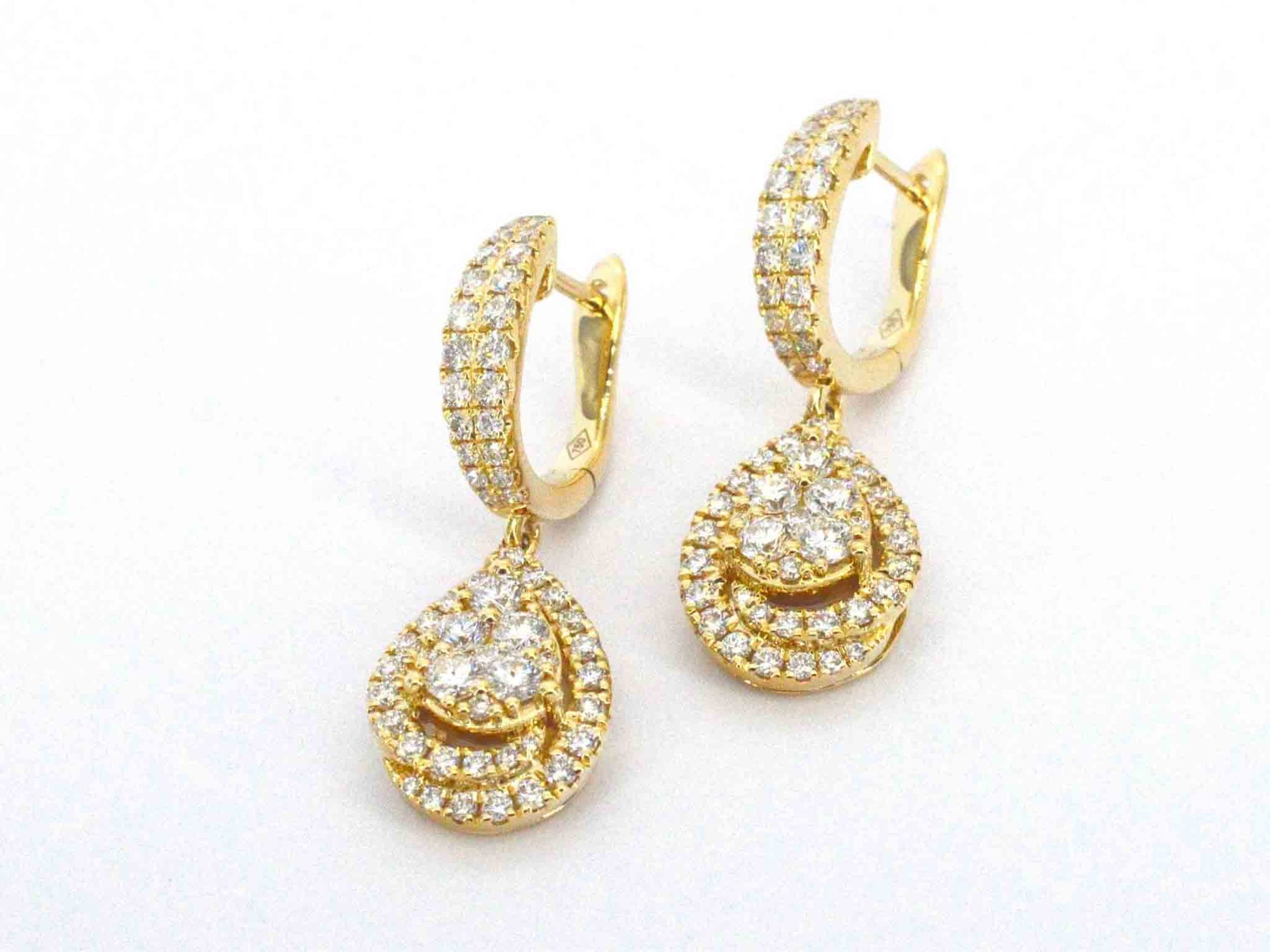 Gold teardrop-shaped earrings with brilliant-cut diamonds