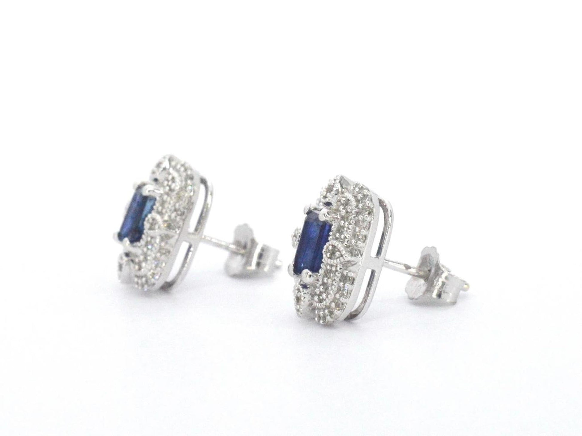 White gold designer earrings with diamonds and sapphire