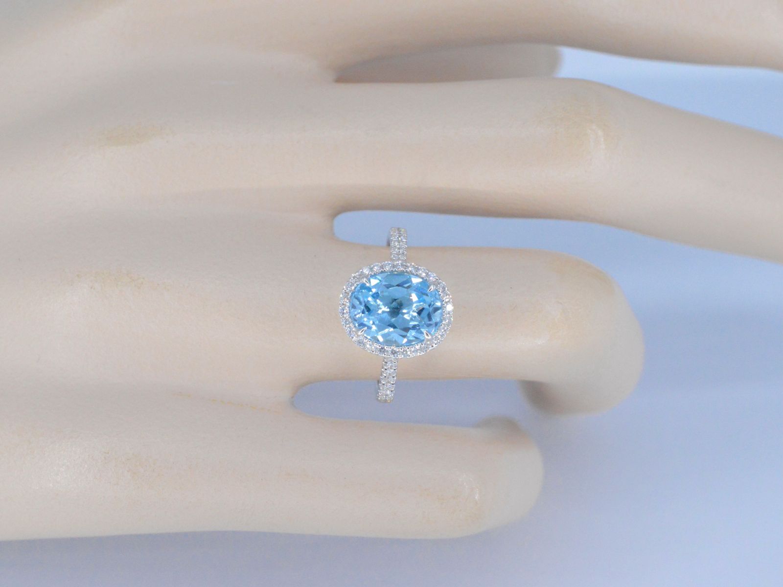 White gold entourage ring with oval cut topaz