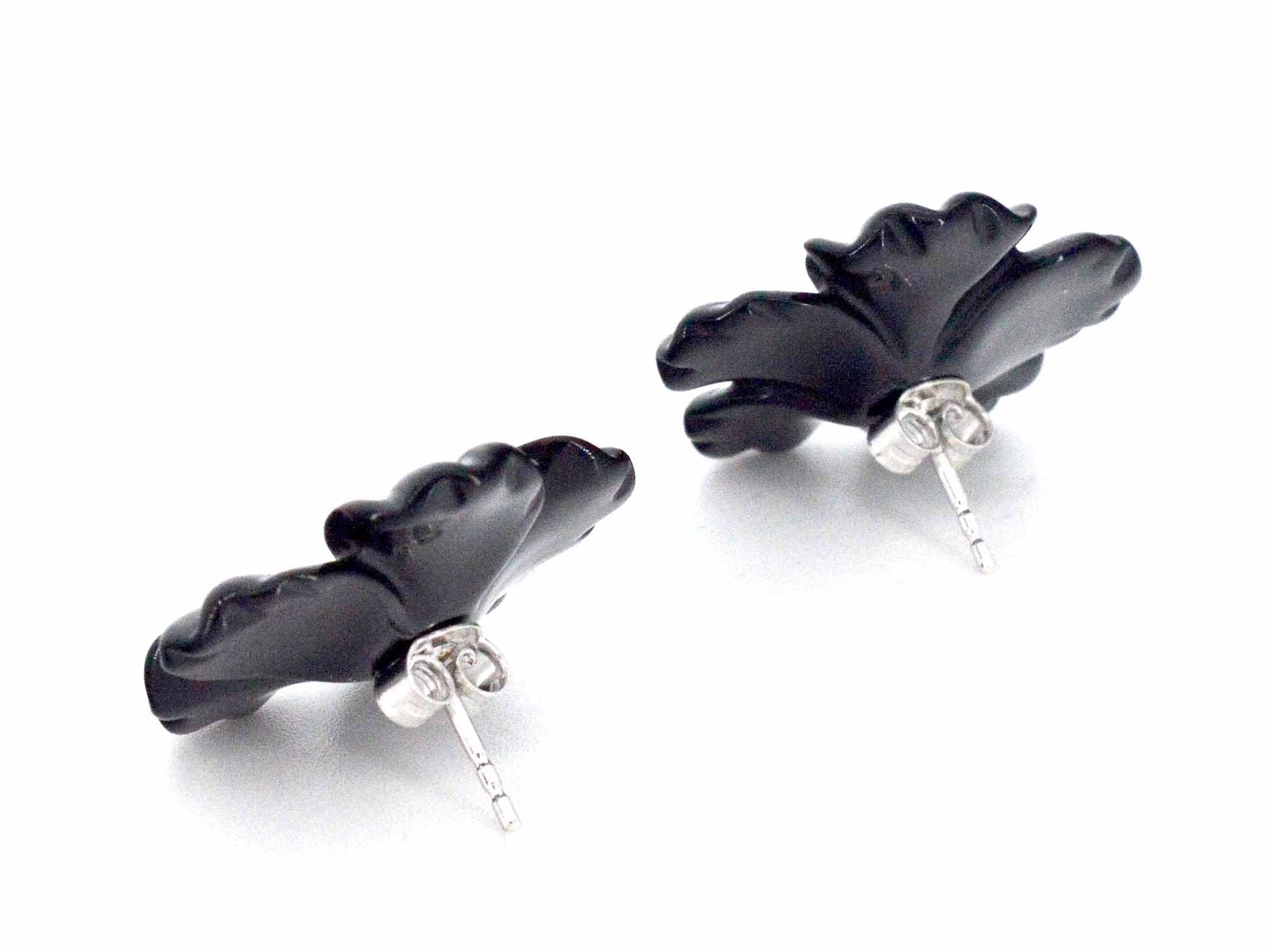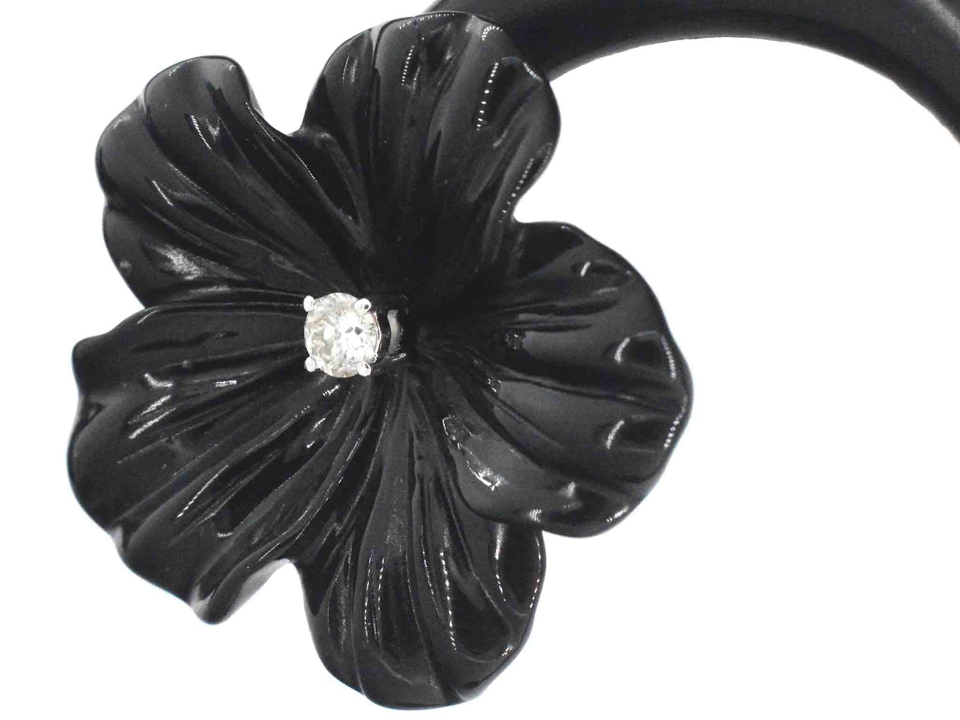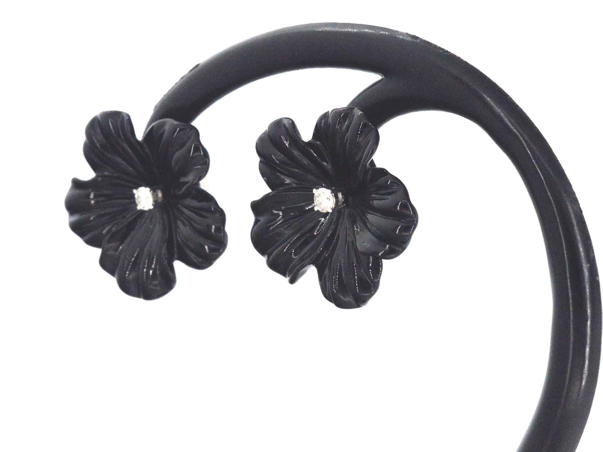 White gold earrings 0.18 carat with black precious flower and large diamonds
