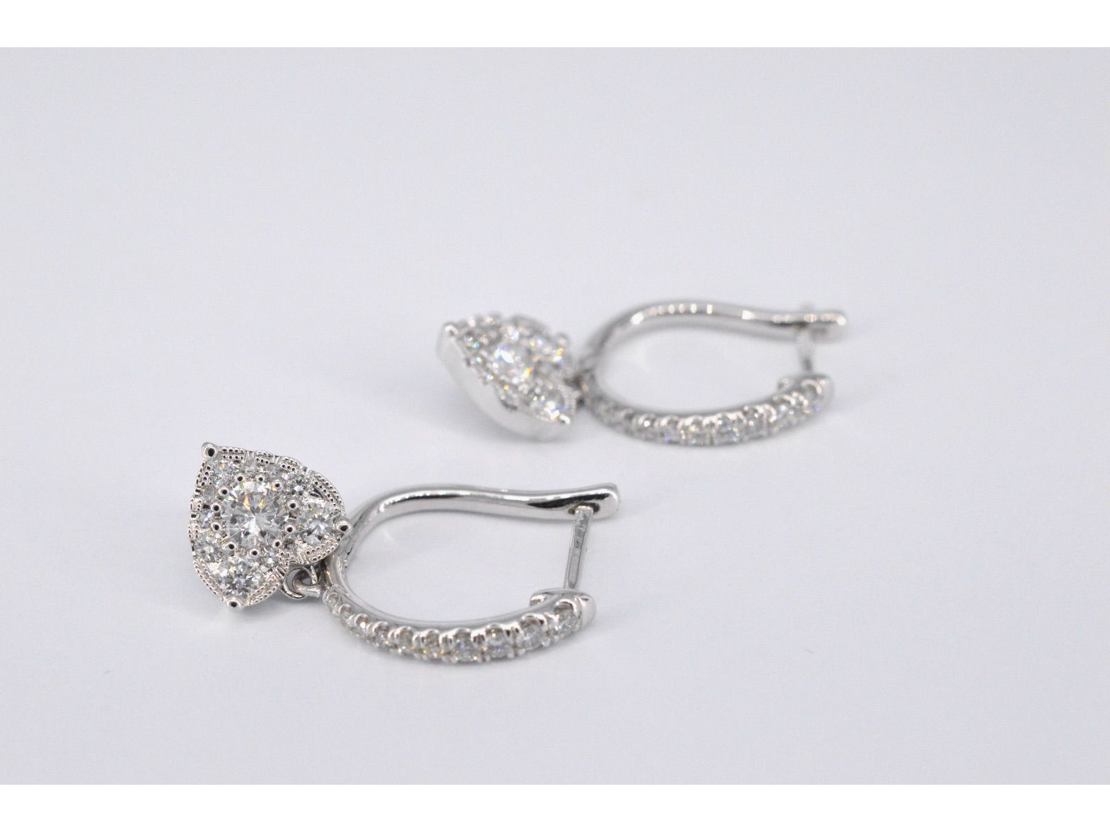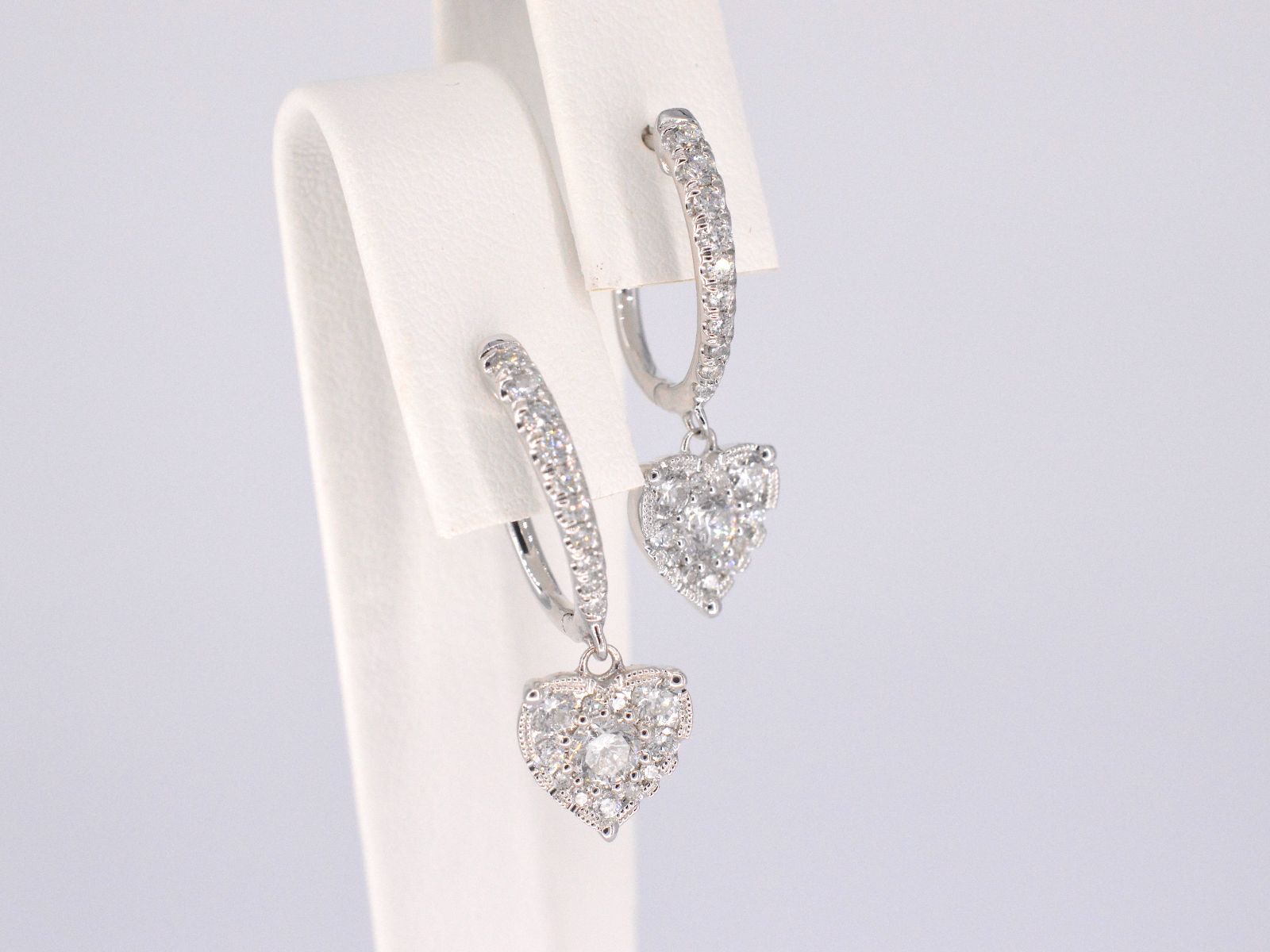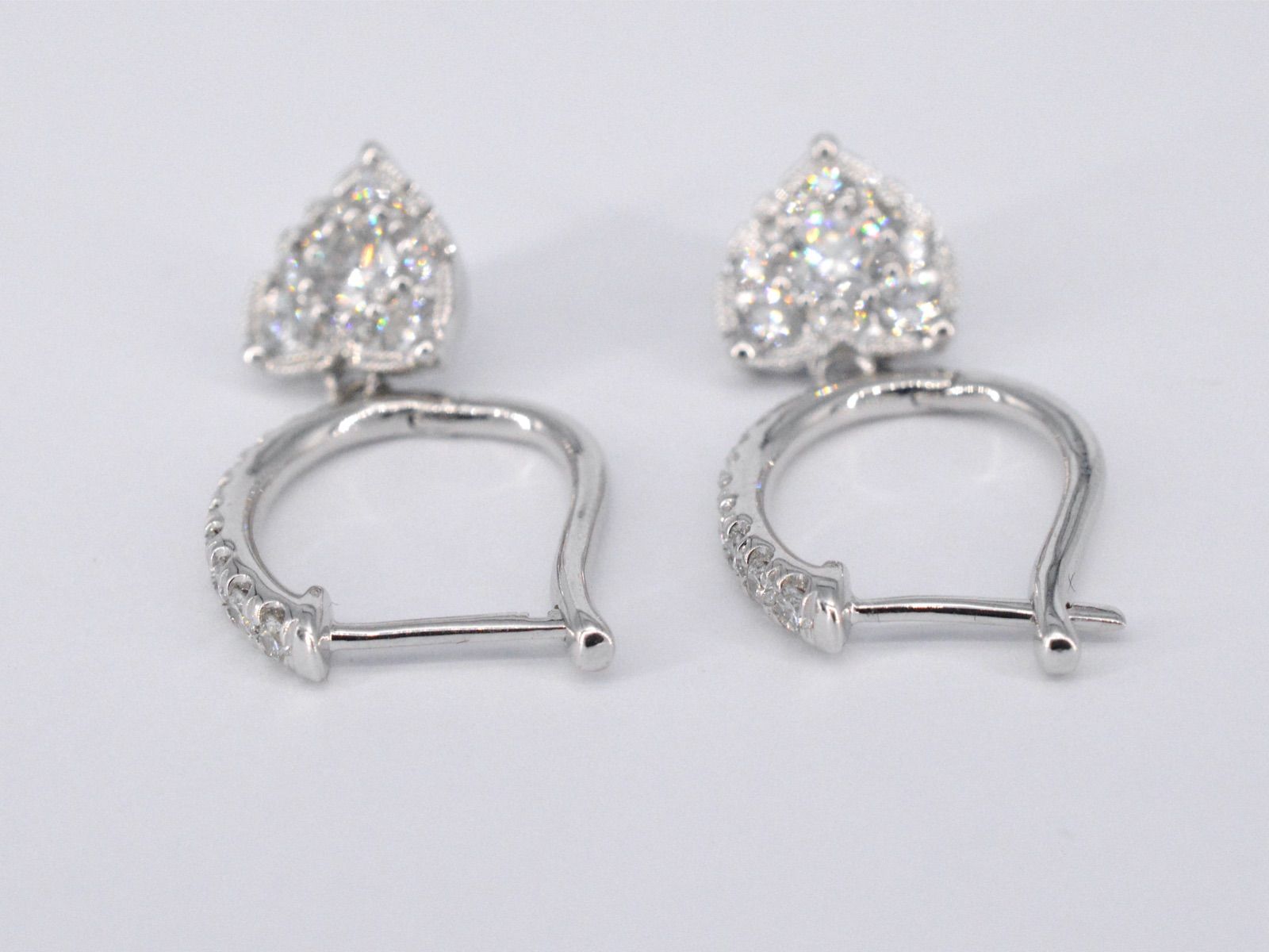 White gold earrings with diamonds in heart shape