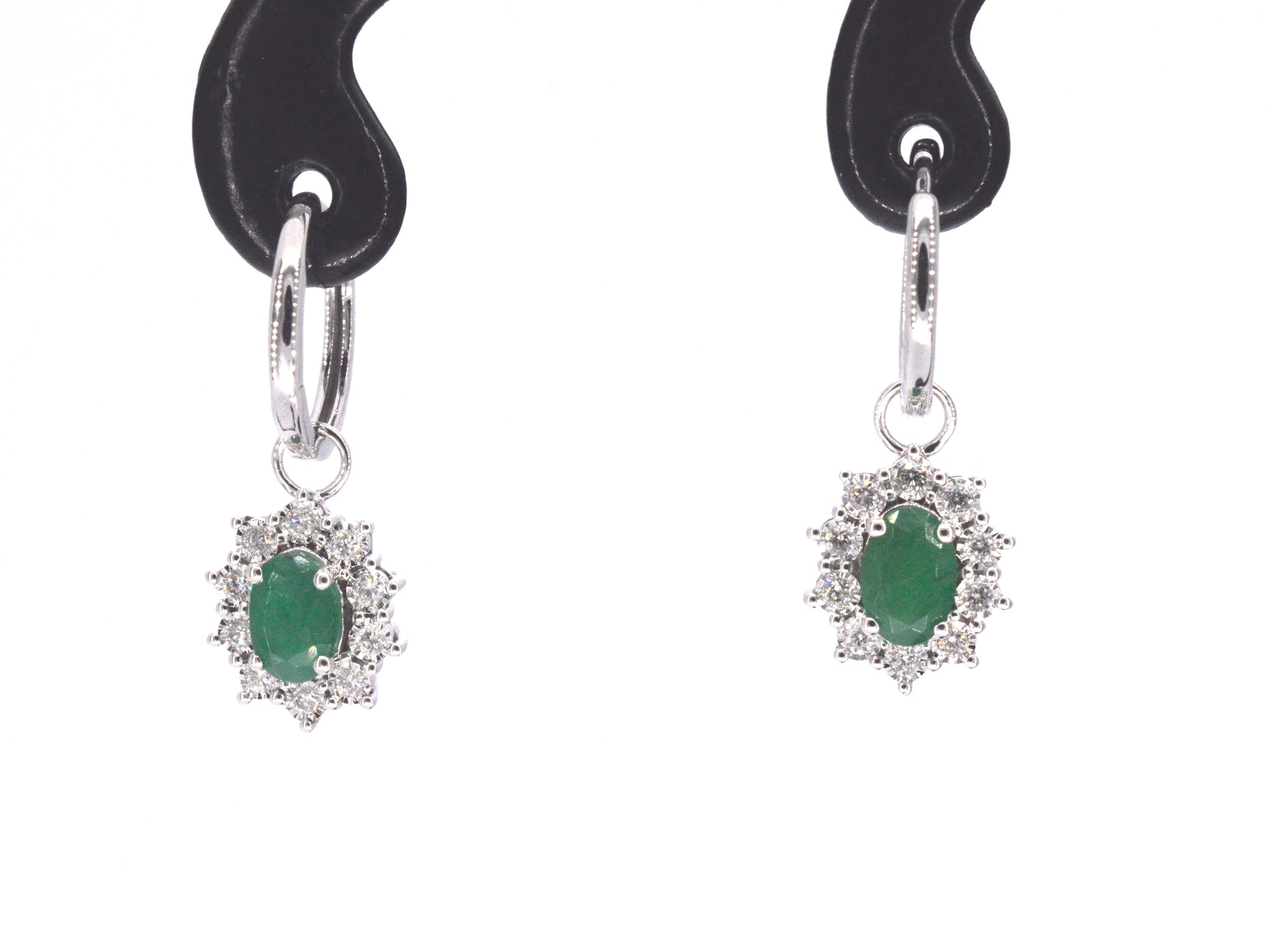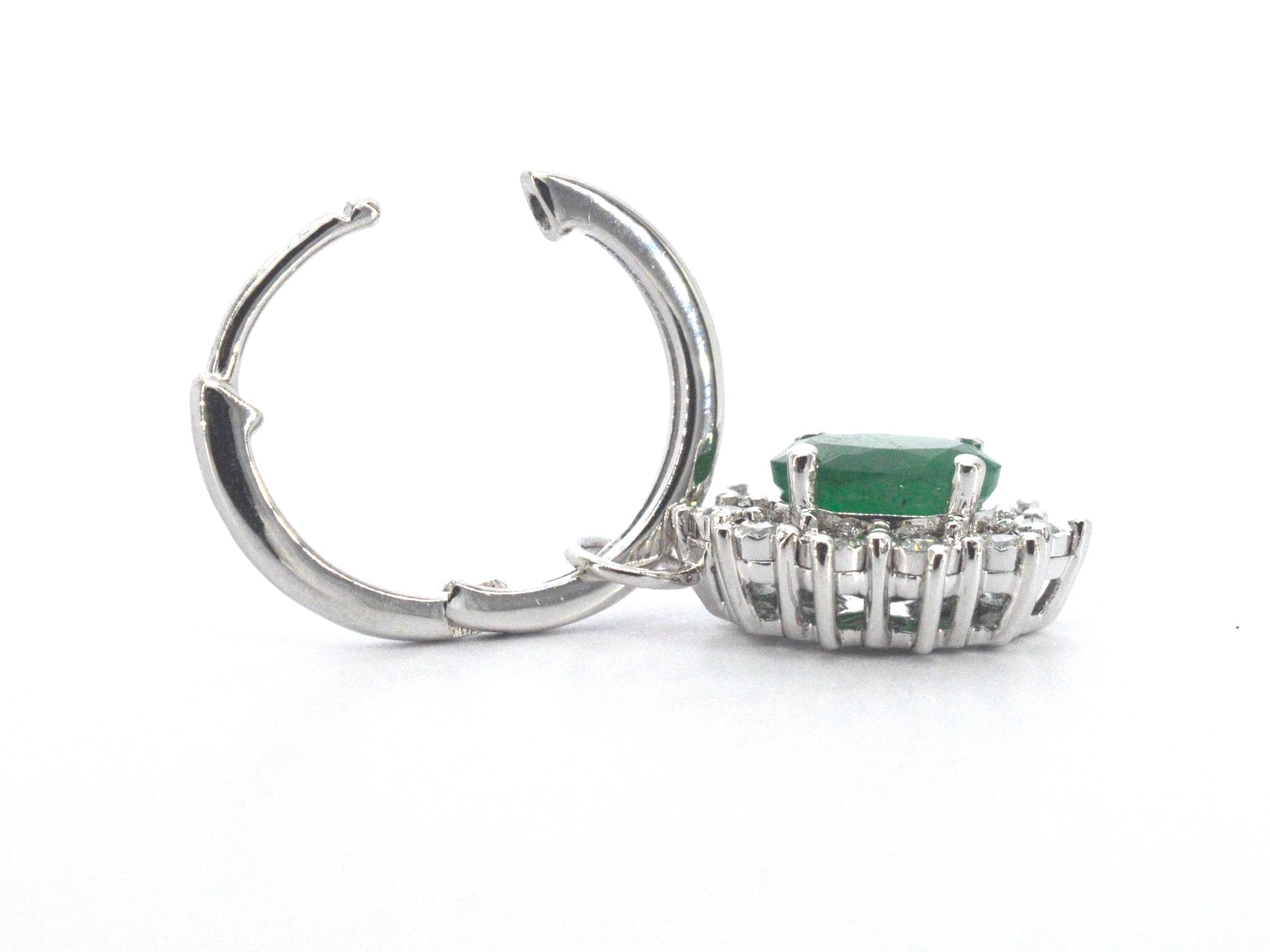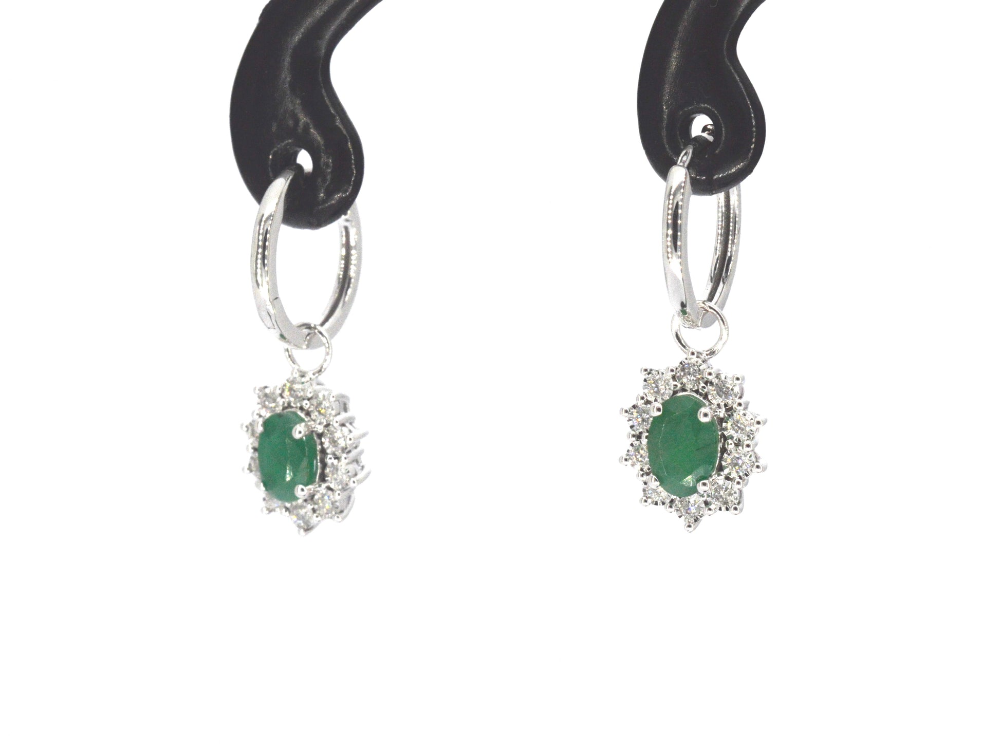 White gold earrings with natural diamonds and emeralds