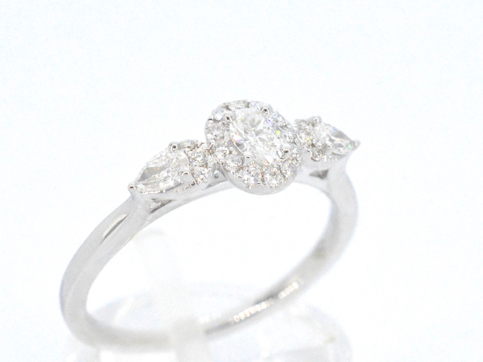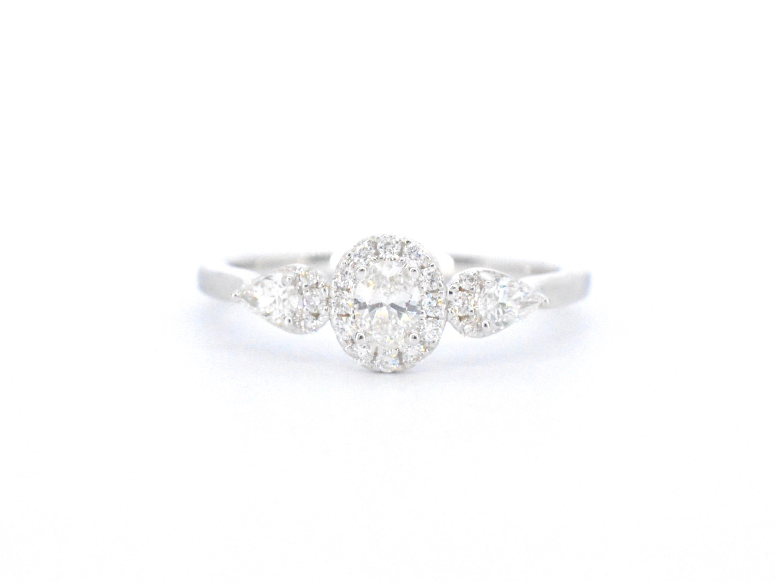 White gold ring with diamonds and an oval cut diamond