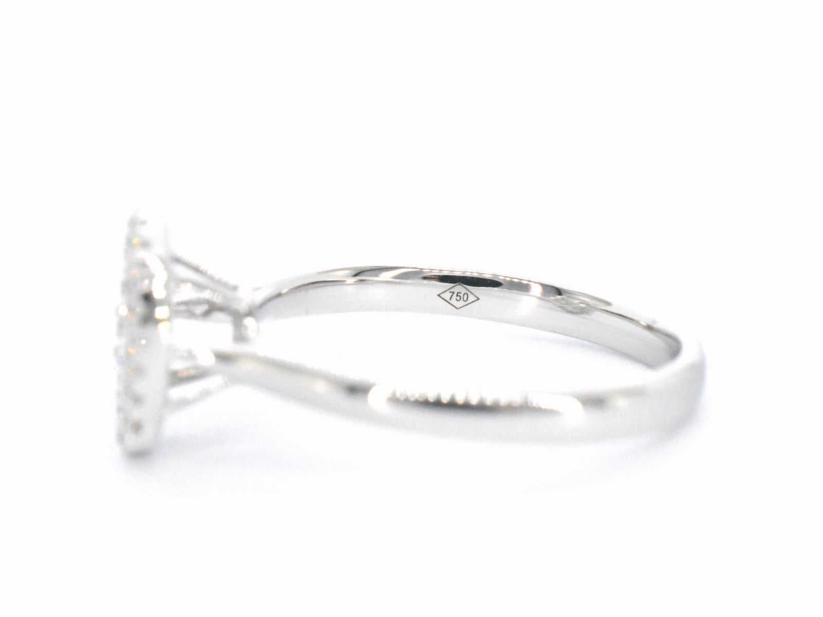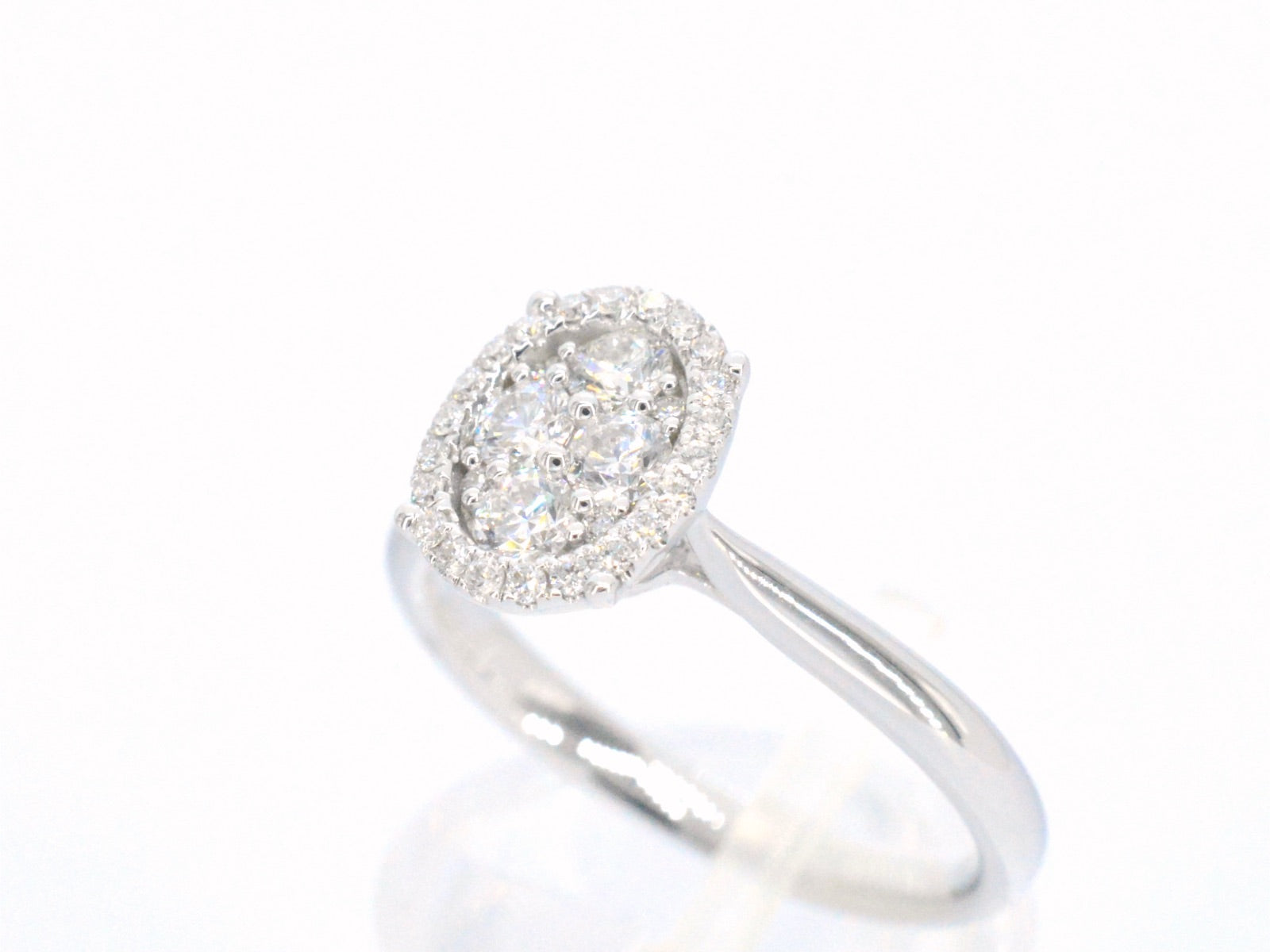 White gold ring with diamonds in oval shape