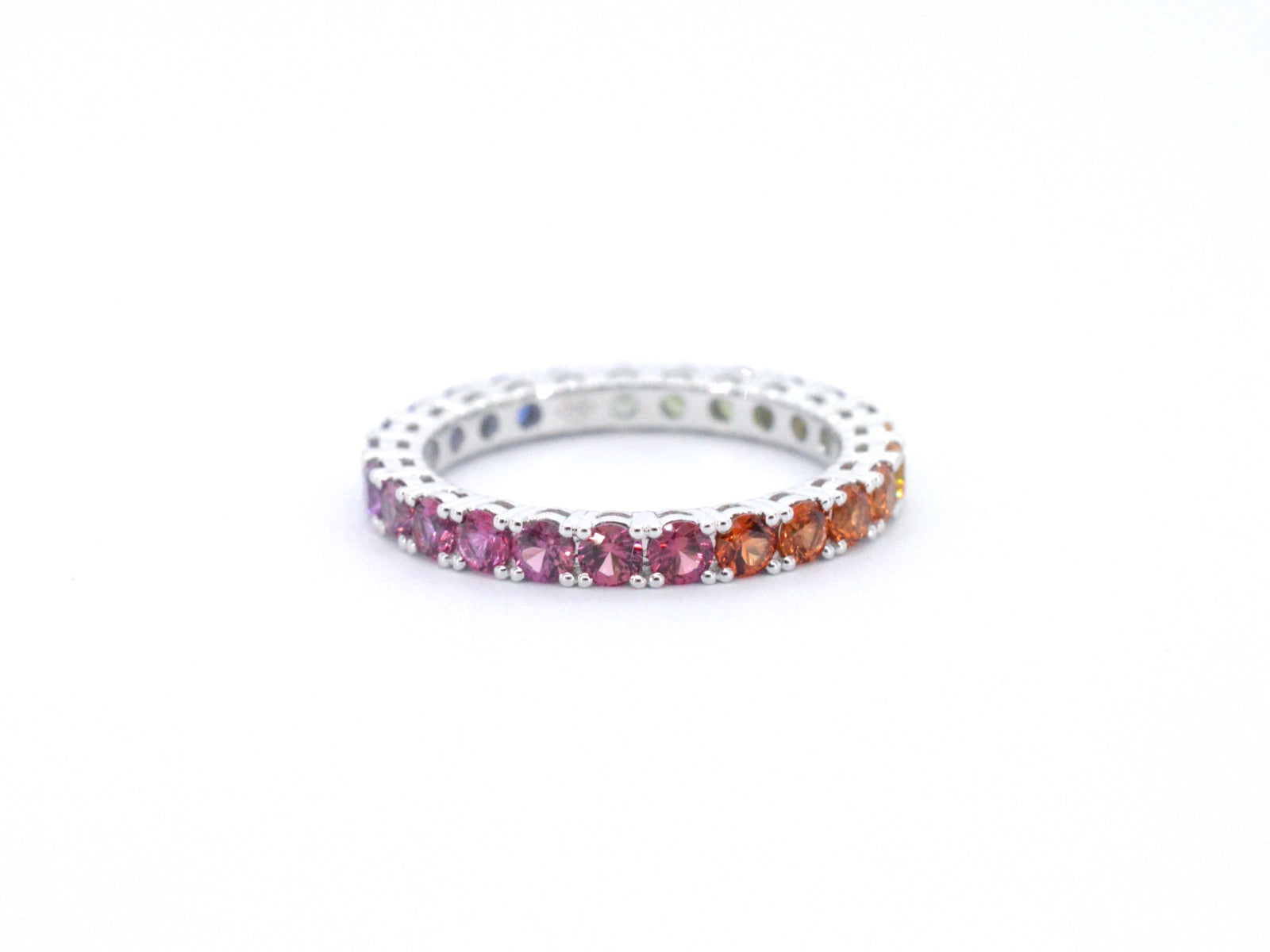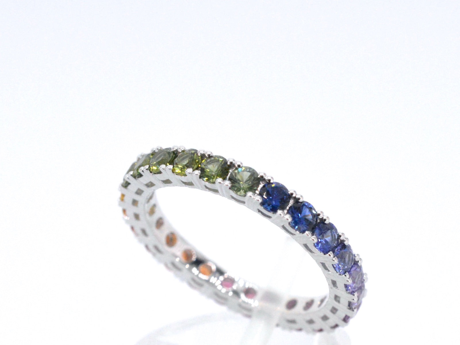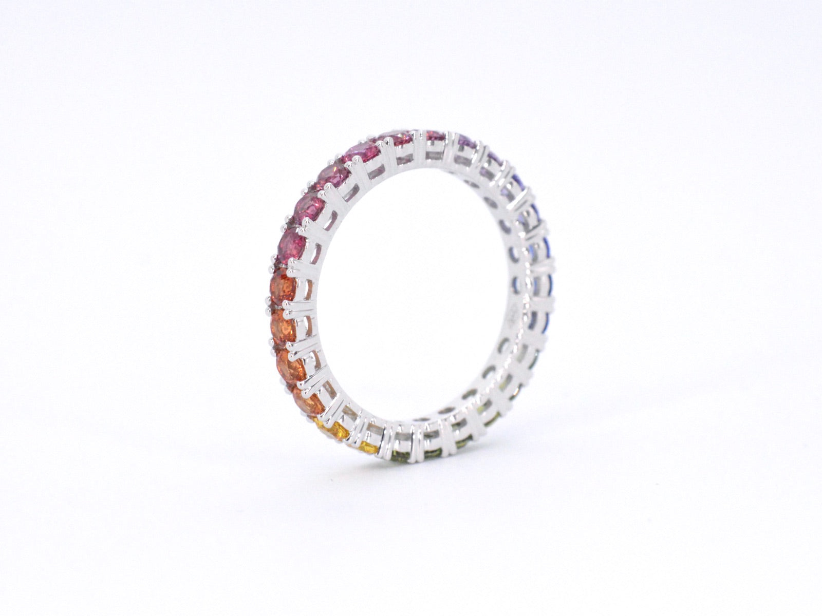 White gold ring with multicoloured sapphires