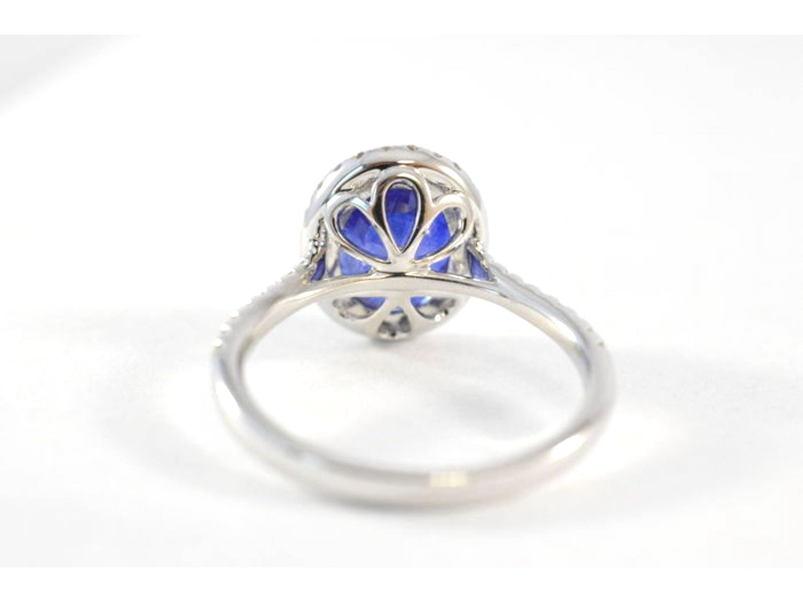 Witgouden entourage ring met diamanten en saffier