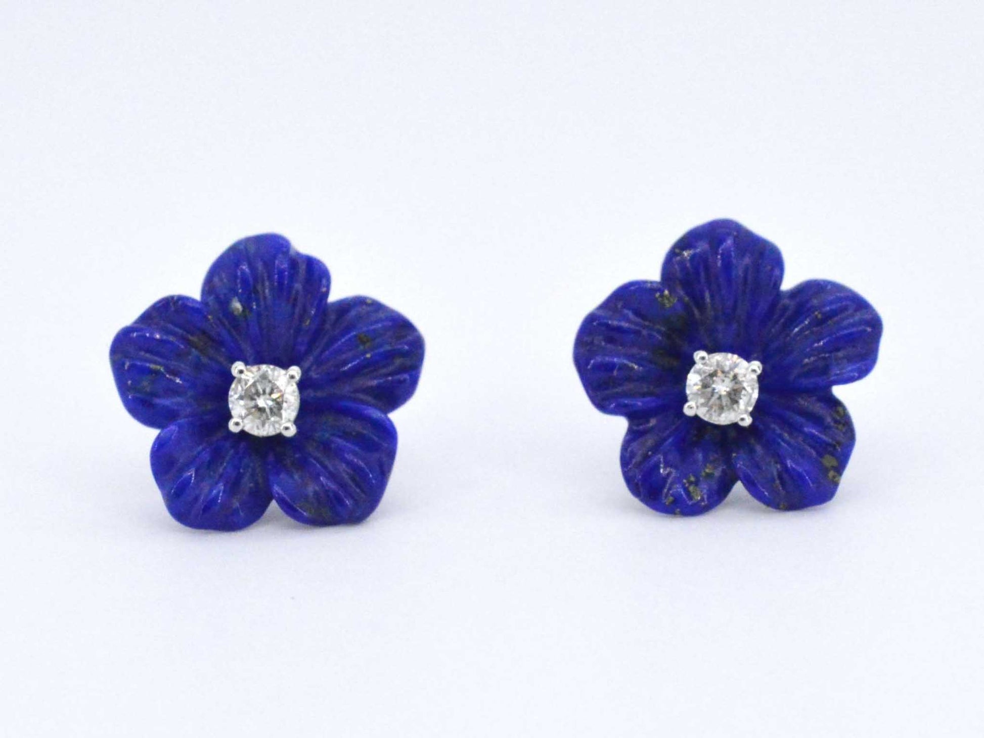 Witgouden oorbellen 0.18 carat met blauwe edele bloem en grote diamanten