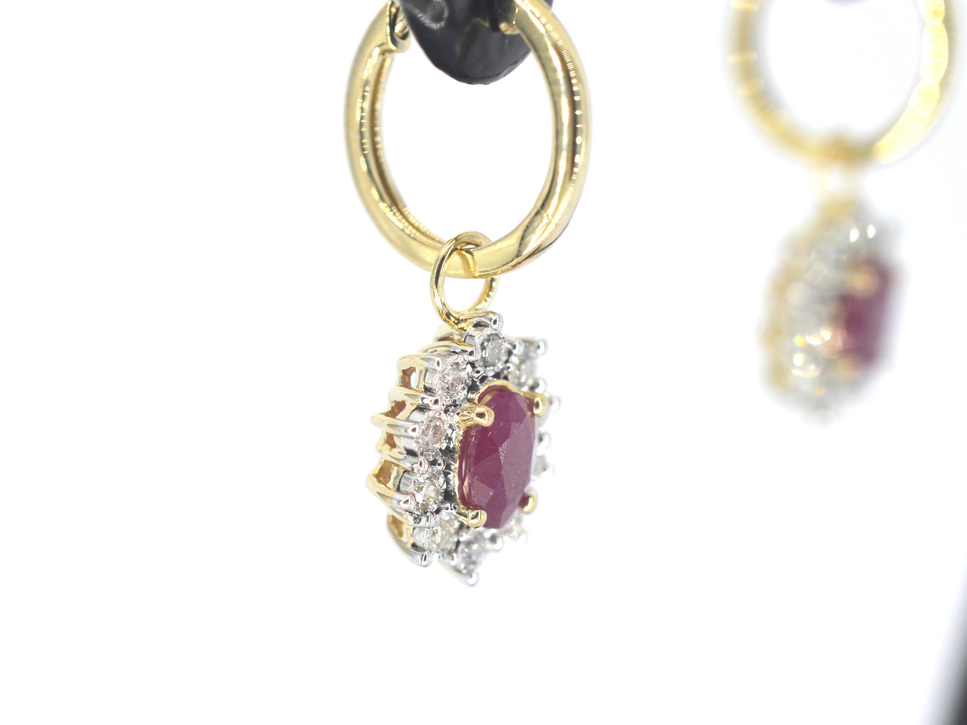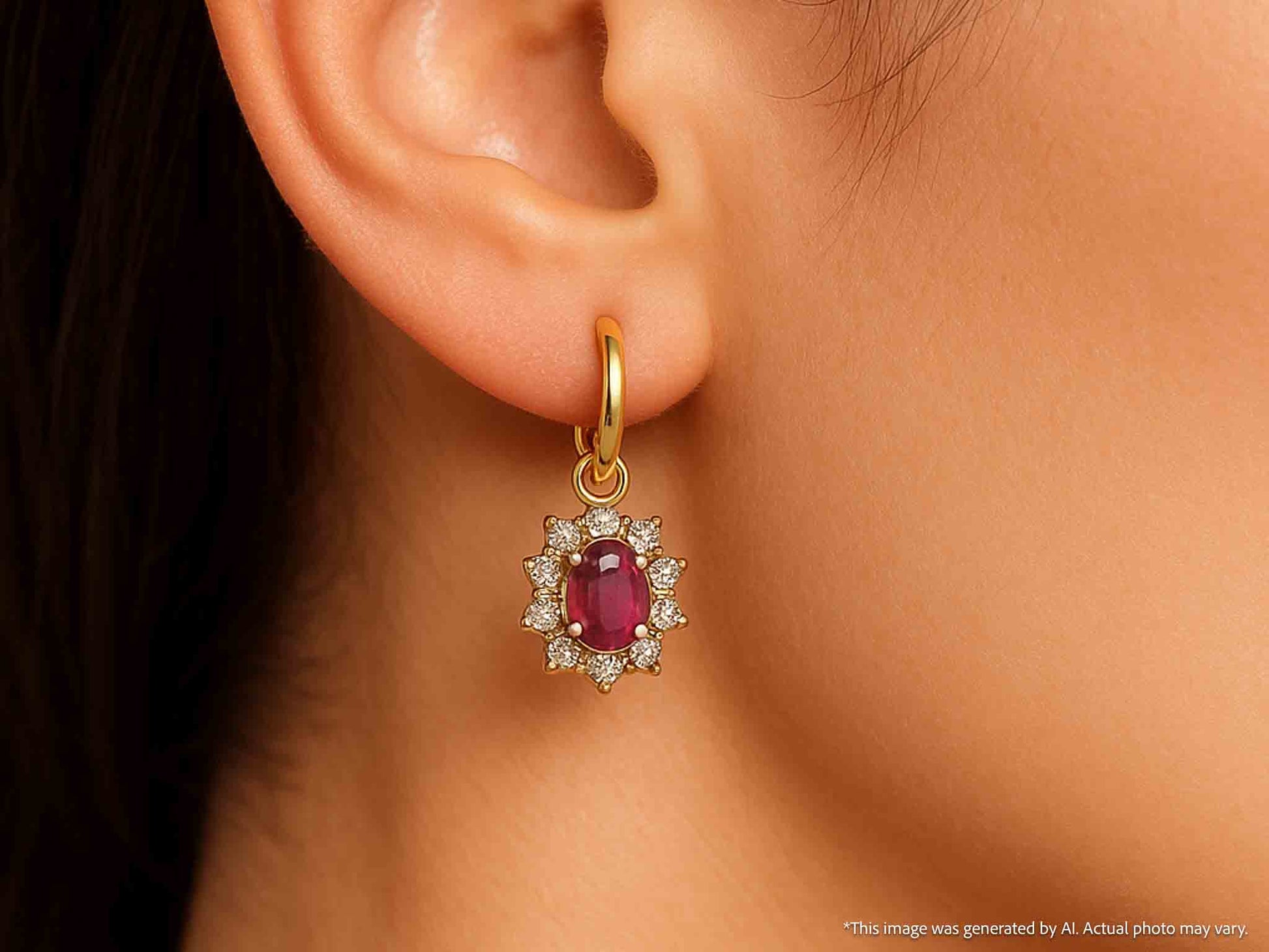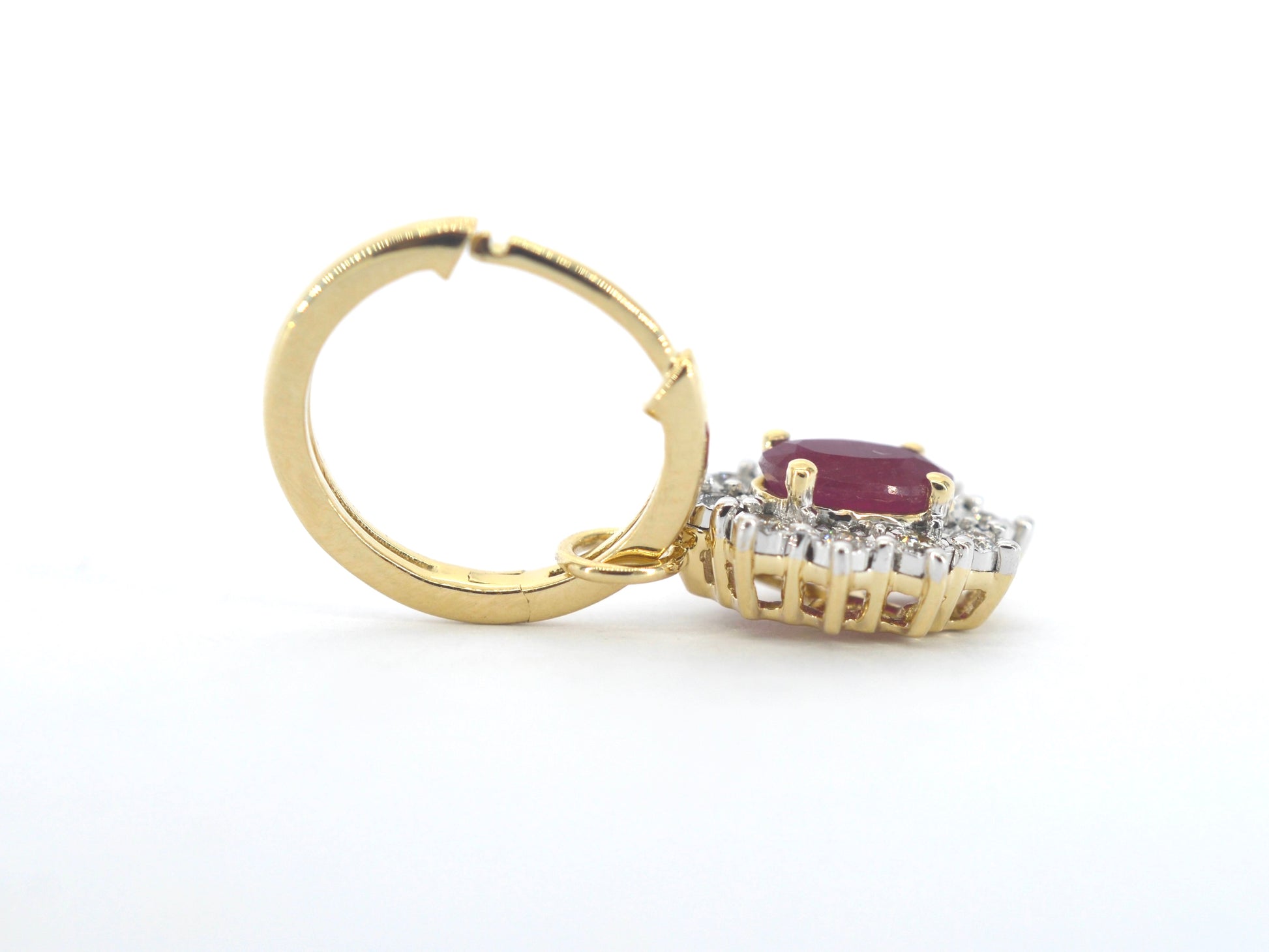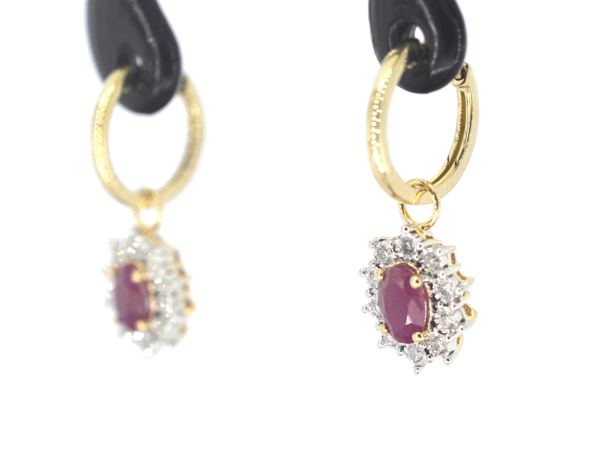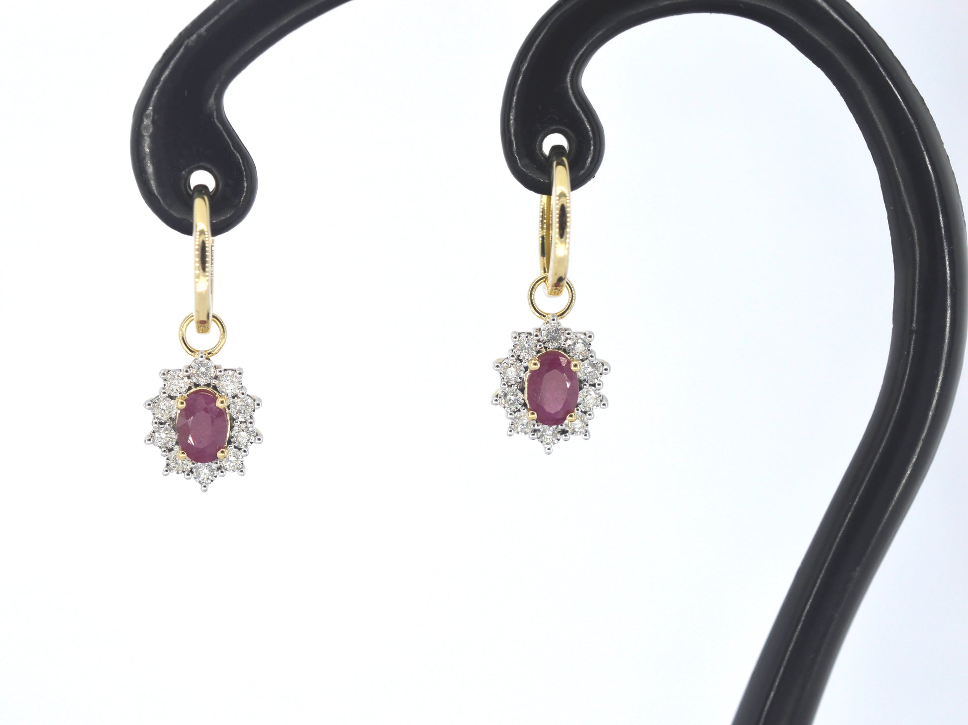 Gouden oorhangers met natuurlijke diamanten en robijnen