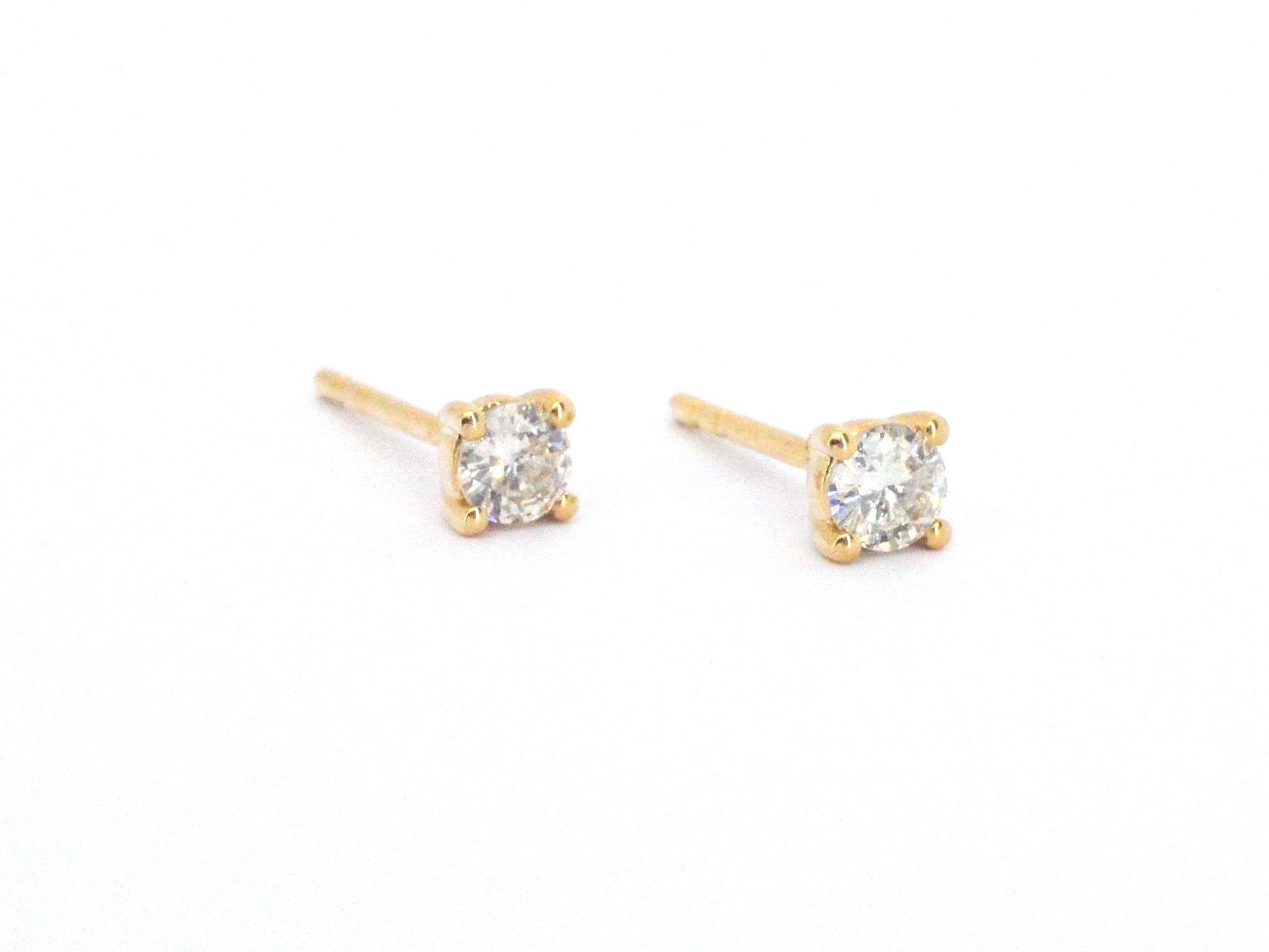 Geelgouden solitair oorbellen met natuurlijke diamanten