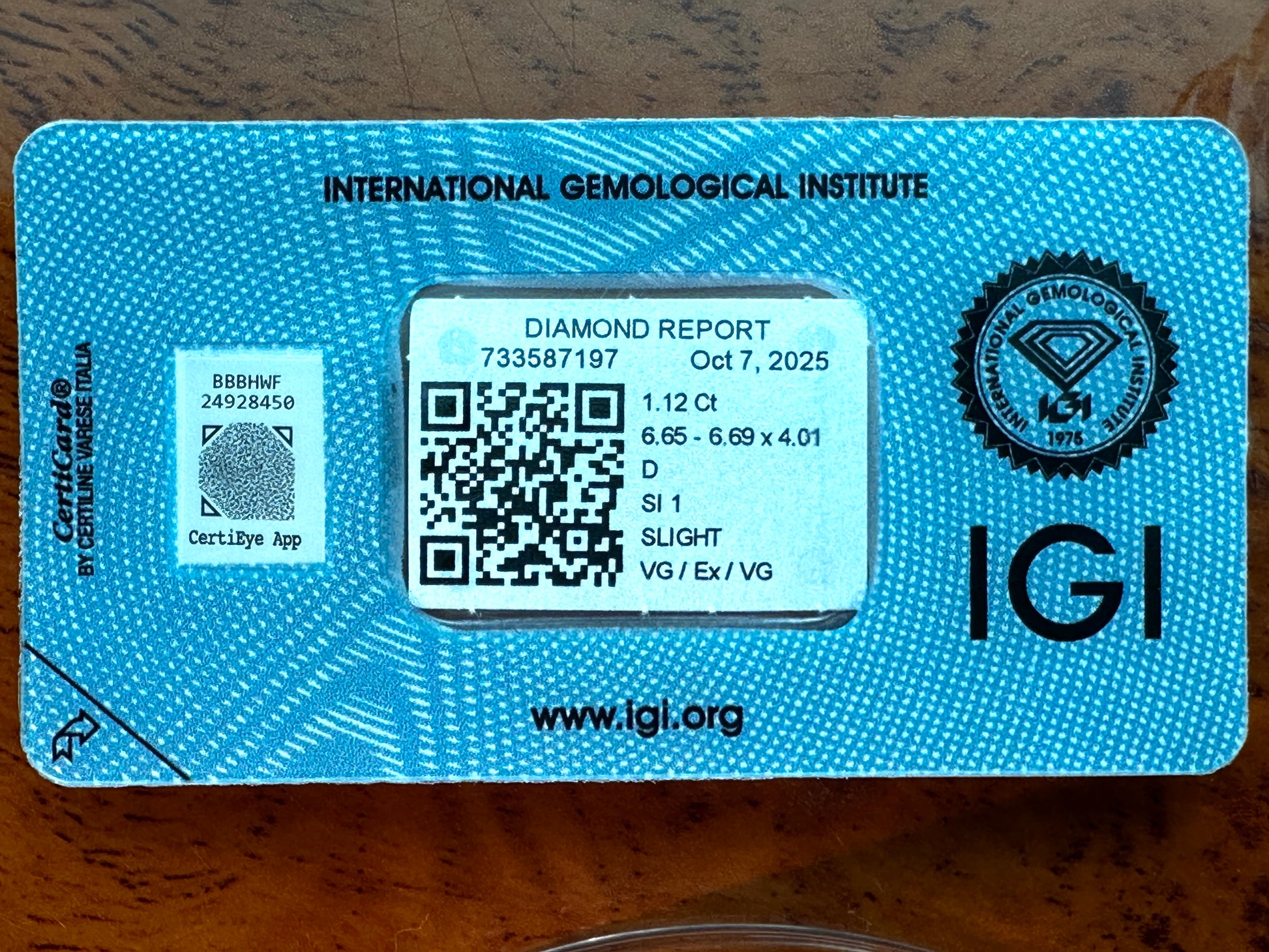 - Gewicht (carat): 1.12 carat
