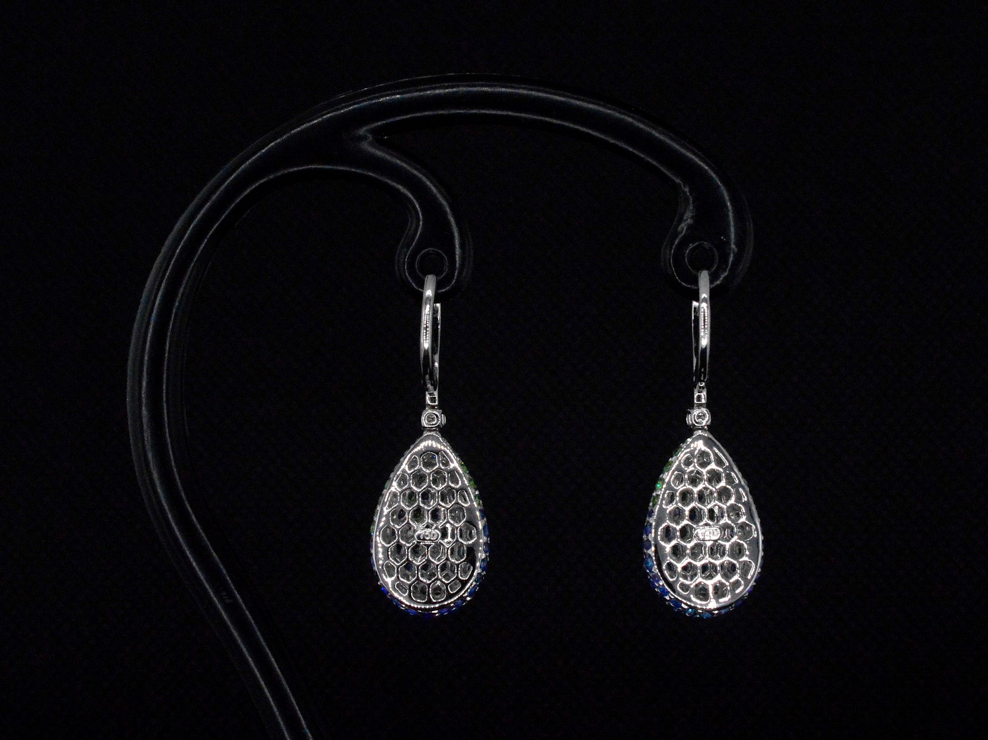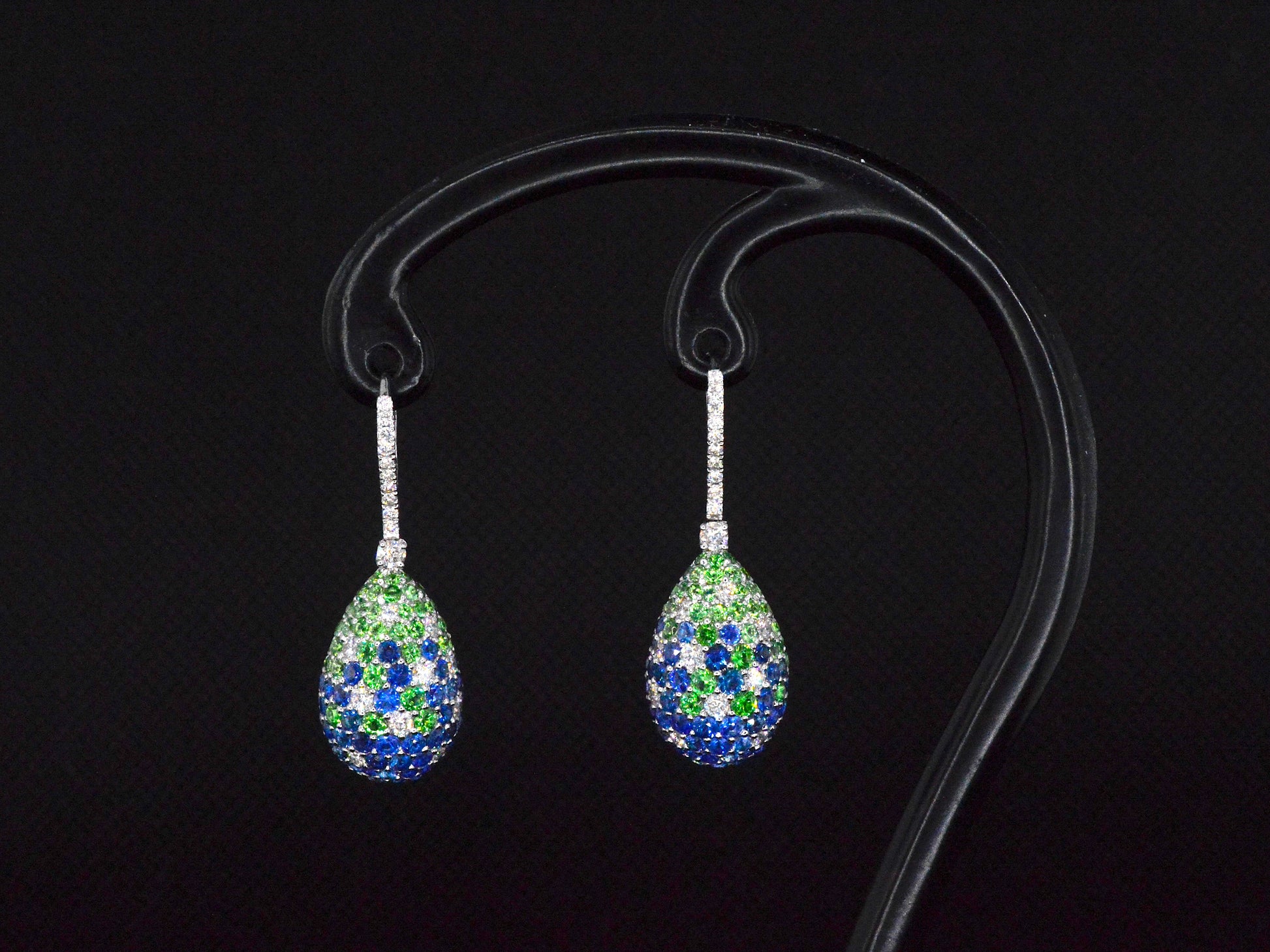 Oorhangers van 18 carats goud met diamanten van hoge kwaliteit met groene en blauwe saffieren