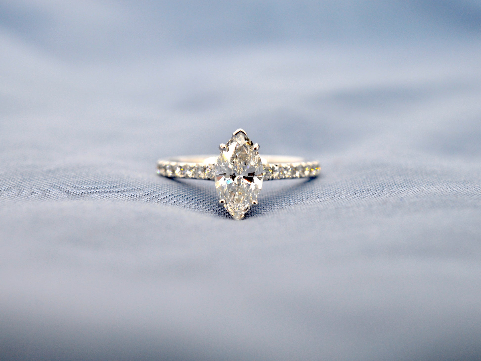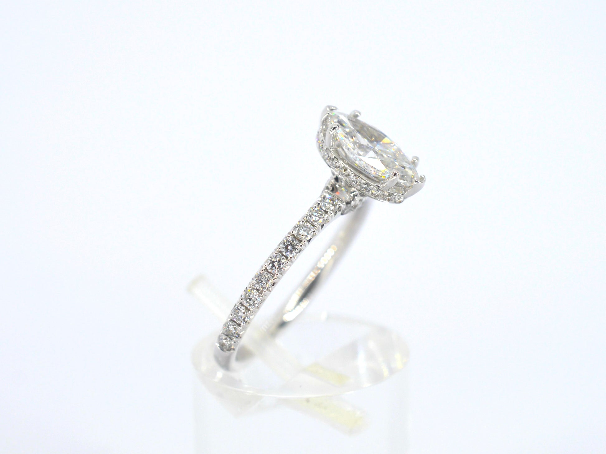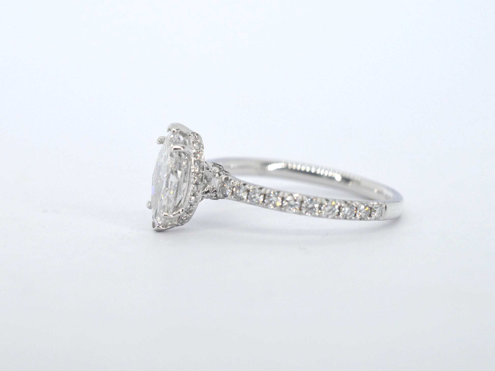Witgouden solitaire ring met een marquise diamant van 1.00 carat met hidden Halo
