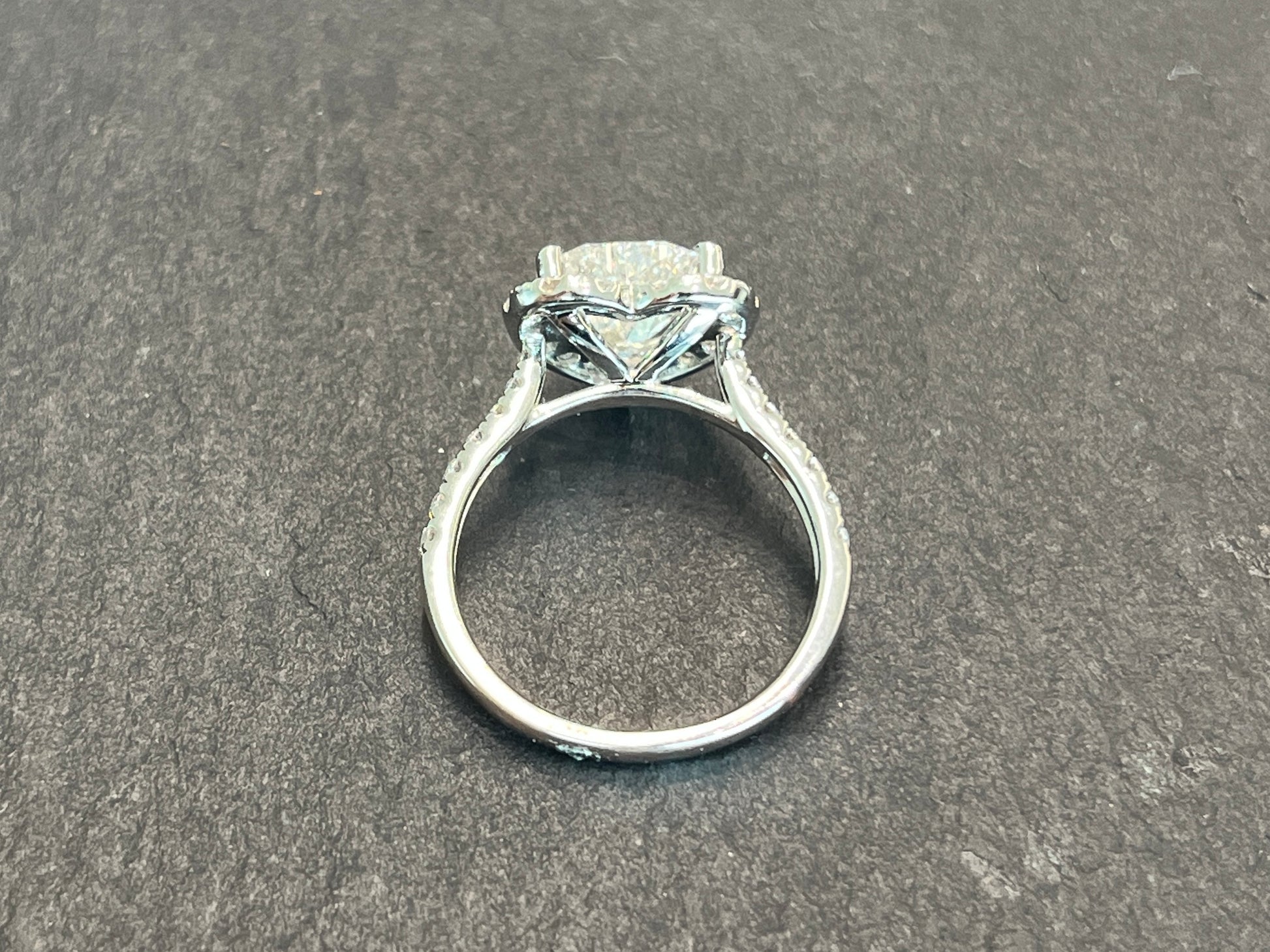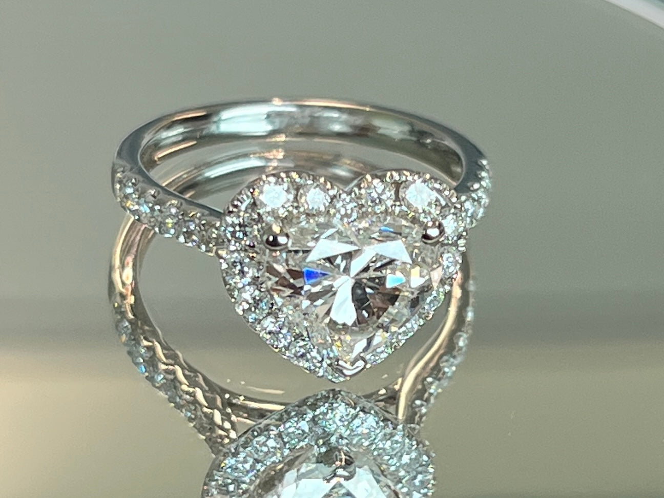 Witgouden entourage ring met een hartvorm geslepen diamant van 2.00 carat