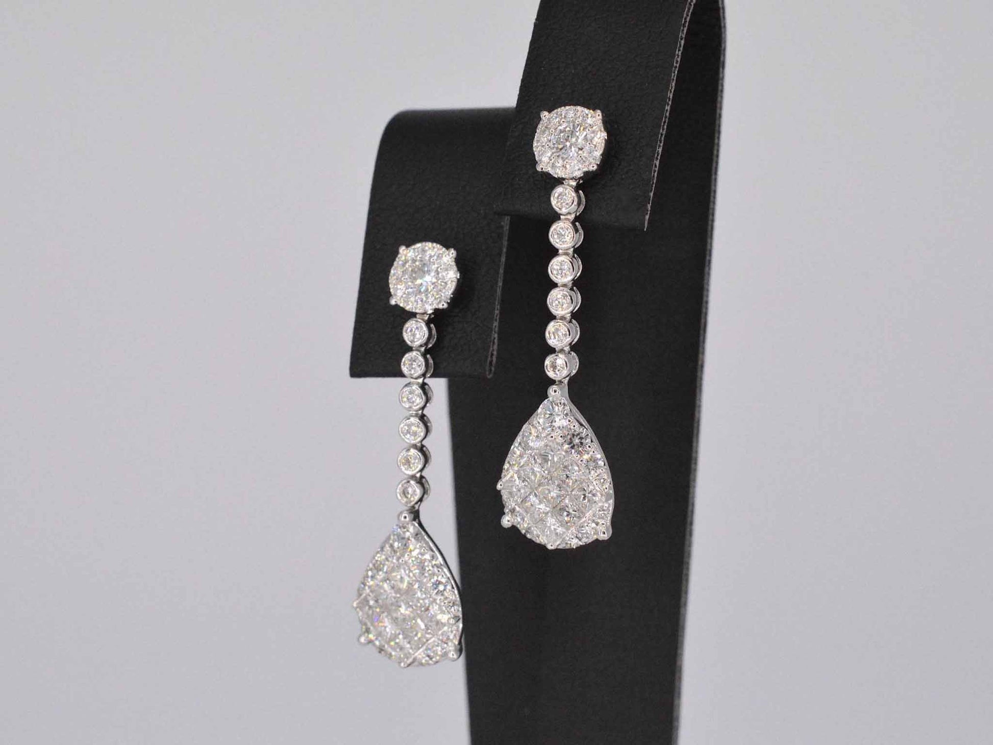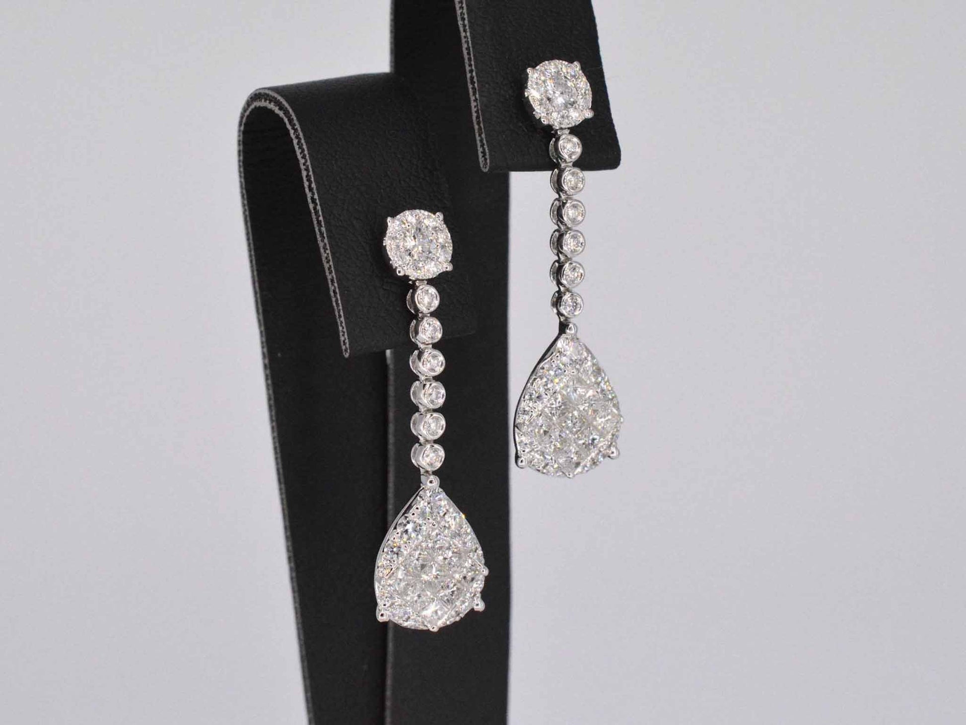 Druppelvormige oorhangers met briljant en princess geslepen diamanten