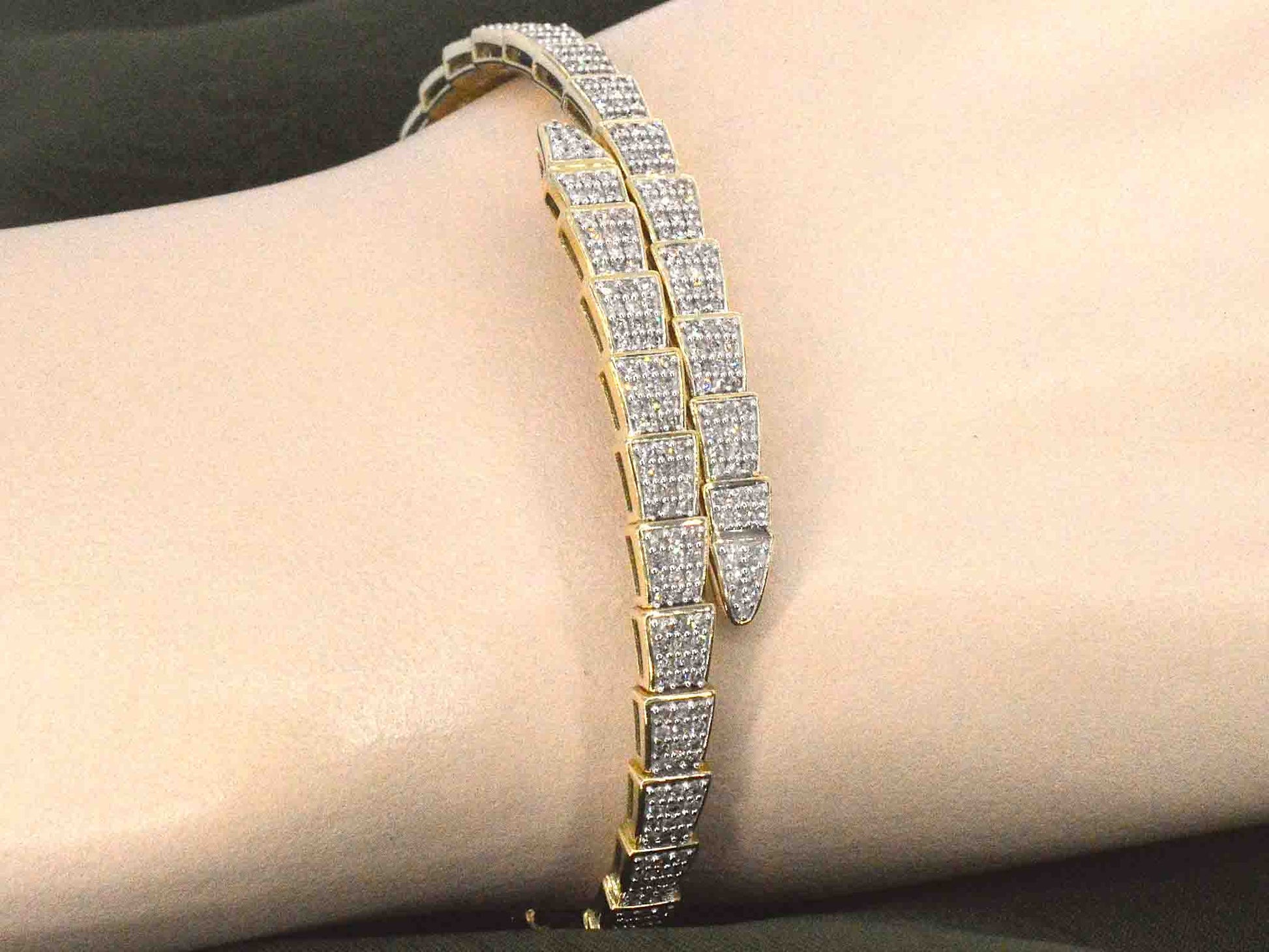 Geelgouden armband van slangen model met natuurlijke diamanten
