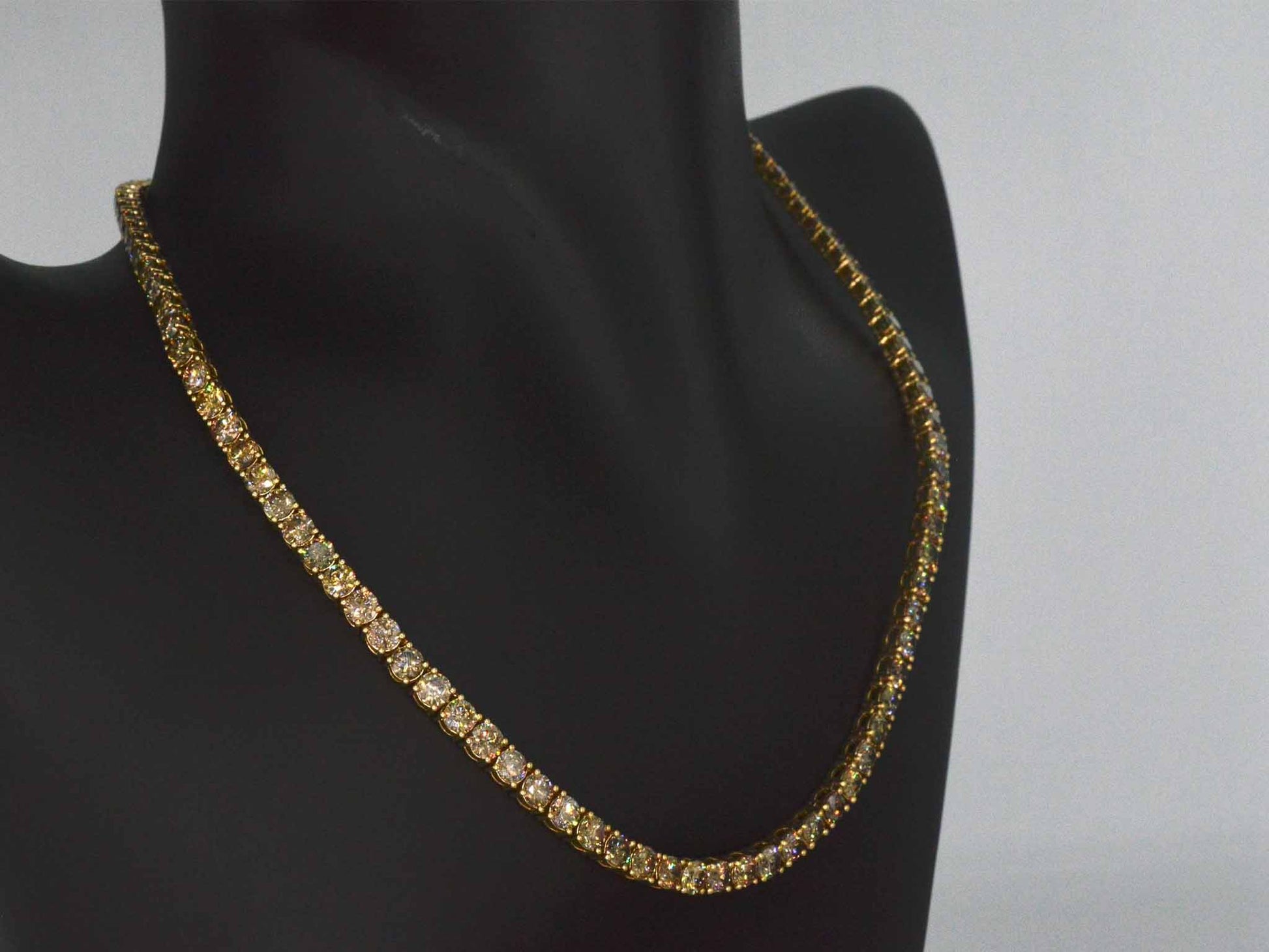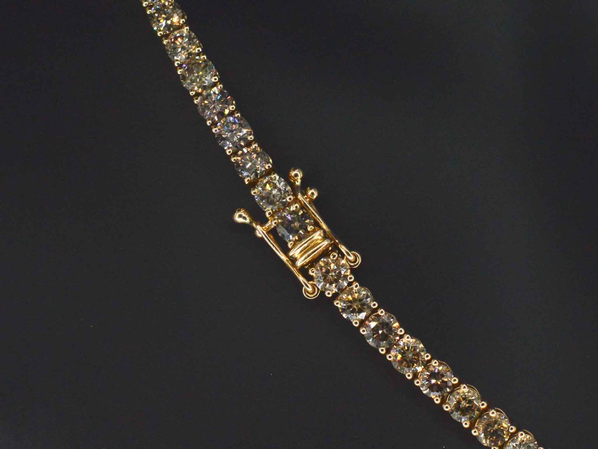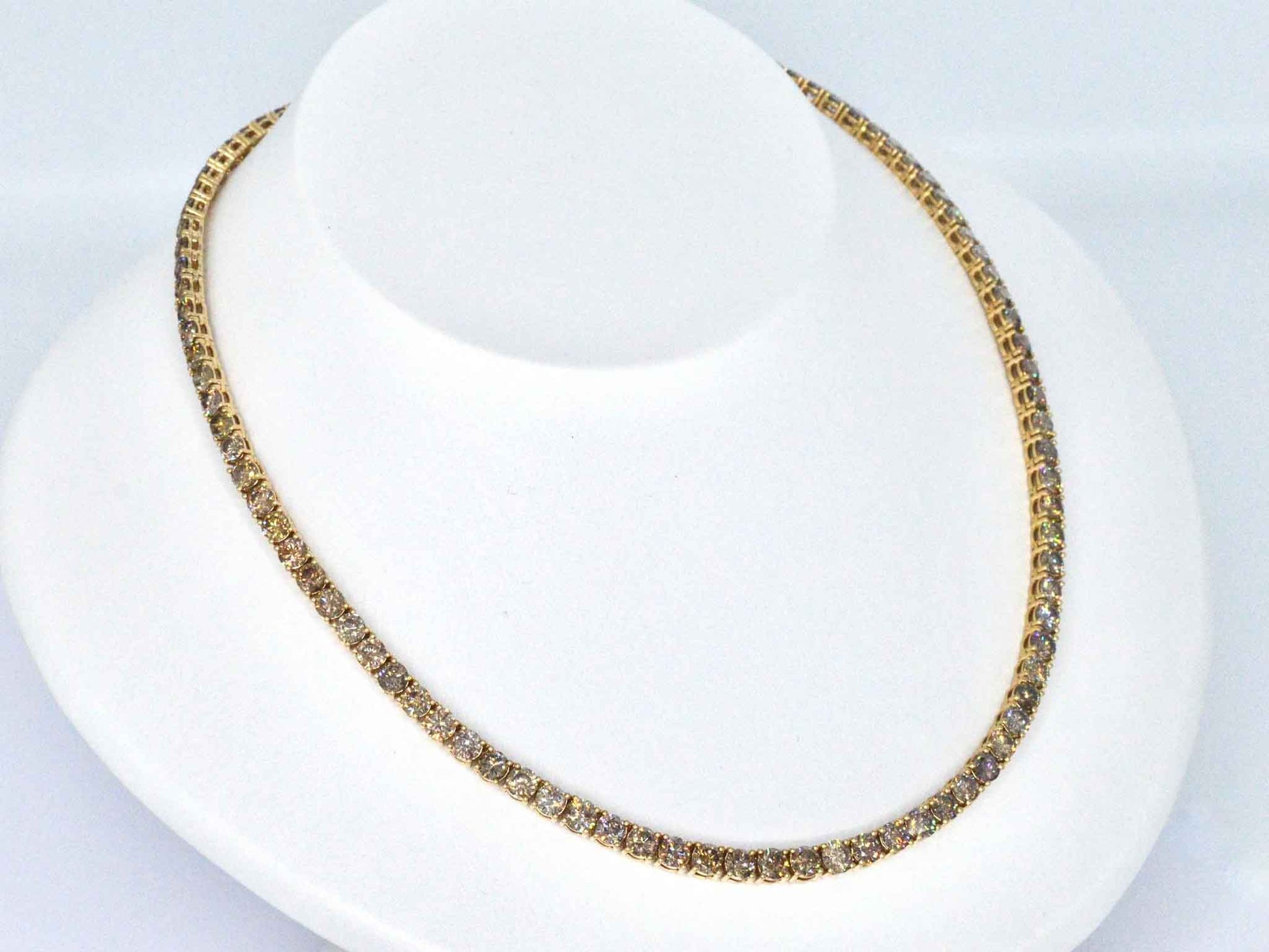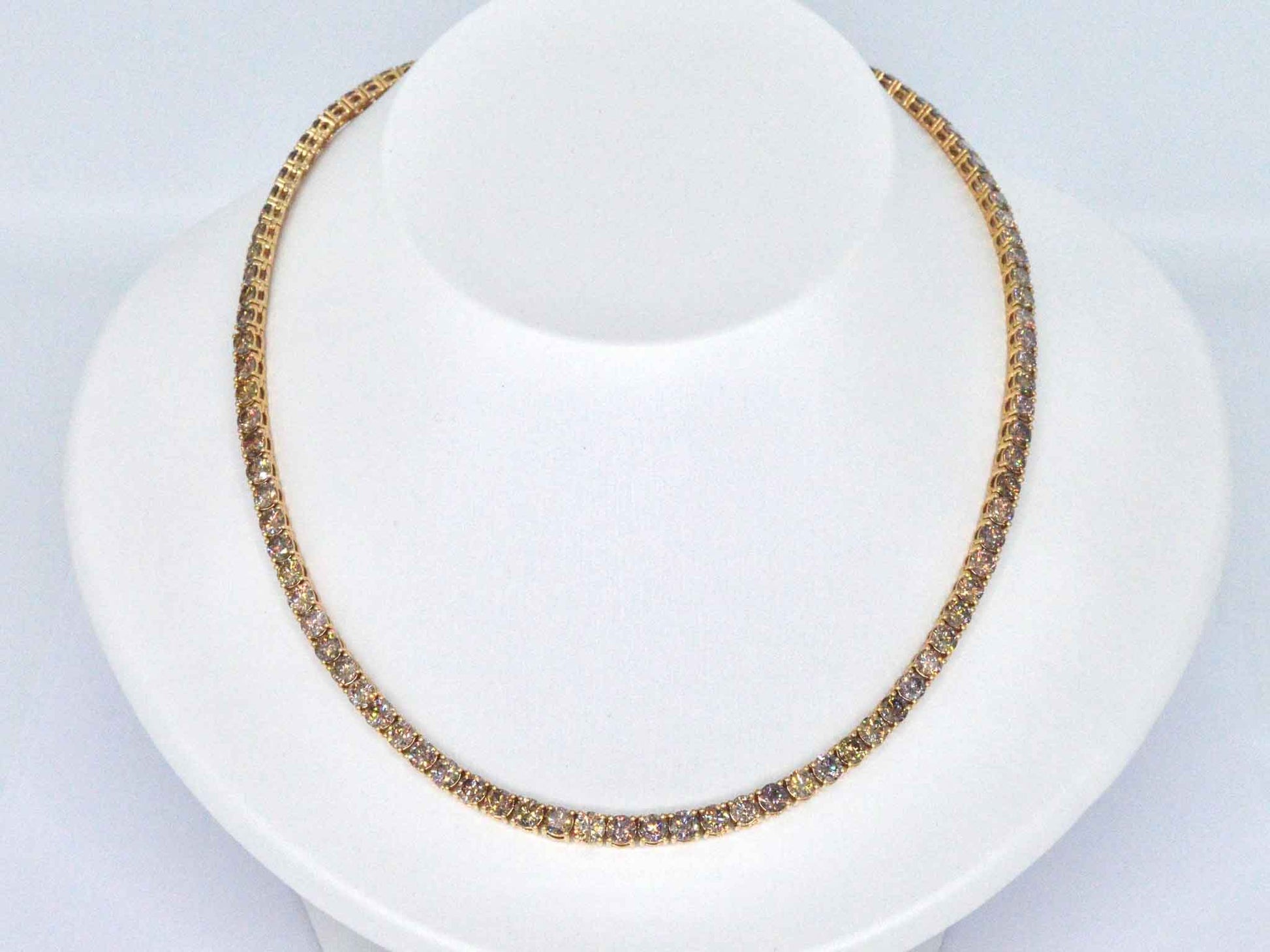 Geelgouden exclusieve tennis collier met champagne en cognac diamanten