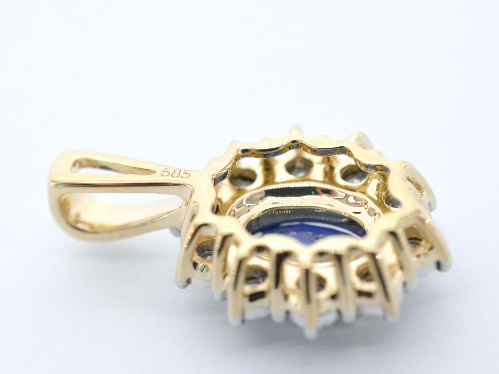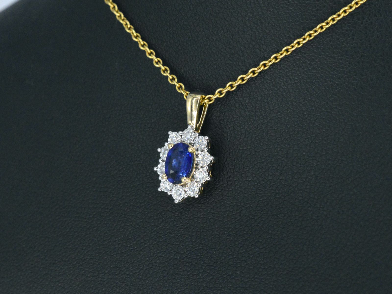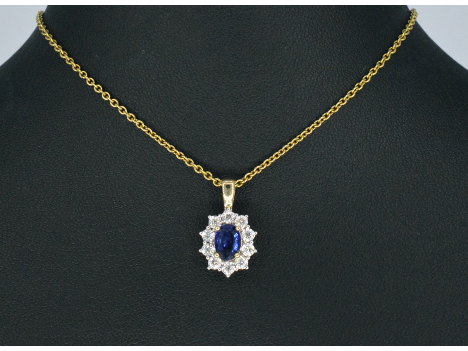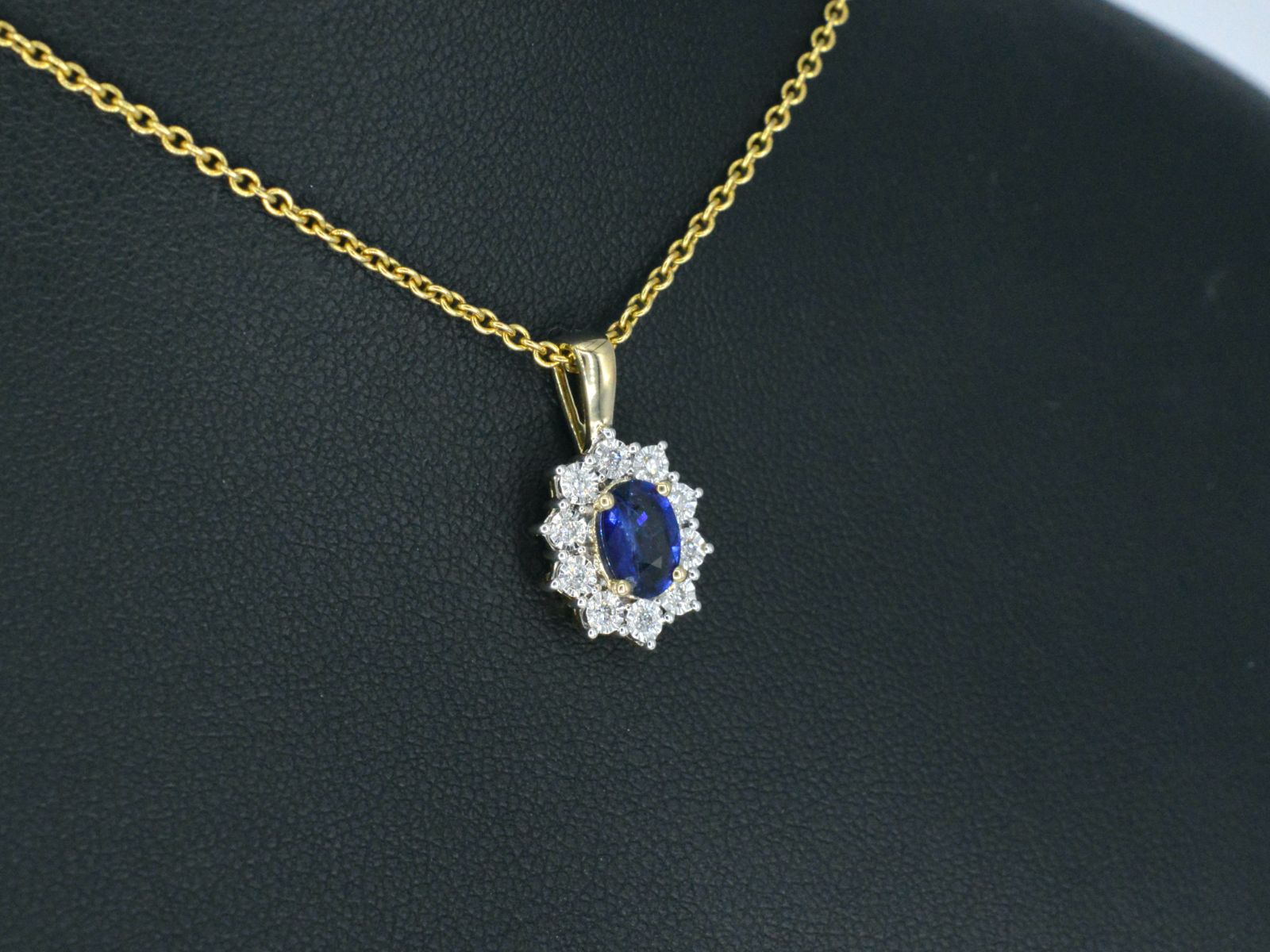 Gouden entourage hanger met diamanten en saffier, Excl. ketting