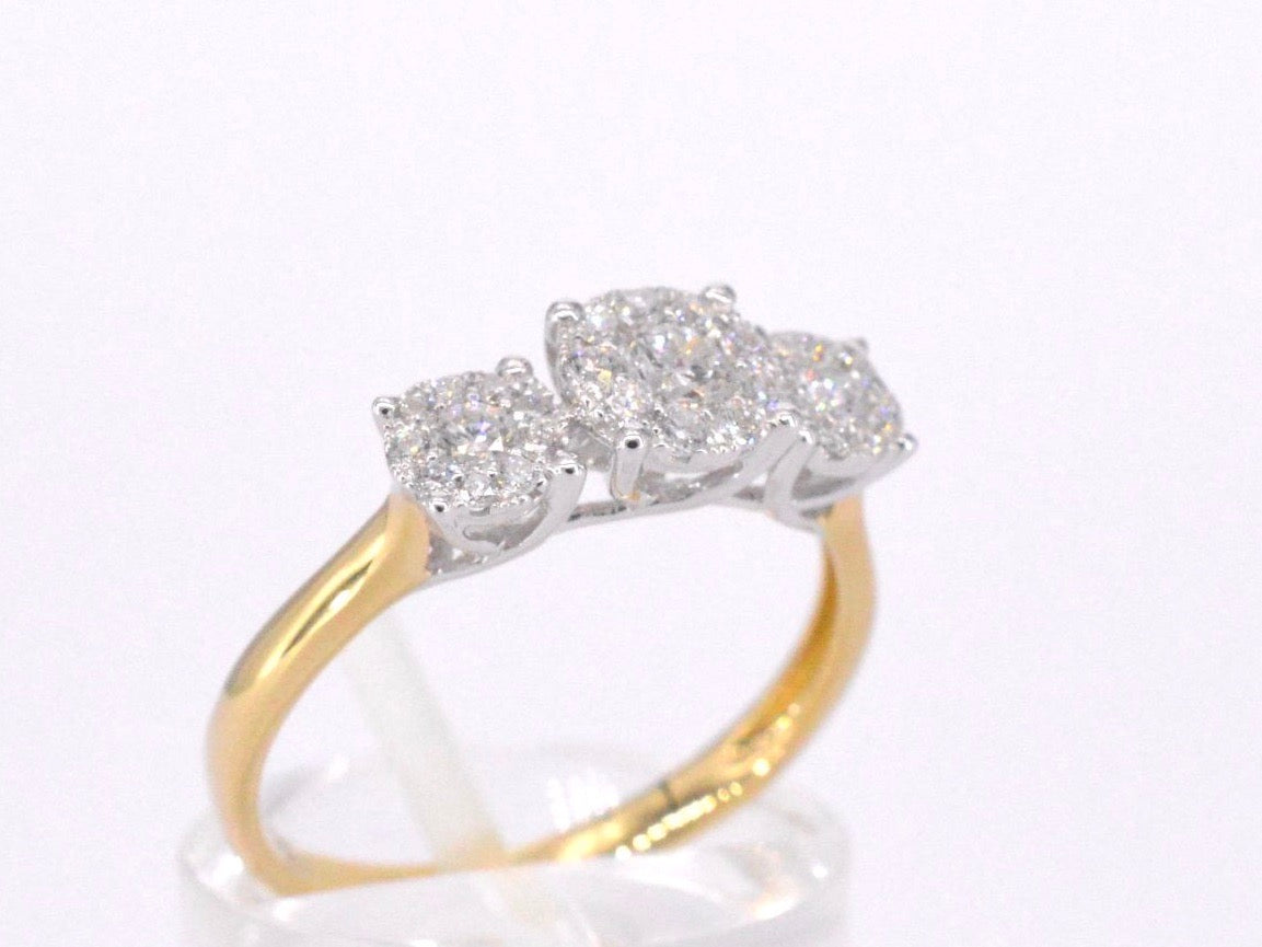 Gouden ring met drie chatons van diamanten 0.75 carat