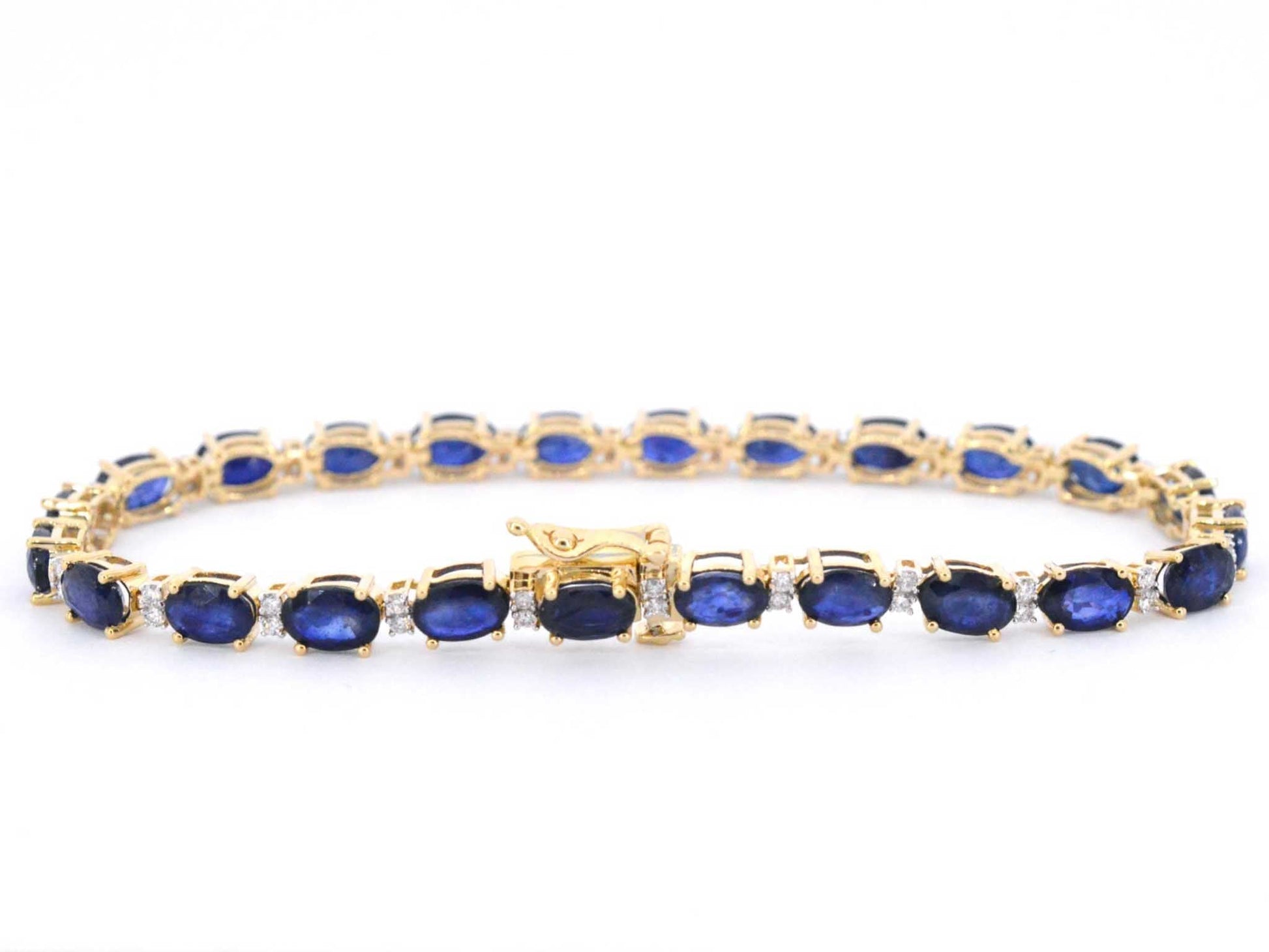 Gouden tennisarmband met diamanten en saffier