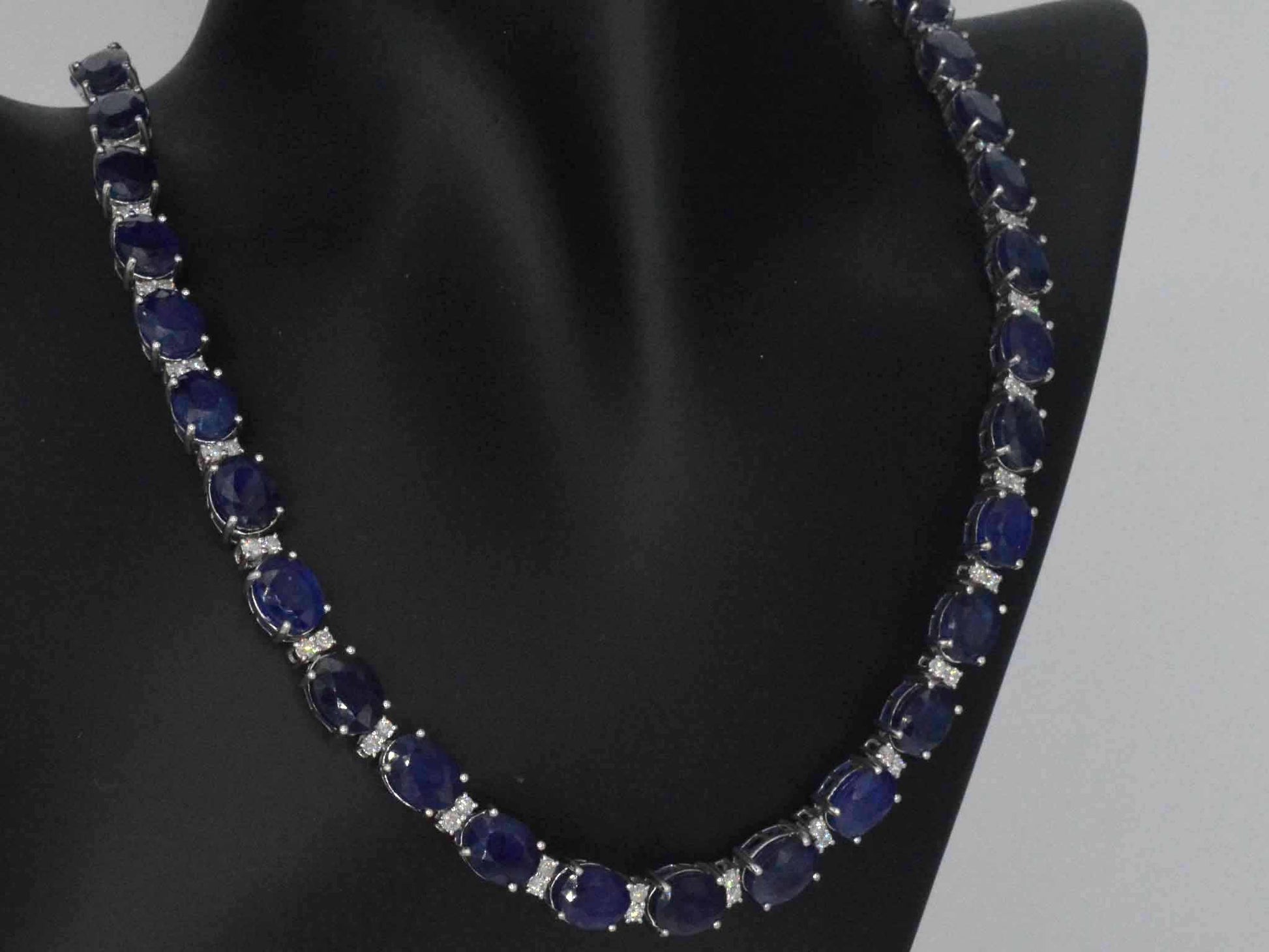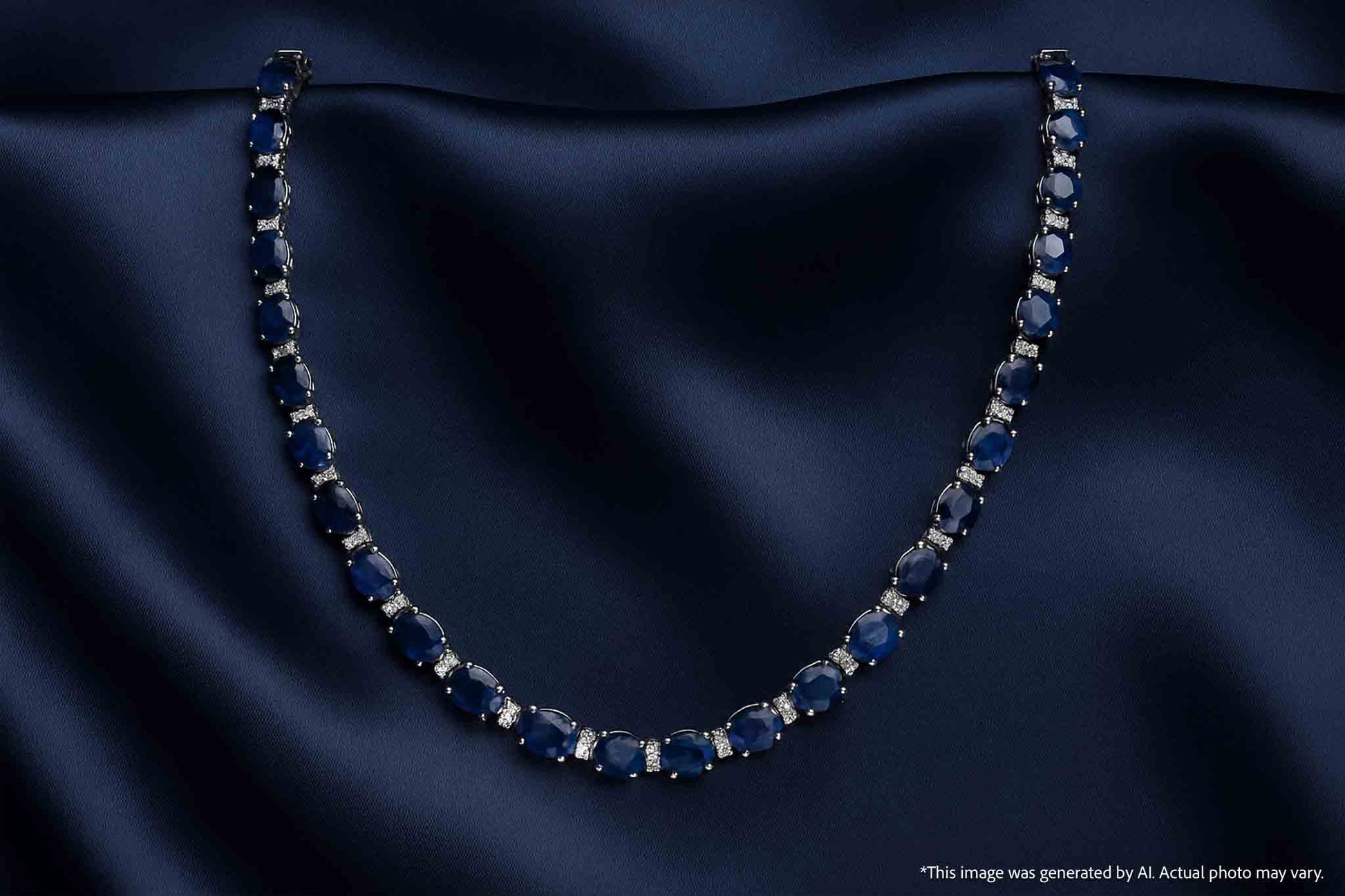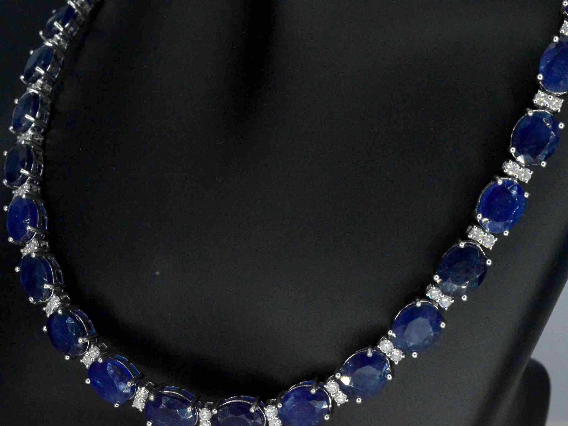 Tenniscollier met grote saffieren en natuurlijke diamanten