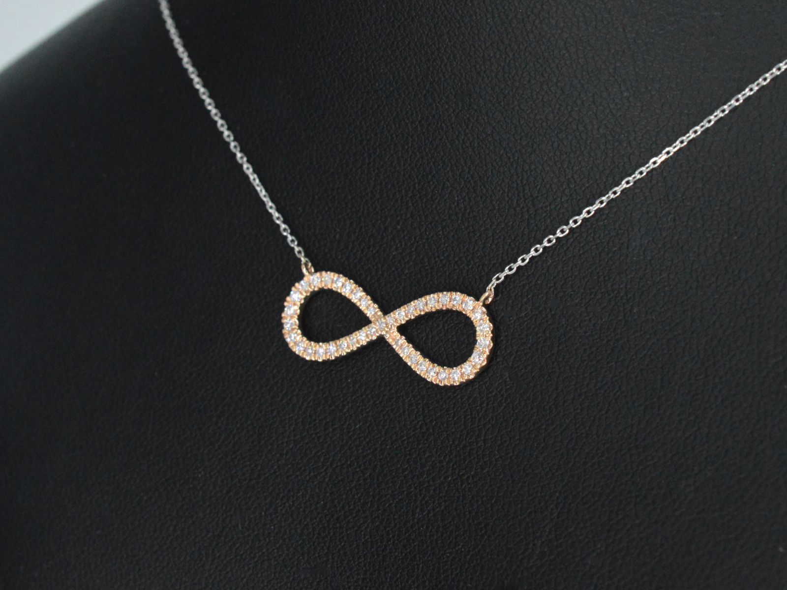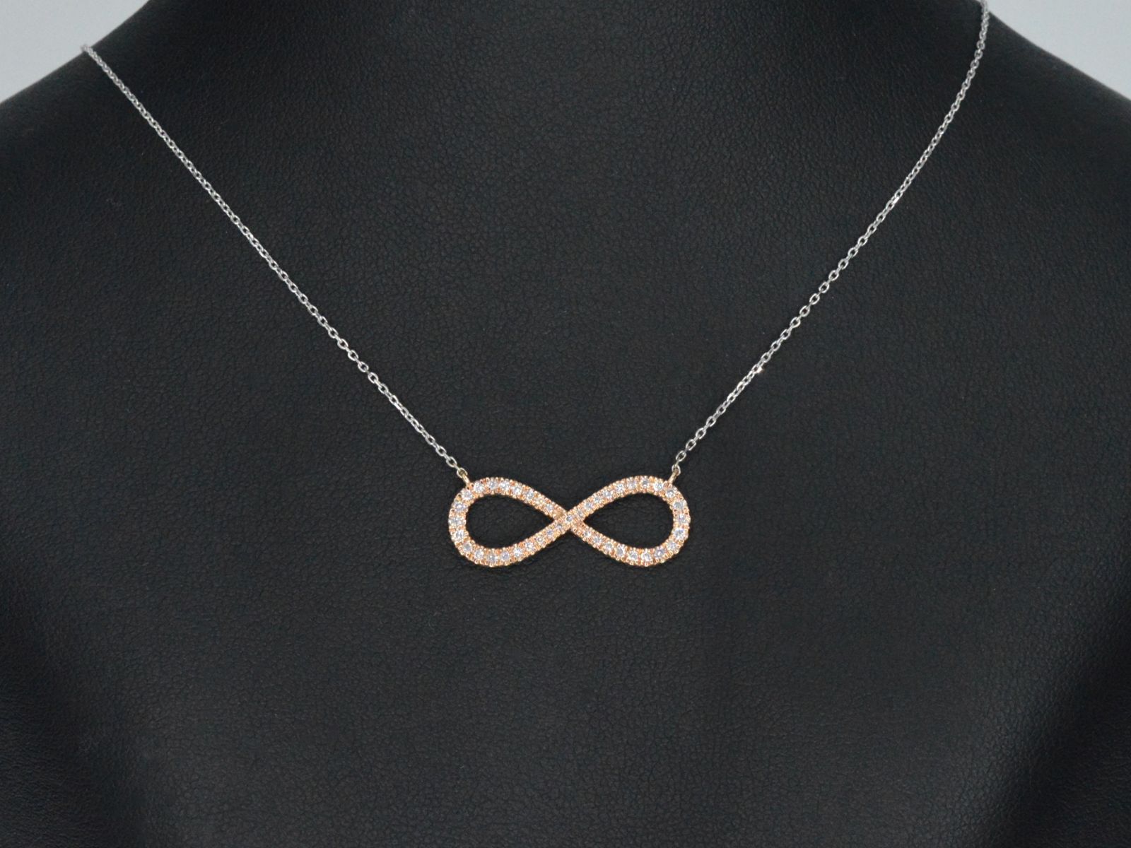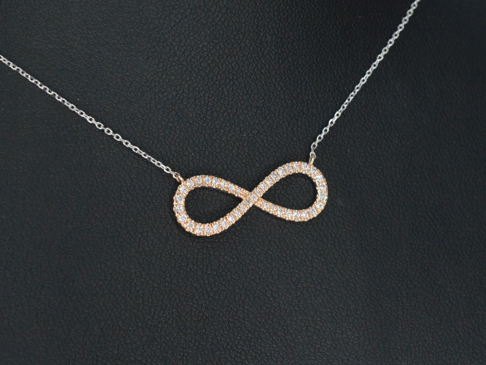 Witgouden collier met een rosegouden diamanten infinity hanger
