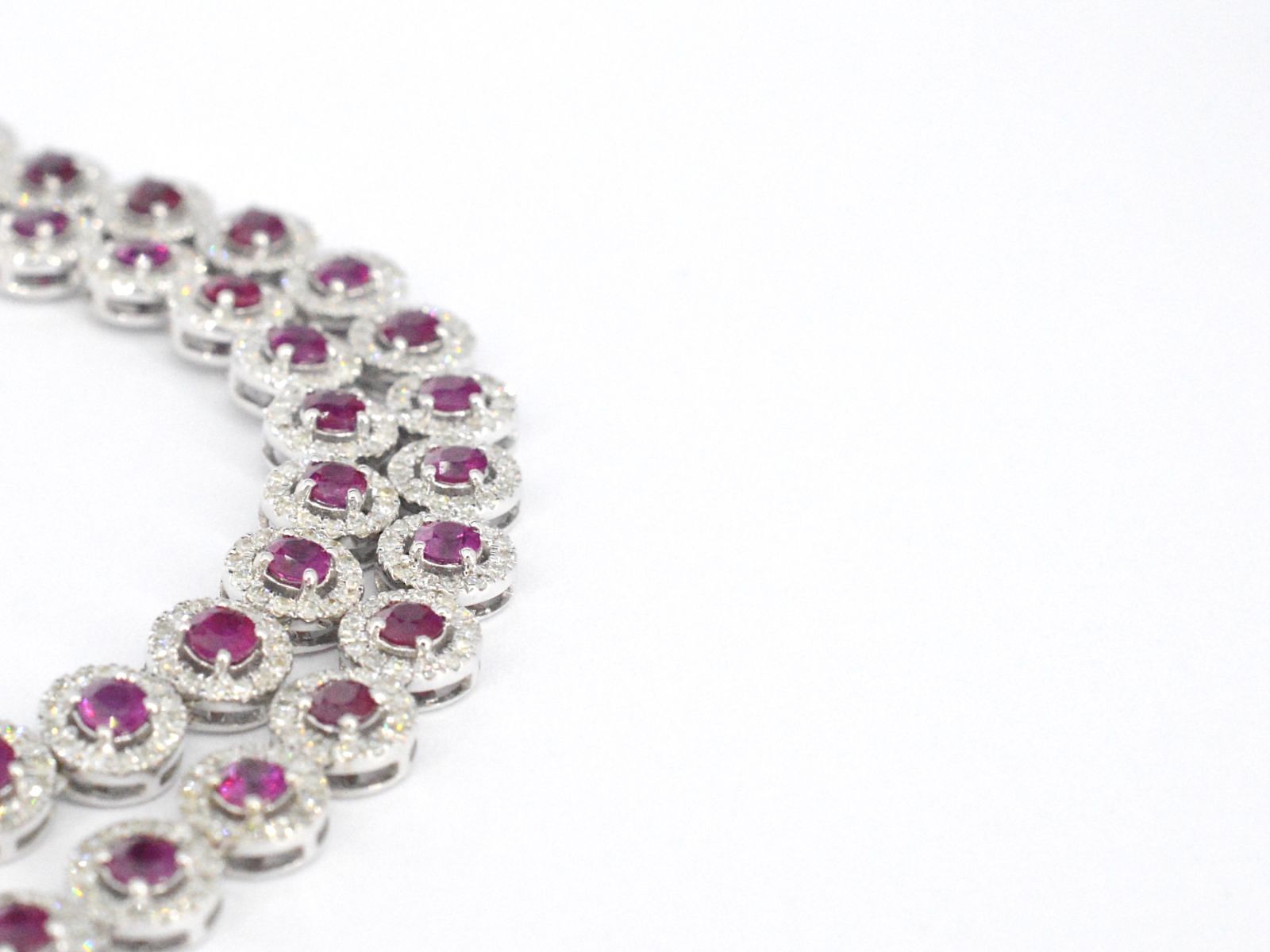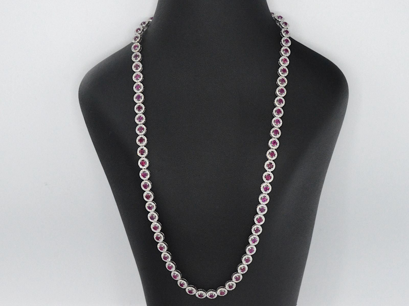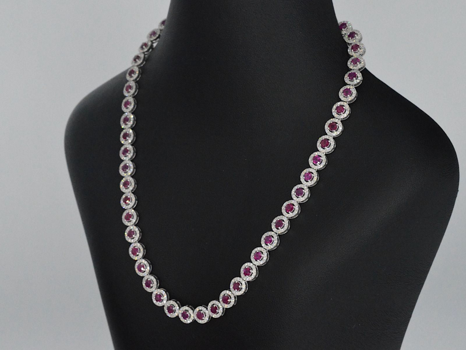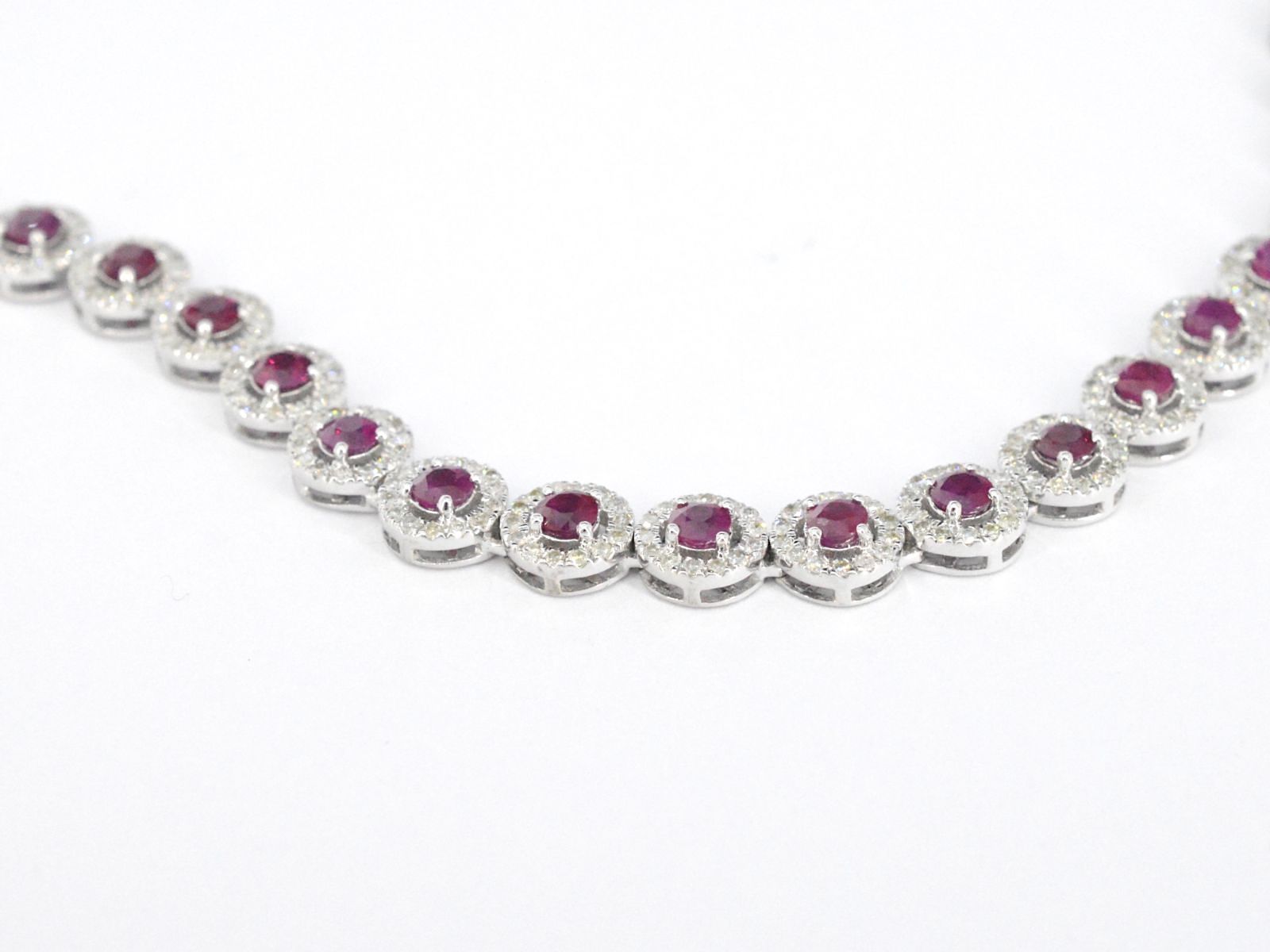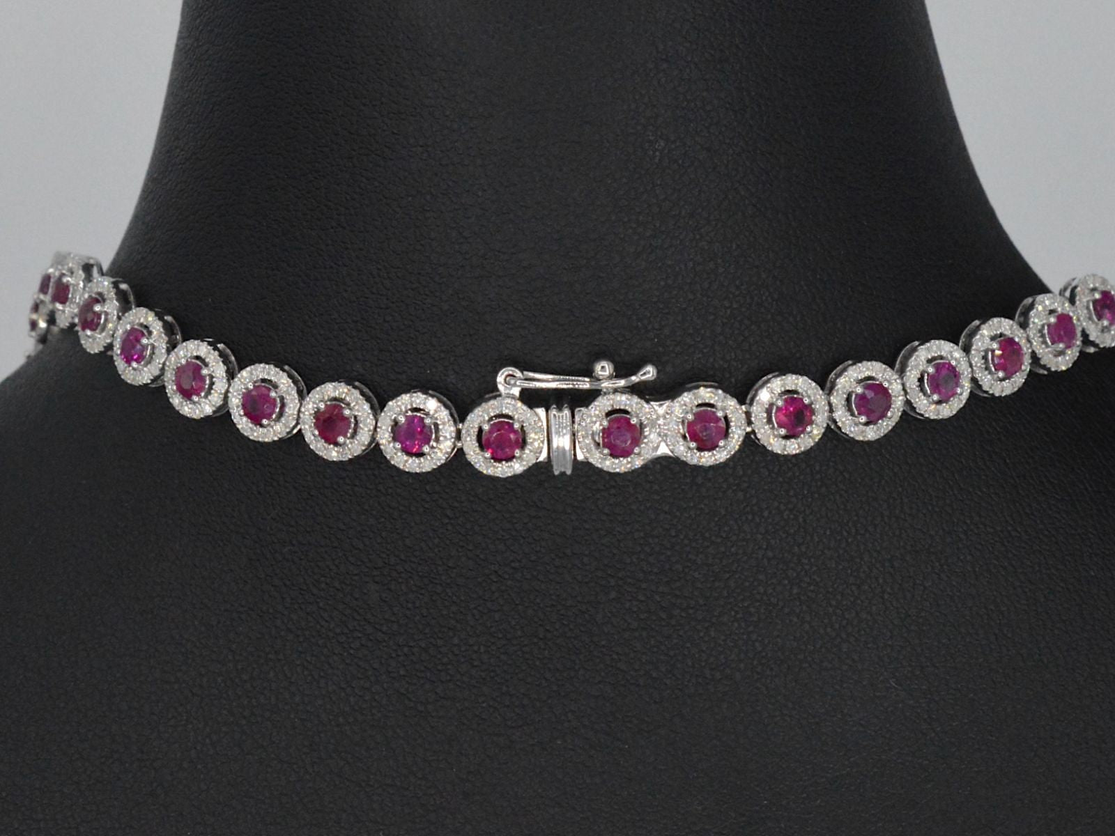 Witgouden collier volledig met witte diamanten en robijnen 15.00 carat