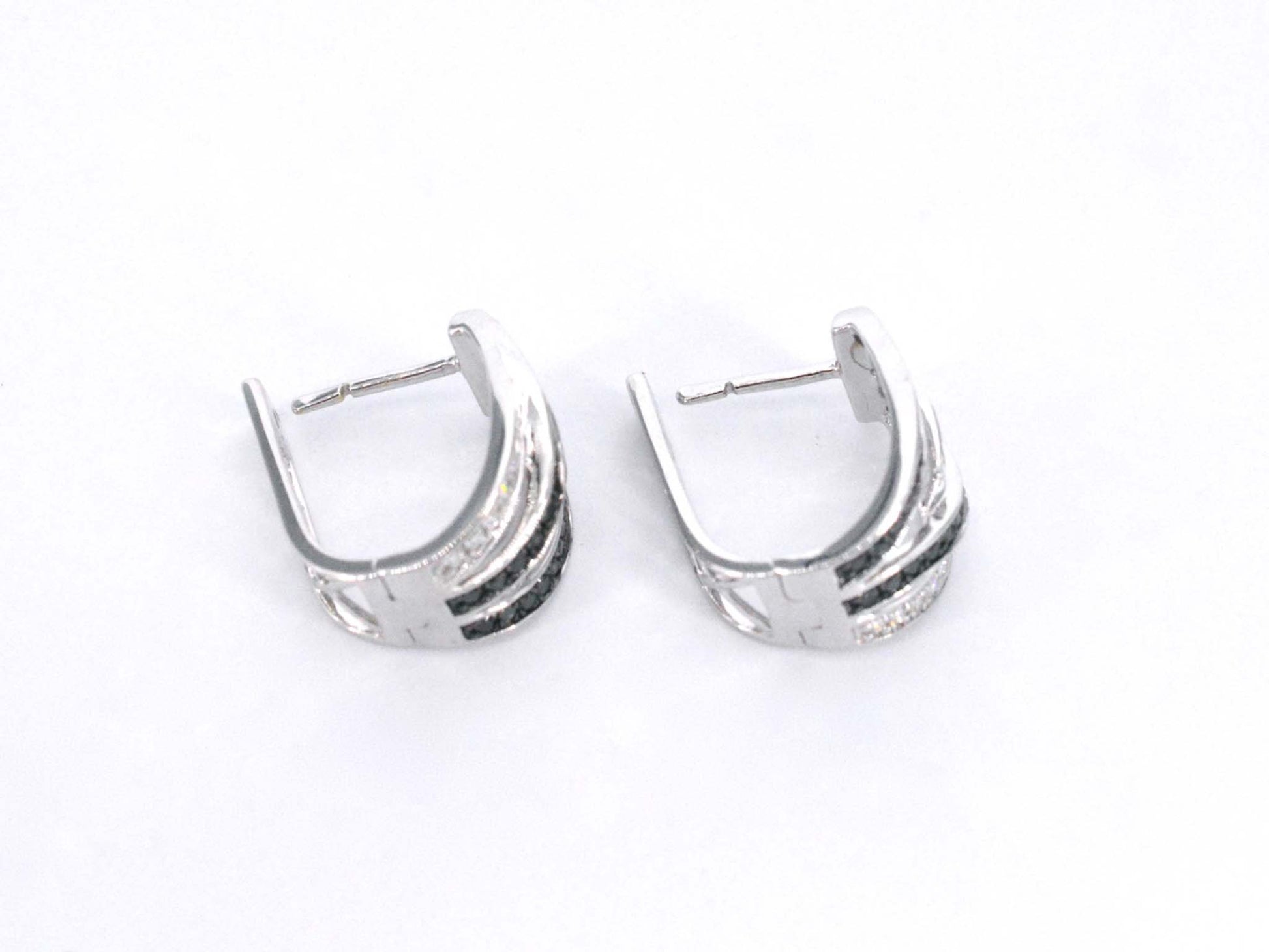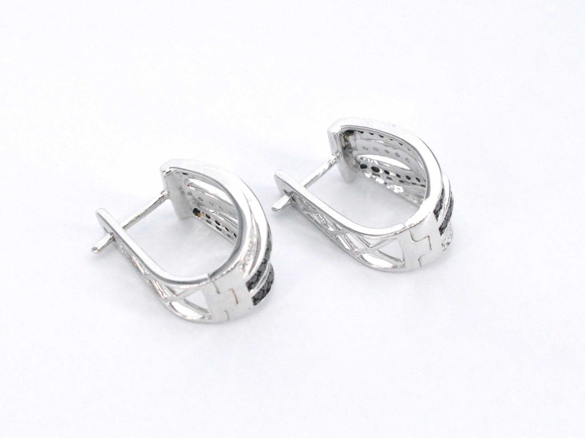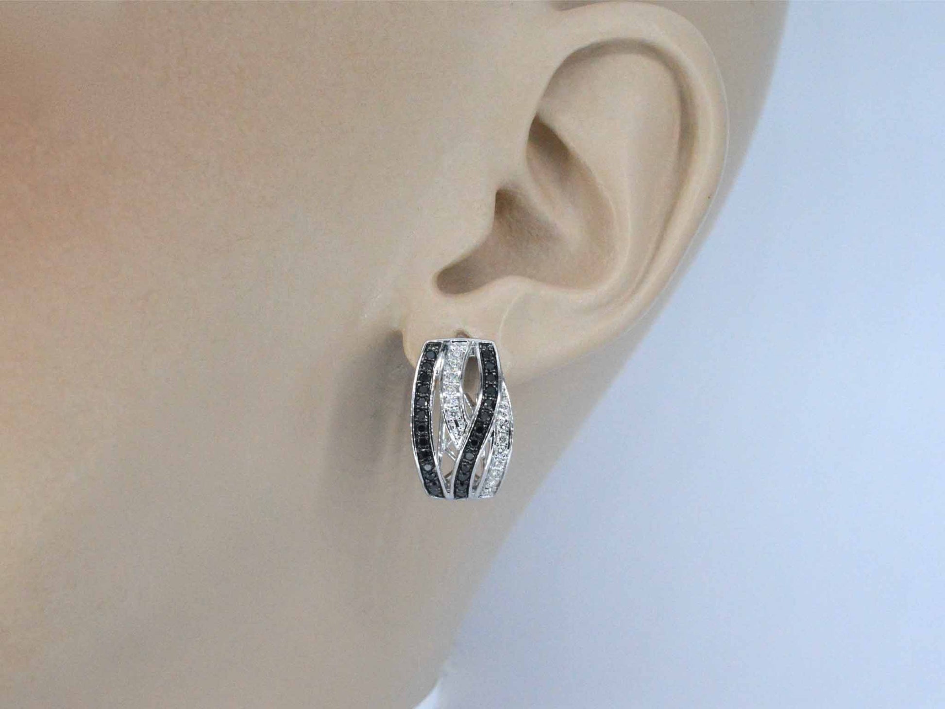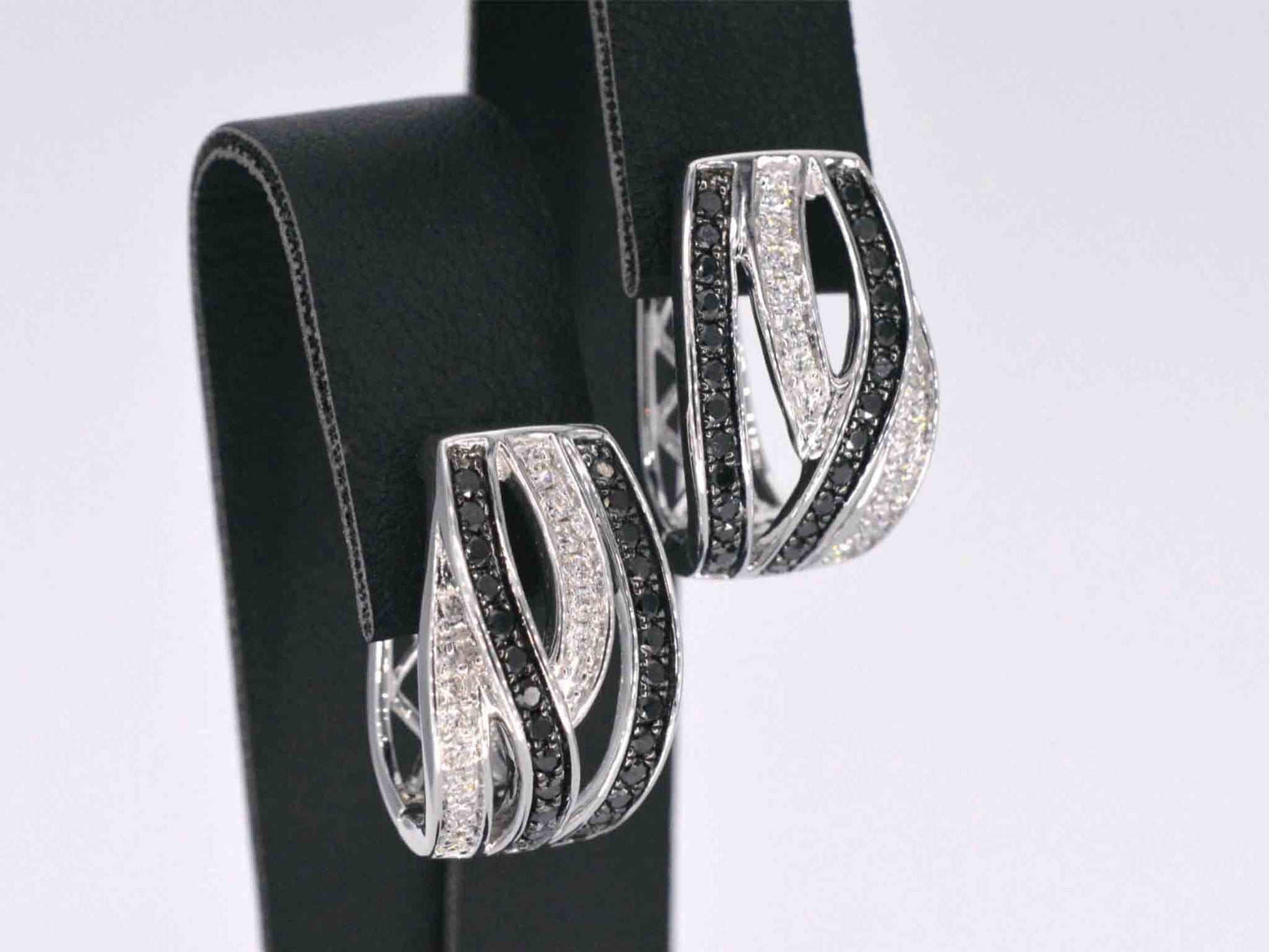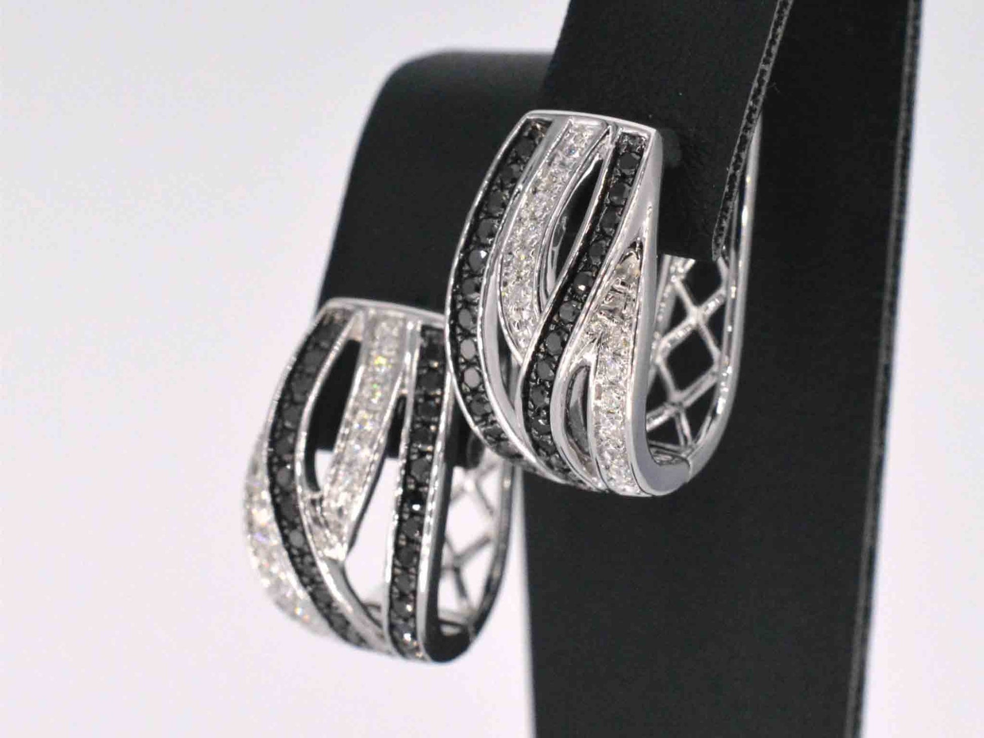 Witgouden design oorbellen met witte en zwarte briljanten diamanten