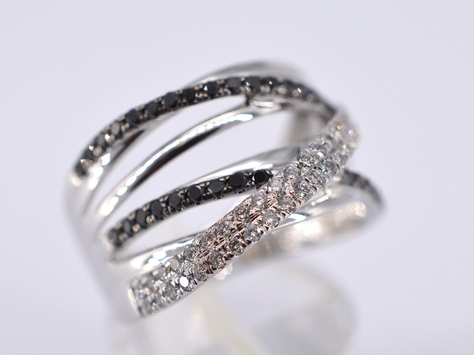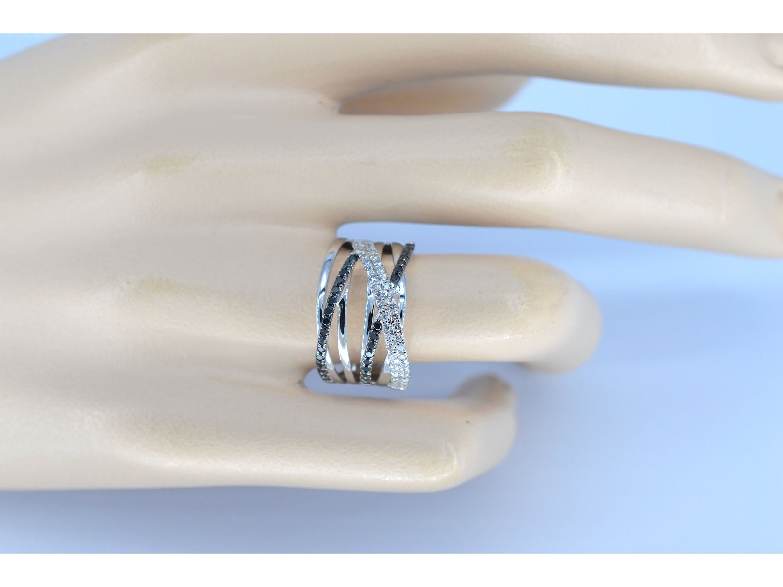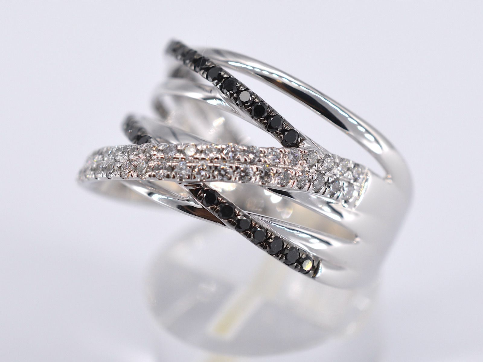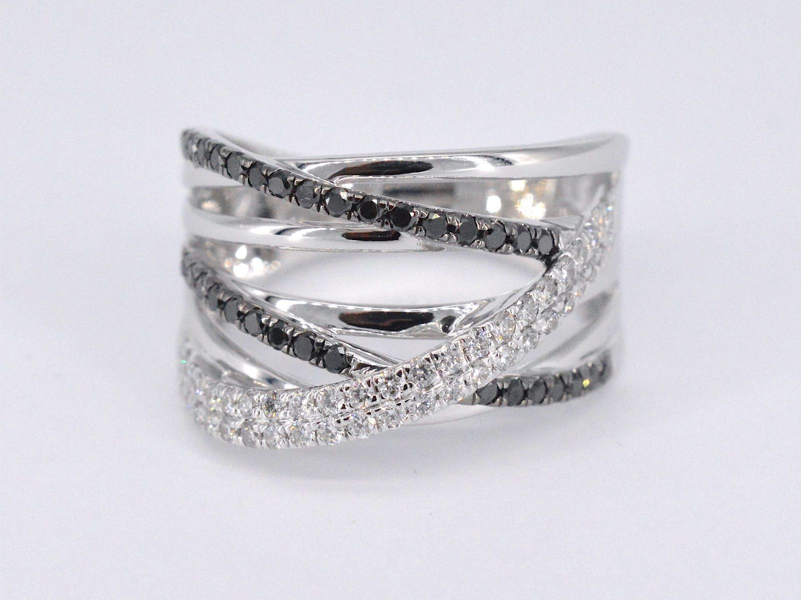 Witgouden design ring met witte en zwarte briljanten diamanten