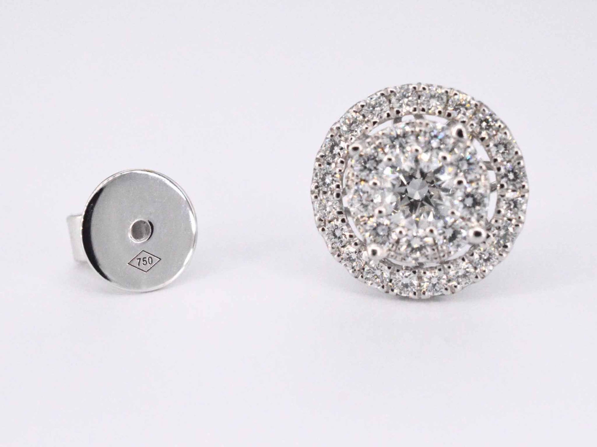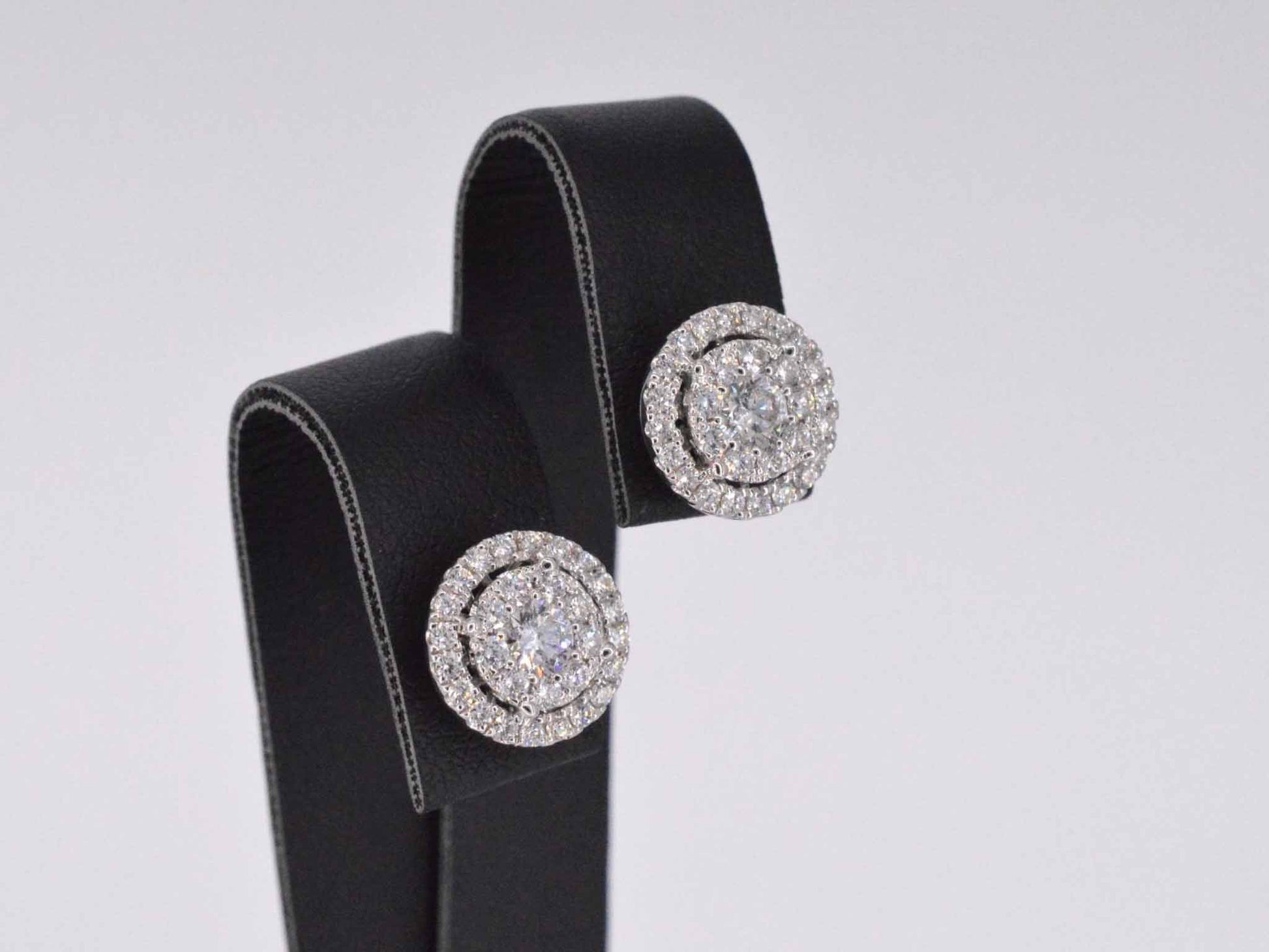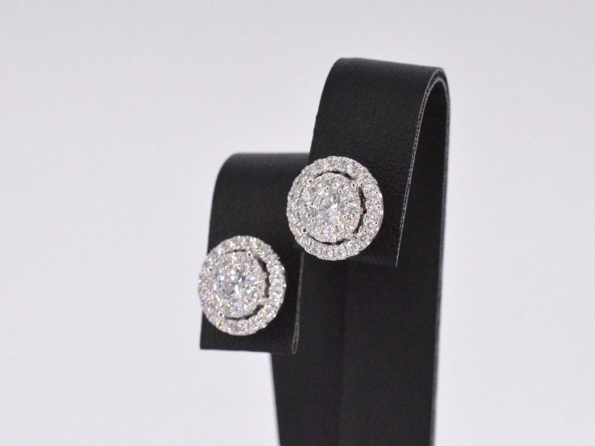 Witgouden entourage oorbellen gezet met 60 briljant geslepen diamanten