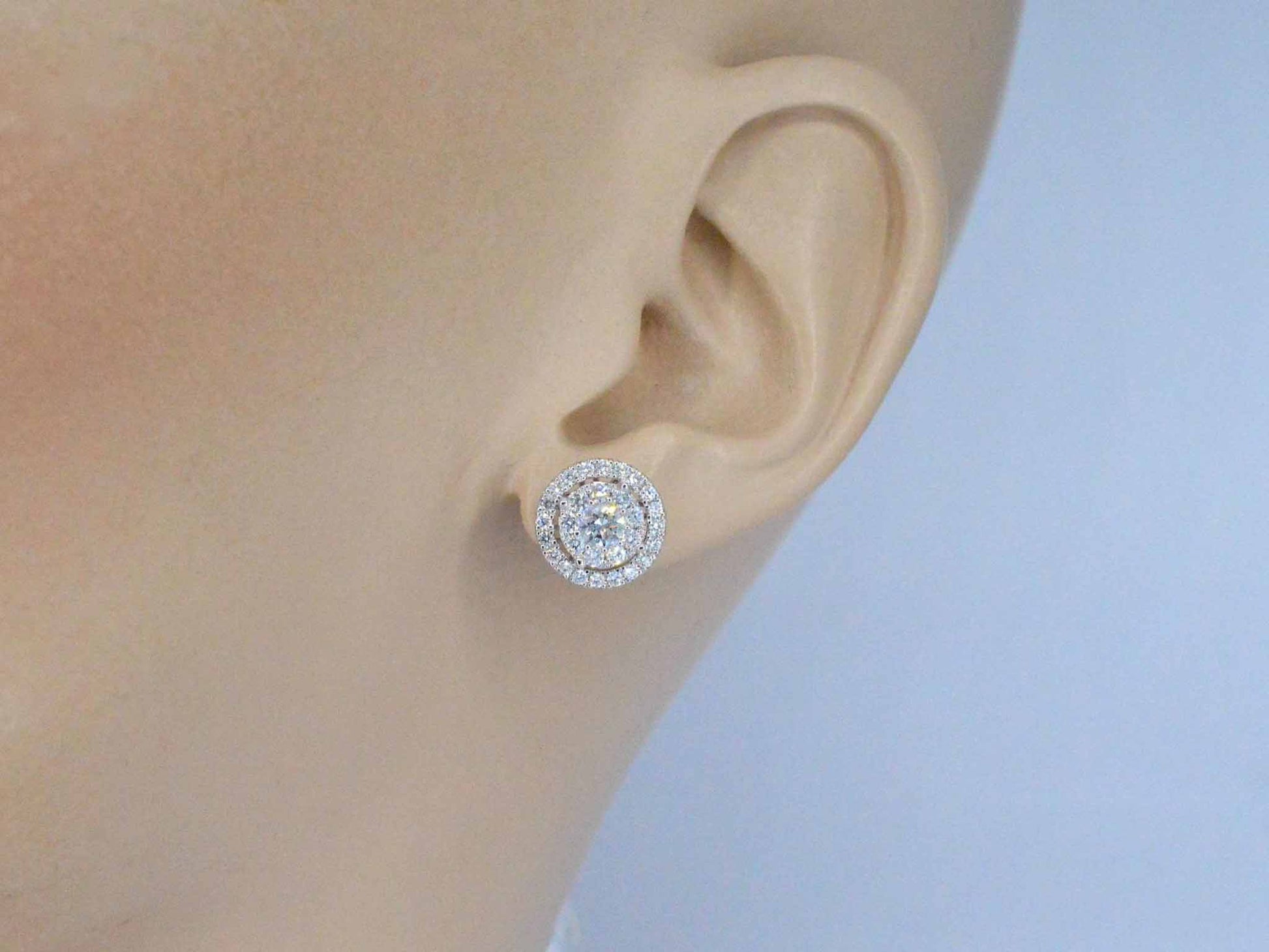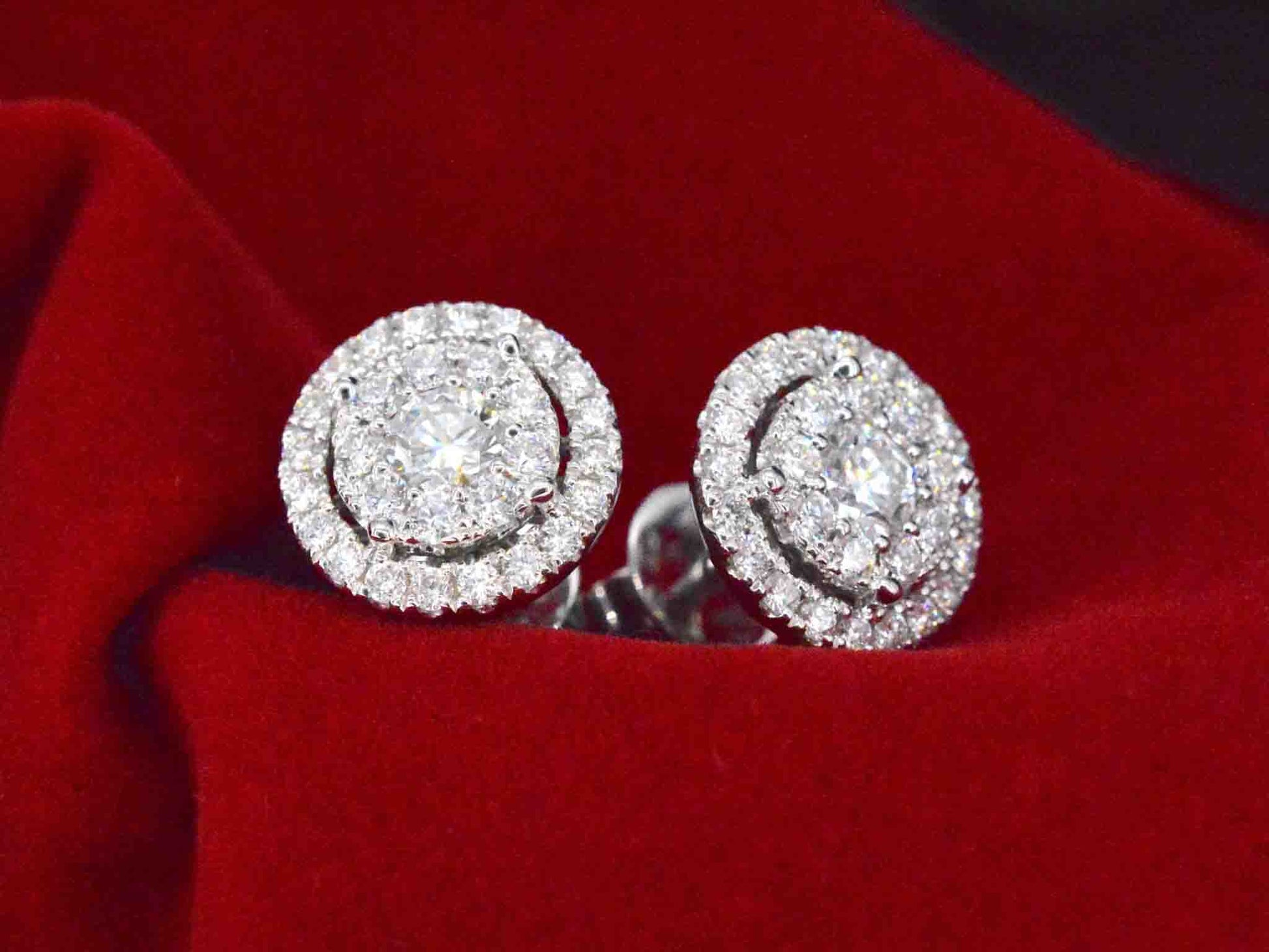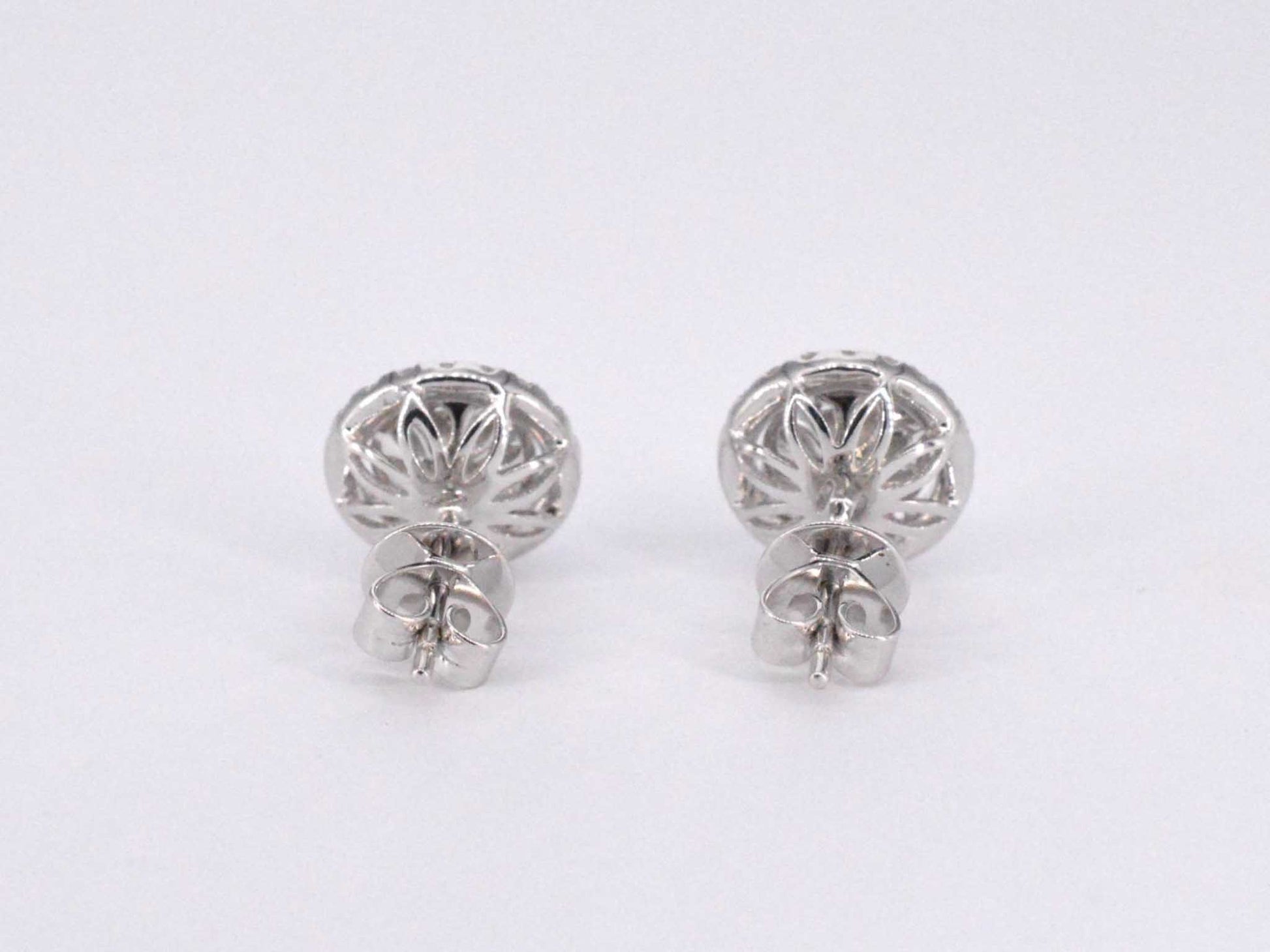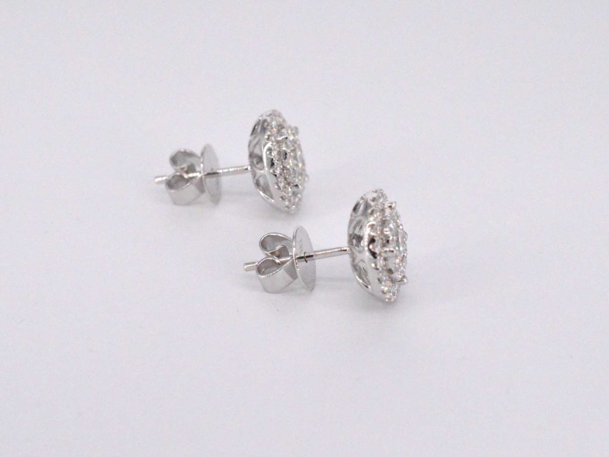Witgouden entourage oorbellen gezet met 60 briljant geslepen diamanten
