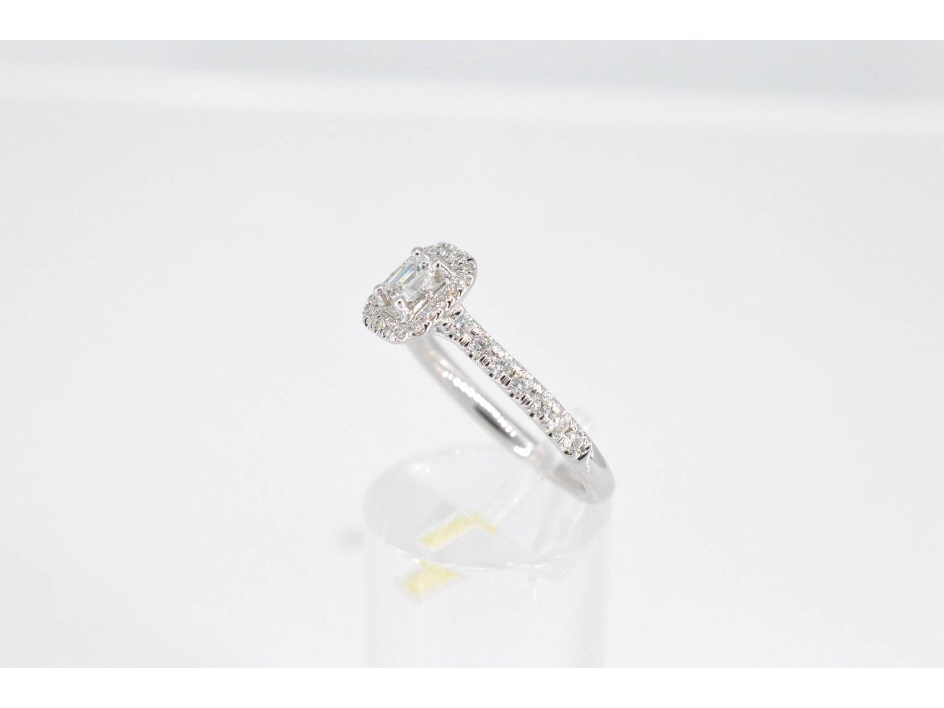 Witgouden entourage ring met briljant en baguette geslepen diamant