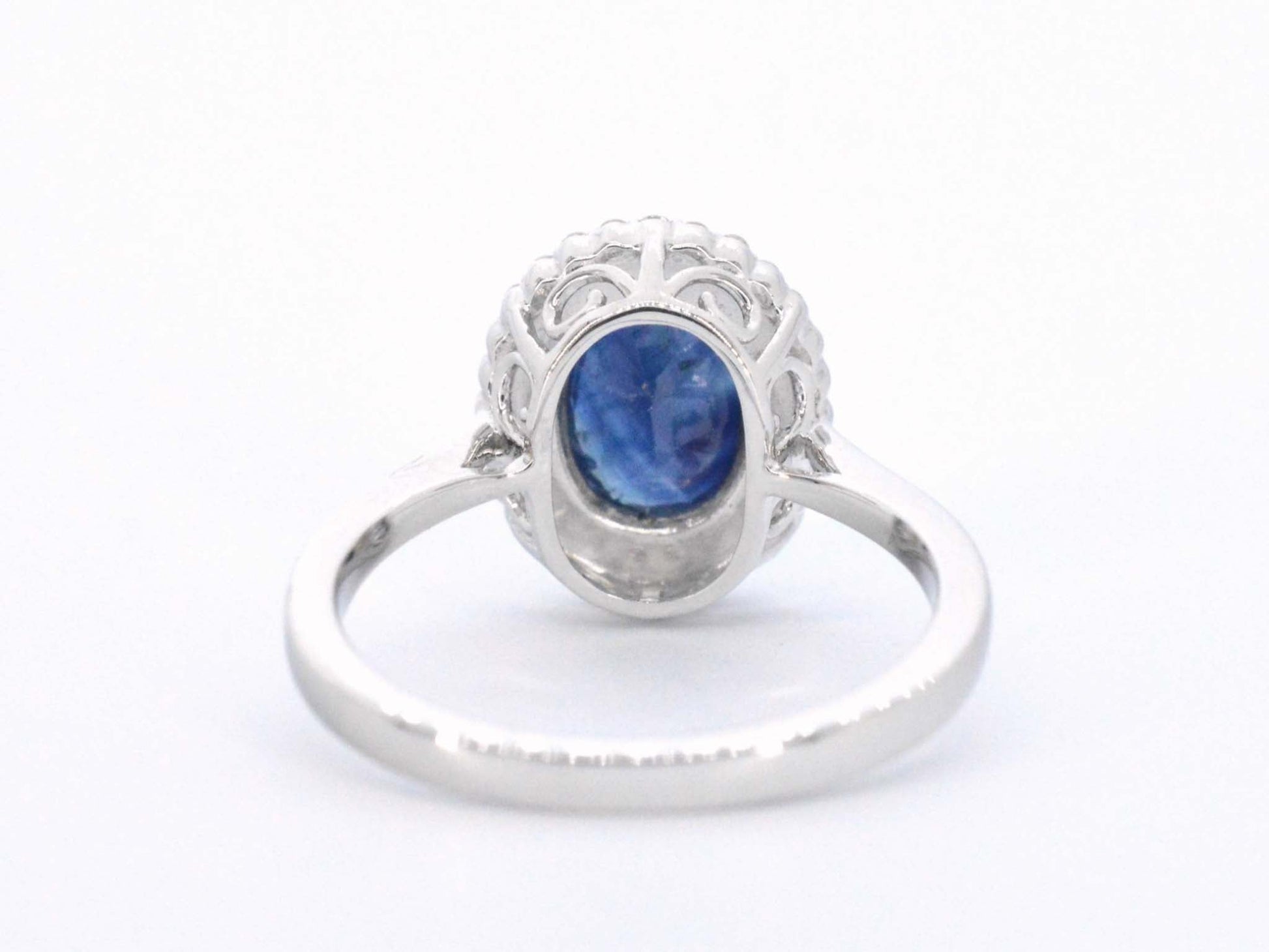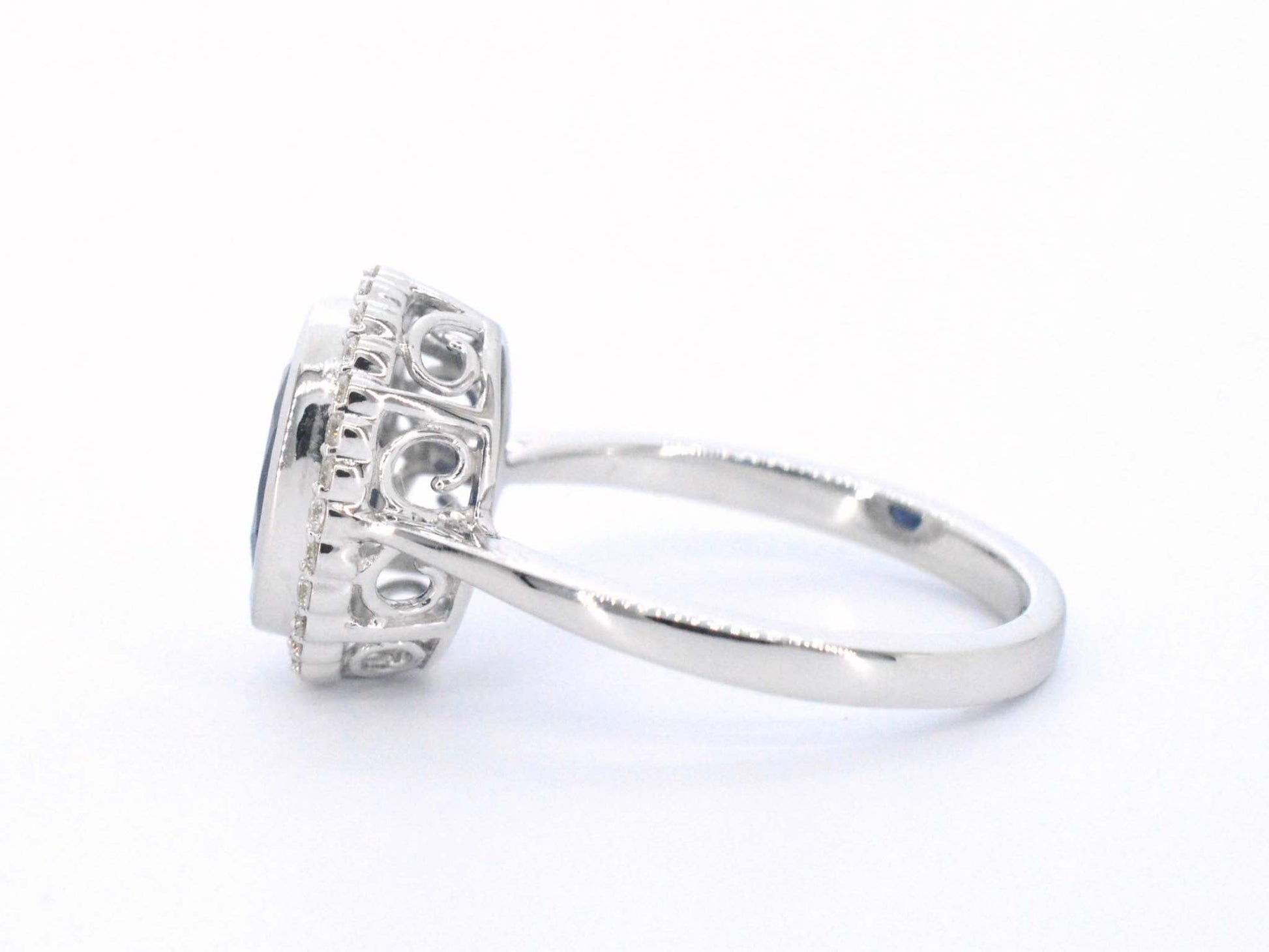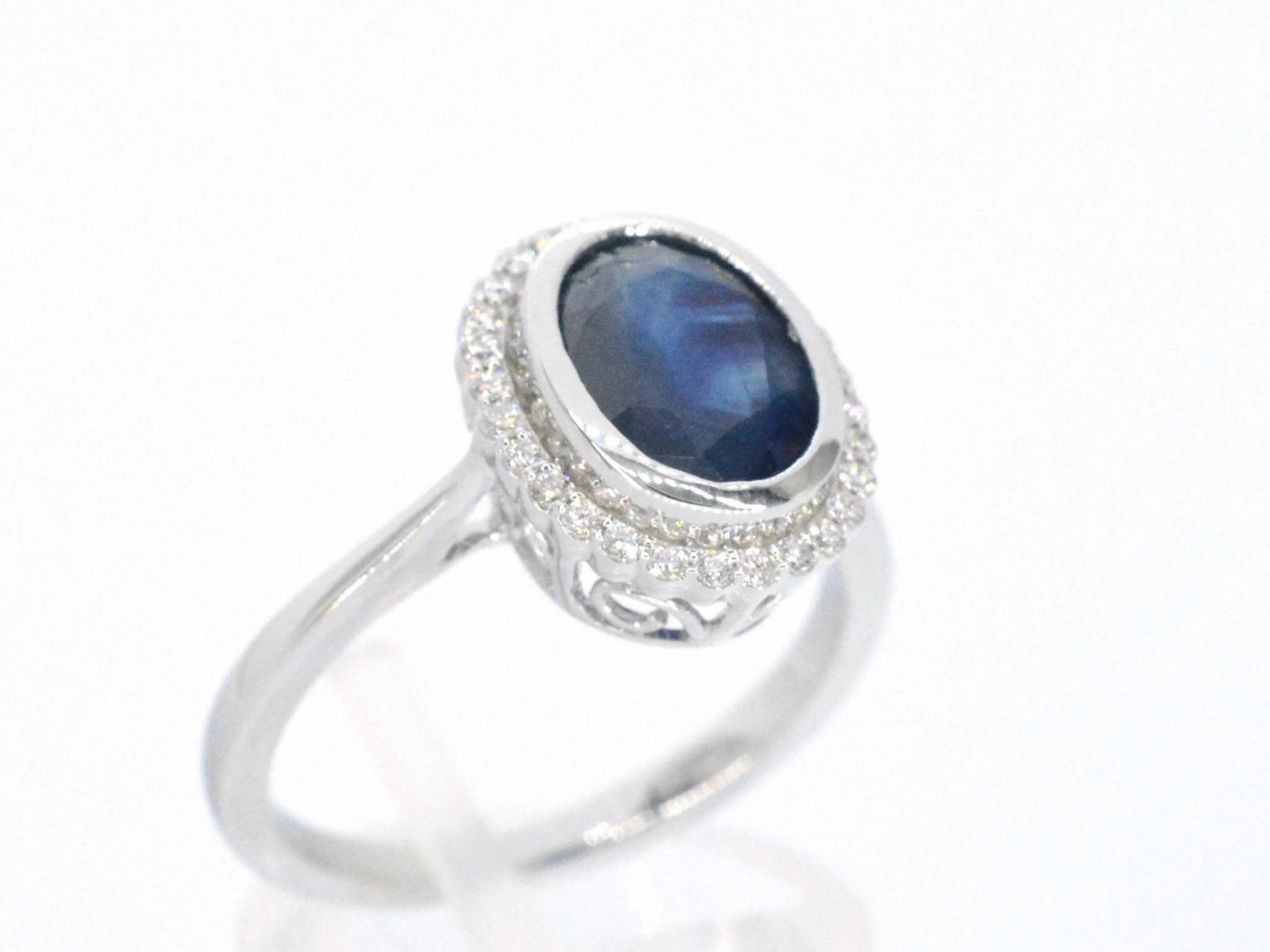 Witgouden entourage ring met diamanten en saffier