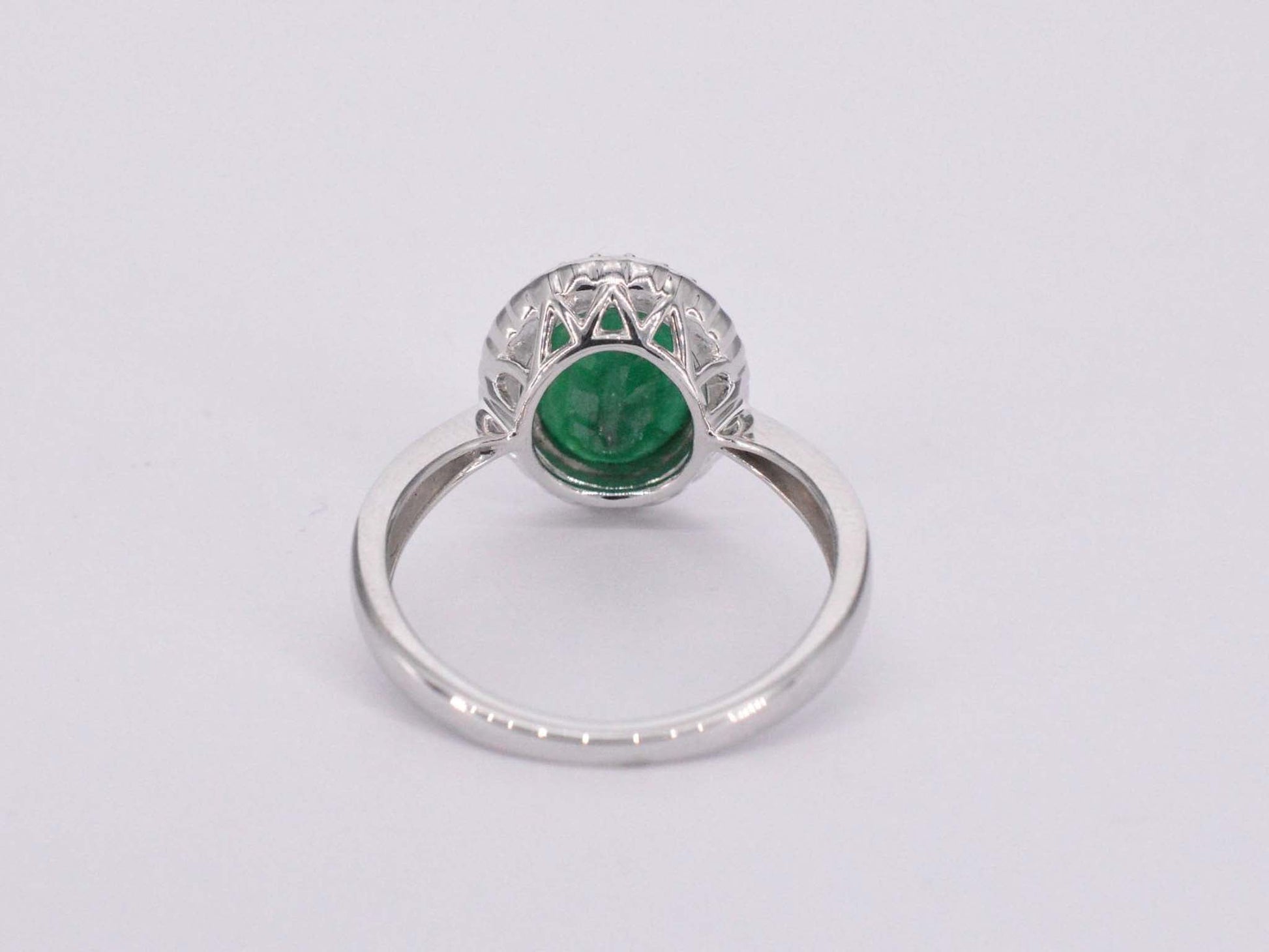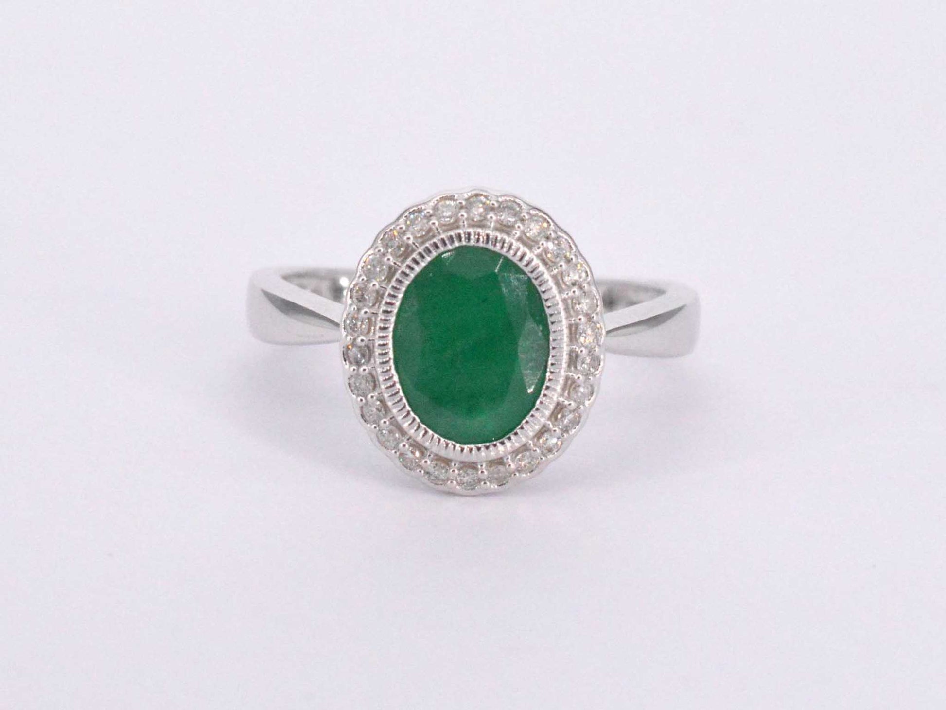 Witgouden entourage ring met diamanten en smaragd