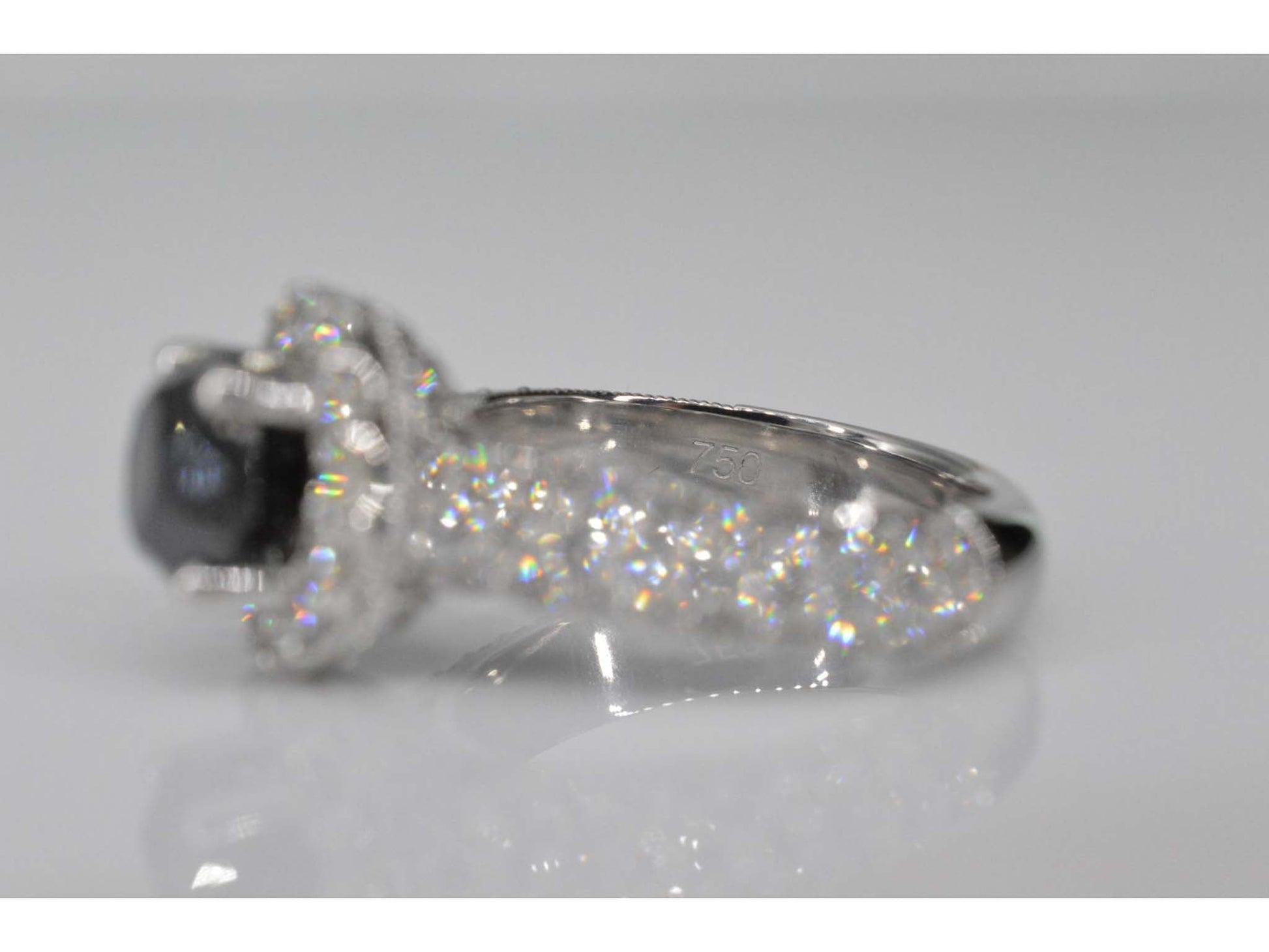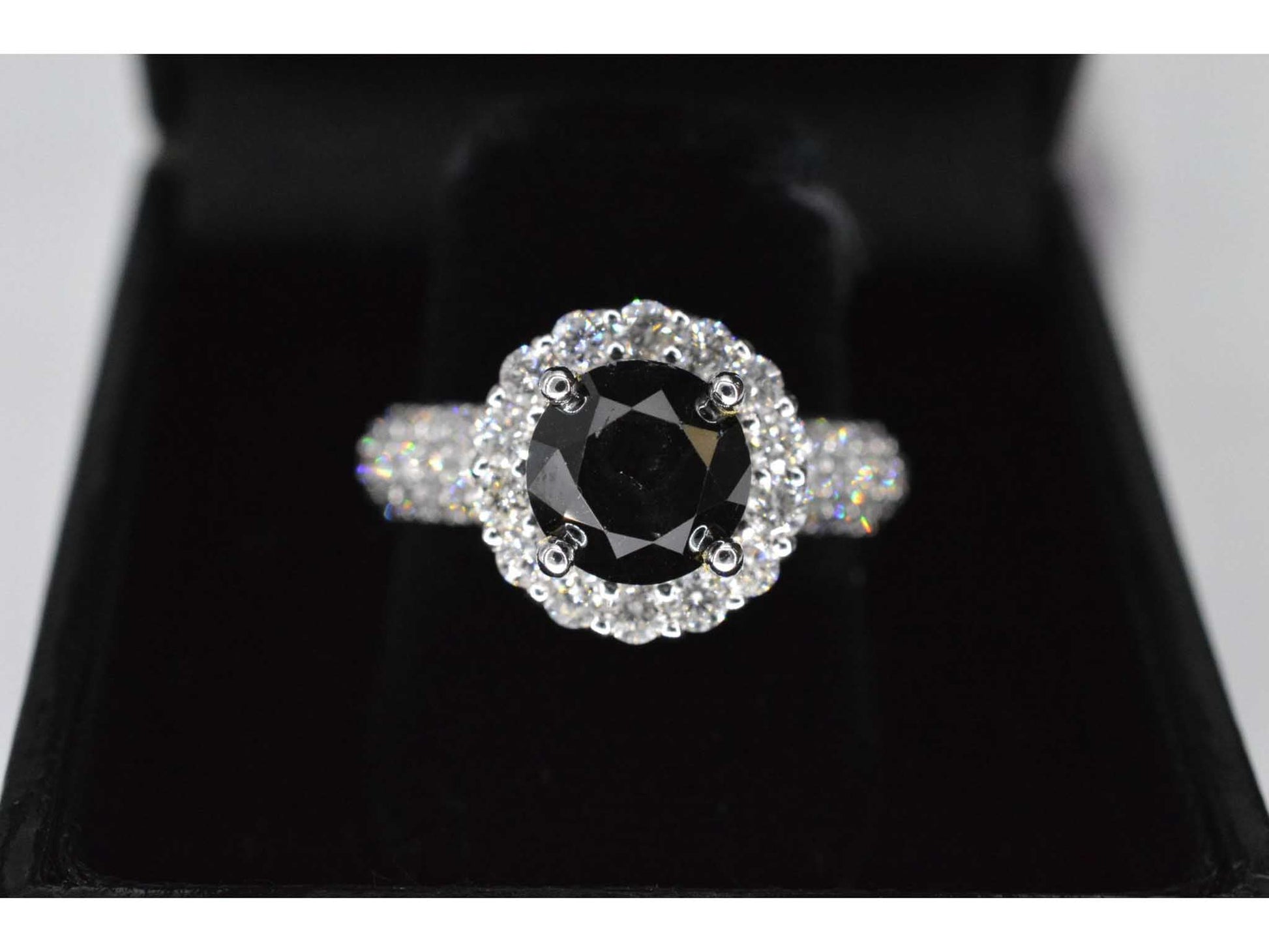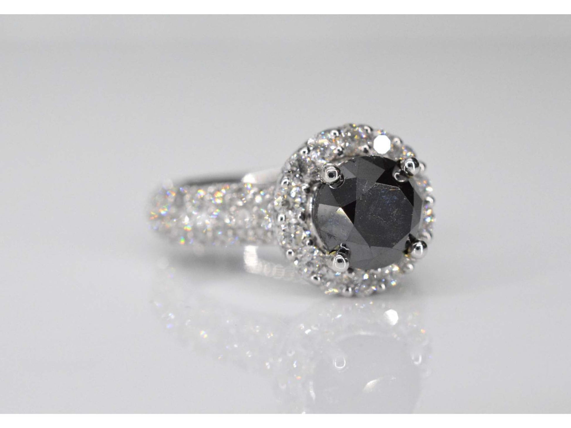 Witgouden entourage ring met grote diamanten en een zwarte diamant