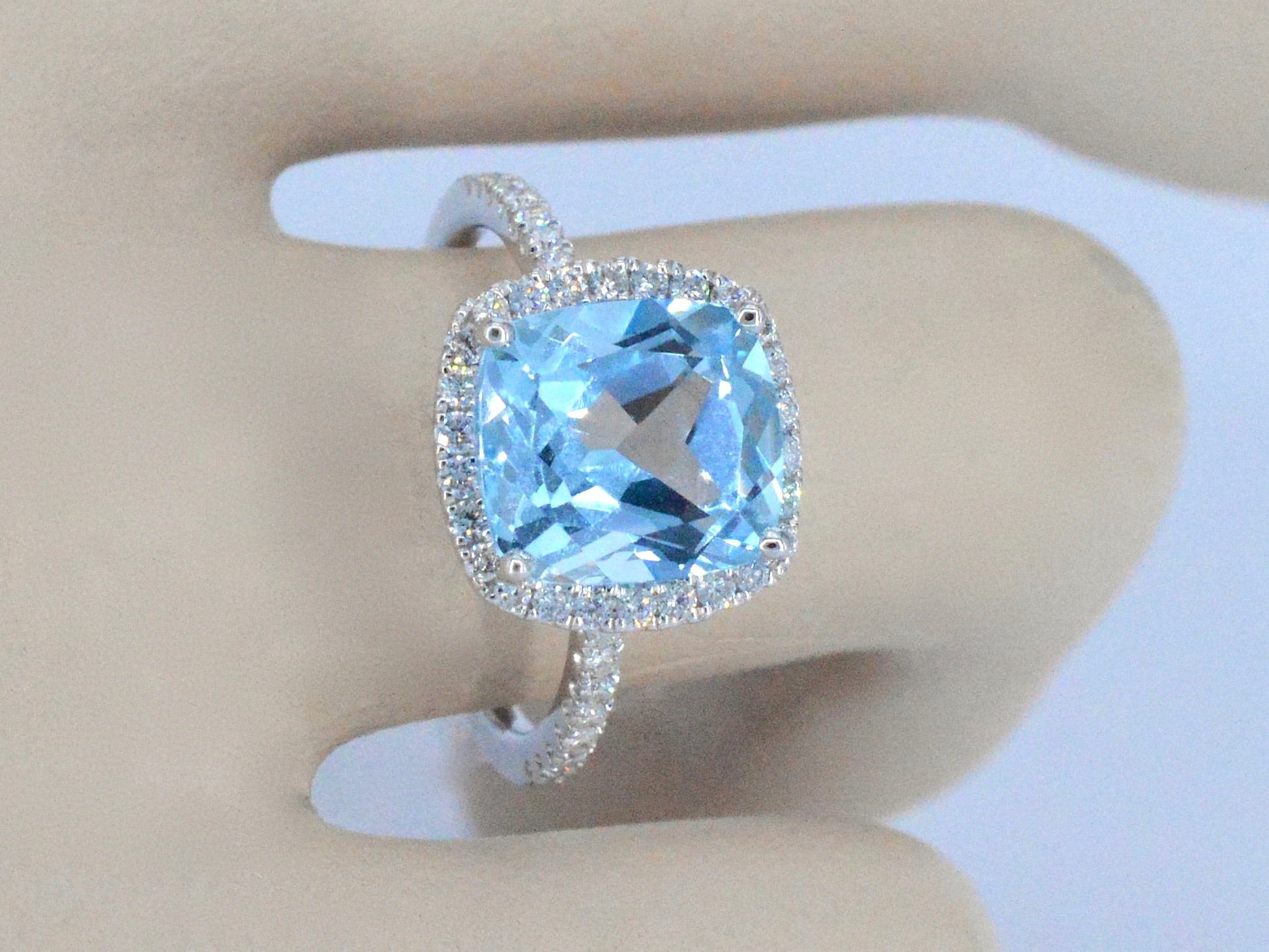 Witgouden entourage ring met kussenvormig geslepen topaas