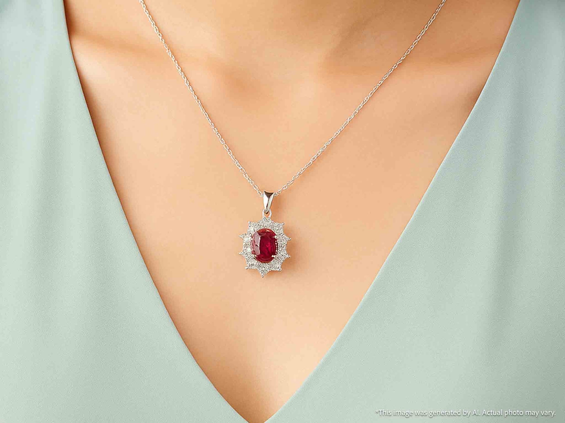 Witgouden hanger met natuurlijke diamanten en robijn