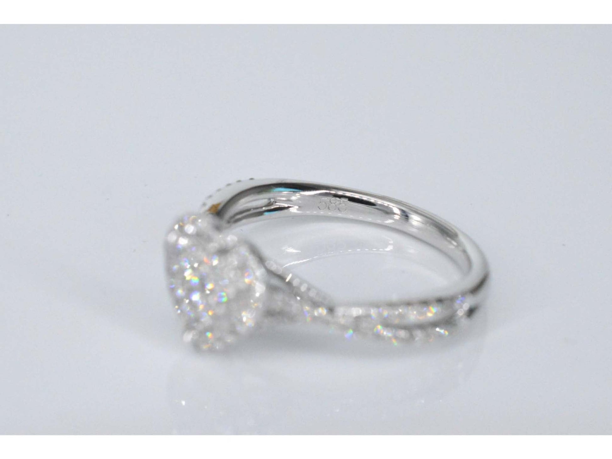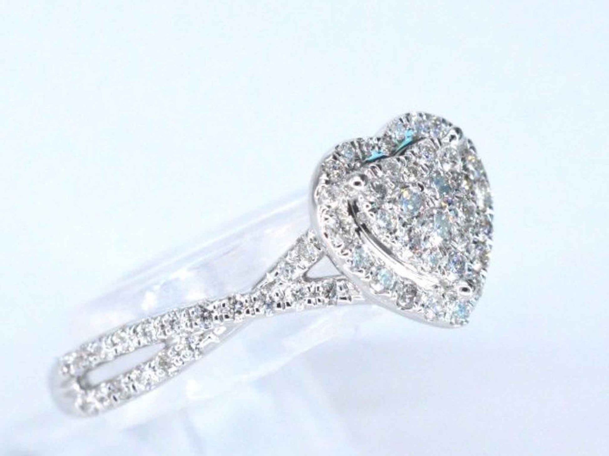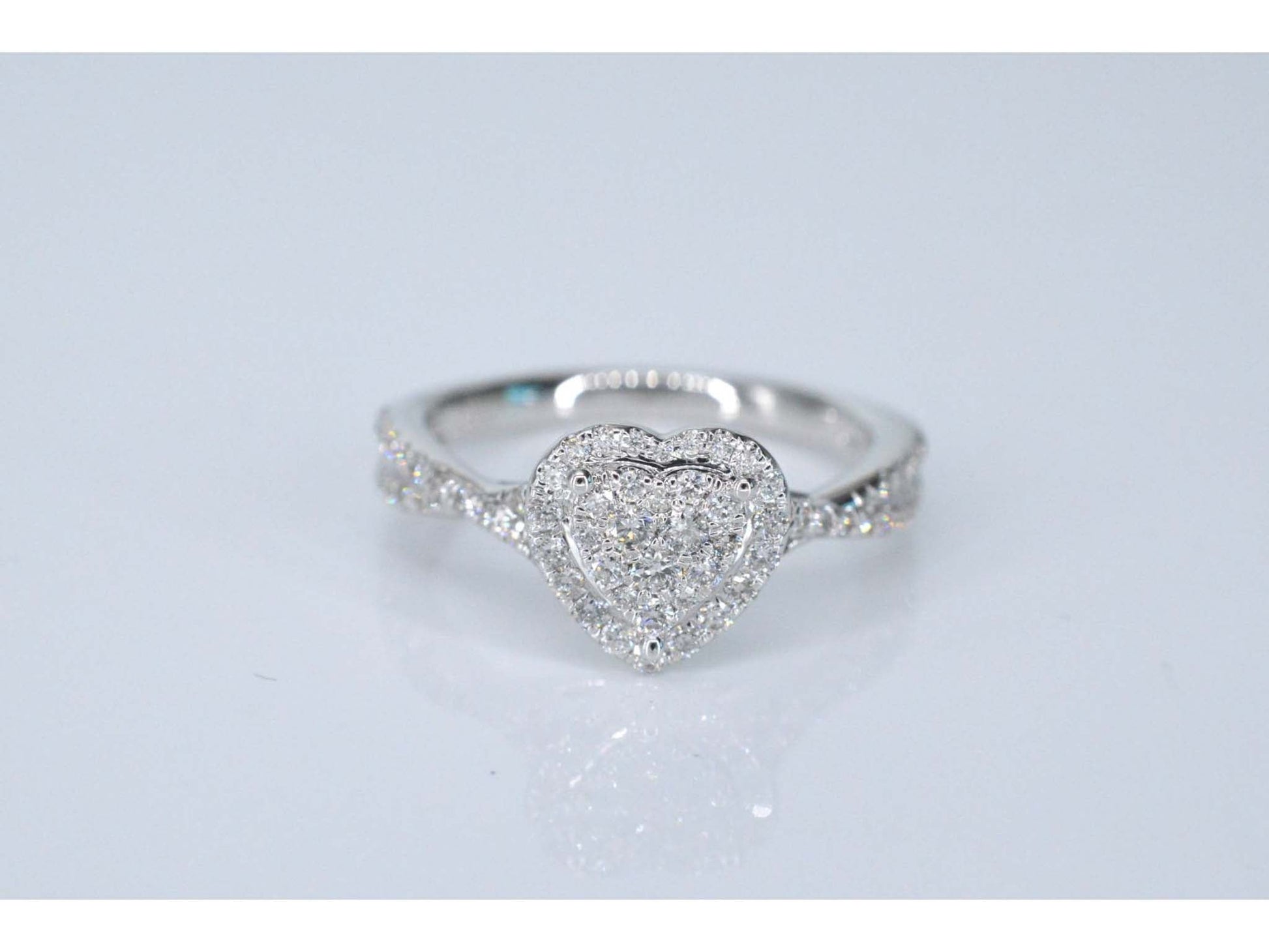 Witgouden hartvormige entourage ring met diamanten