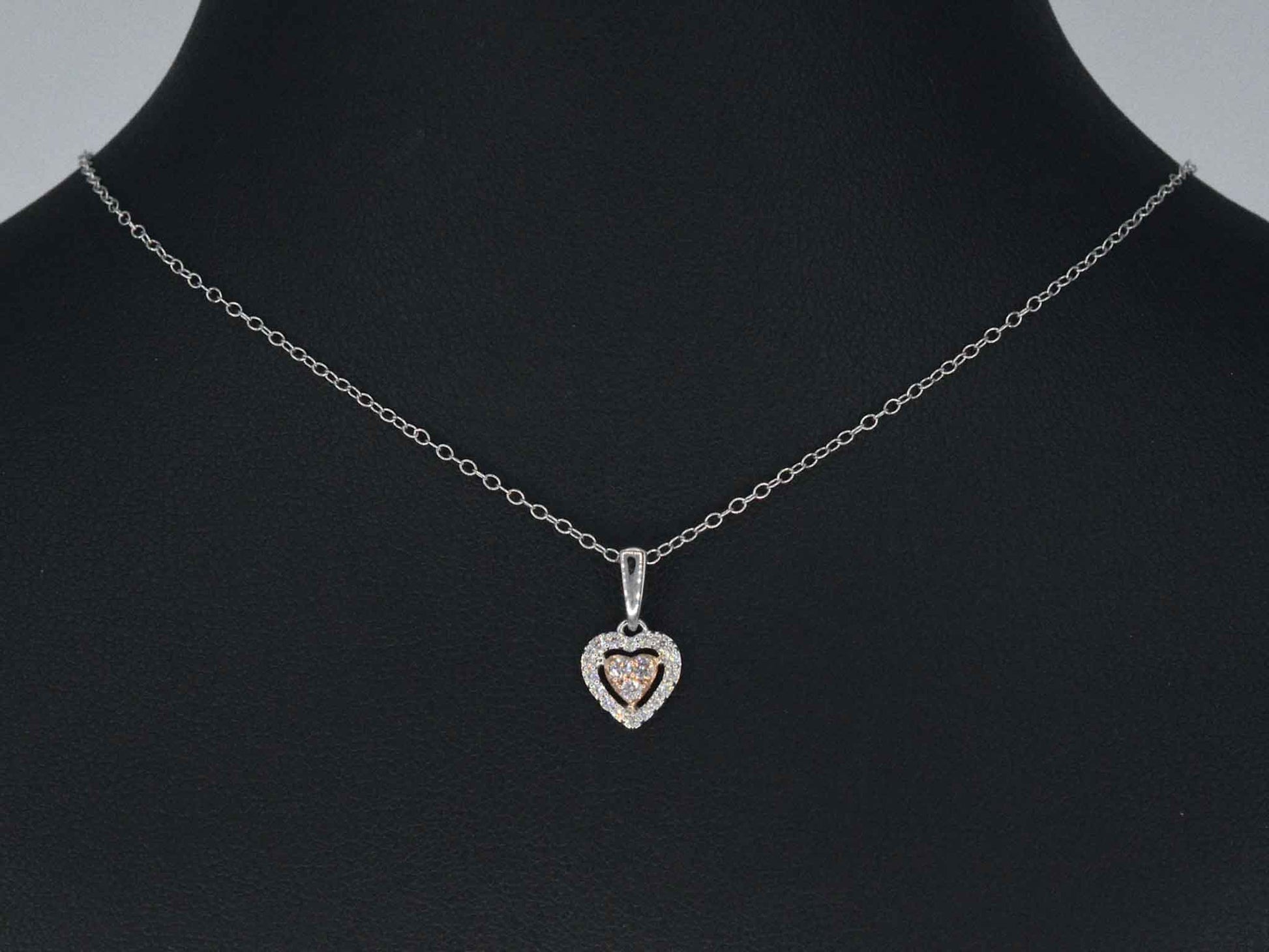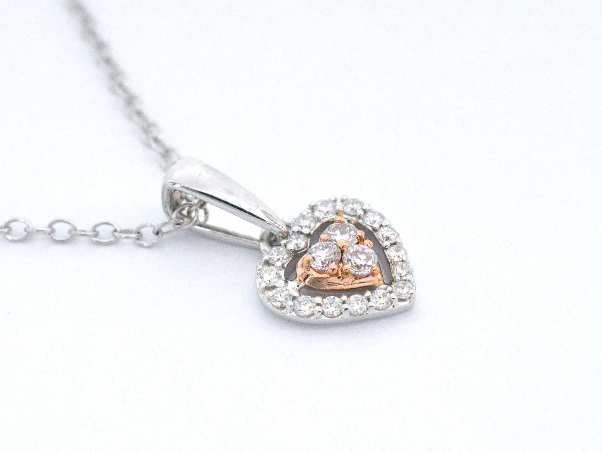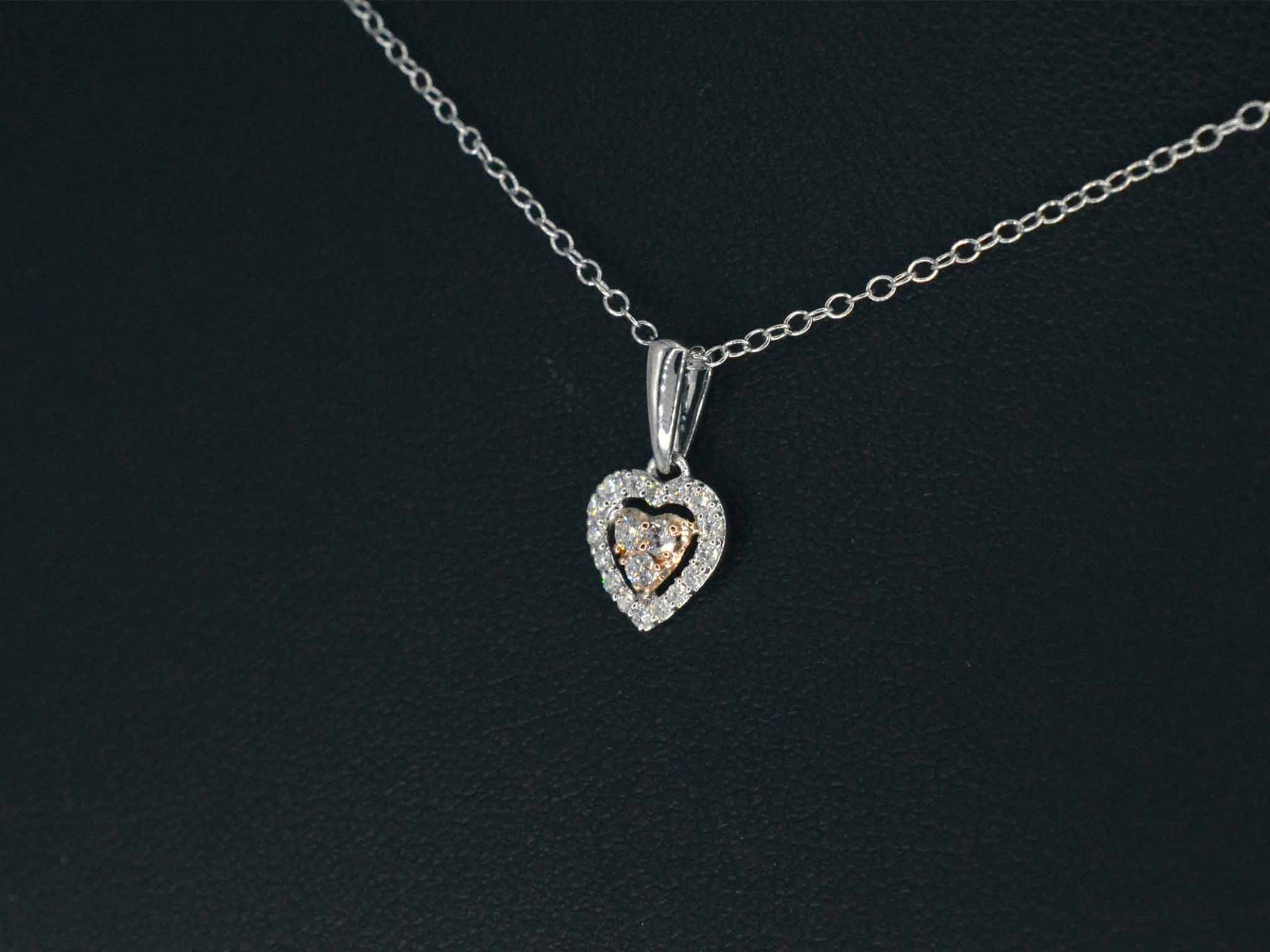 Witgouden hartvormige hanger met natuurlijke roze en witte diamant