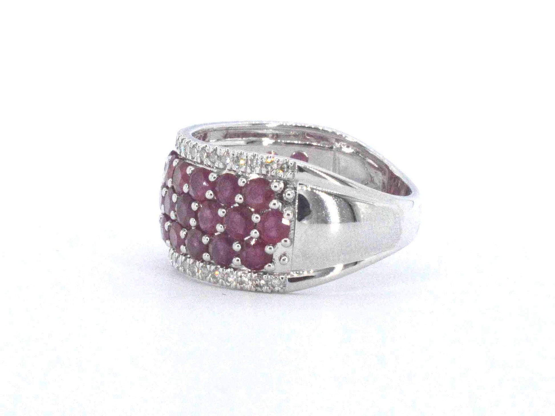 Witgouden pave ring met rijen van natuurlijke diamanten en robijnen