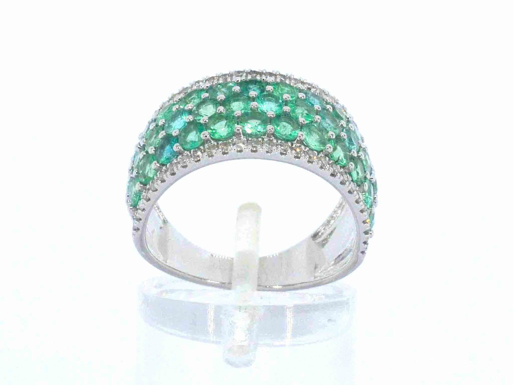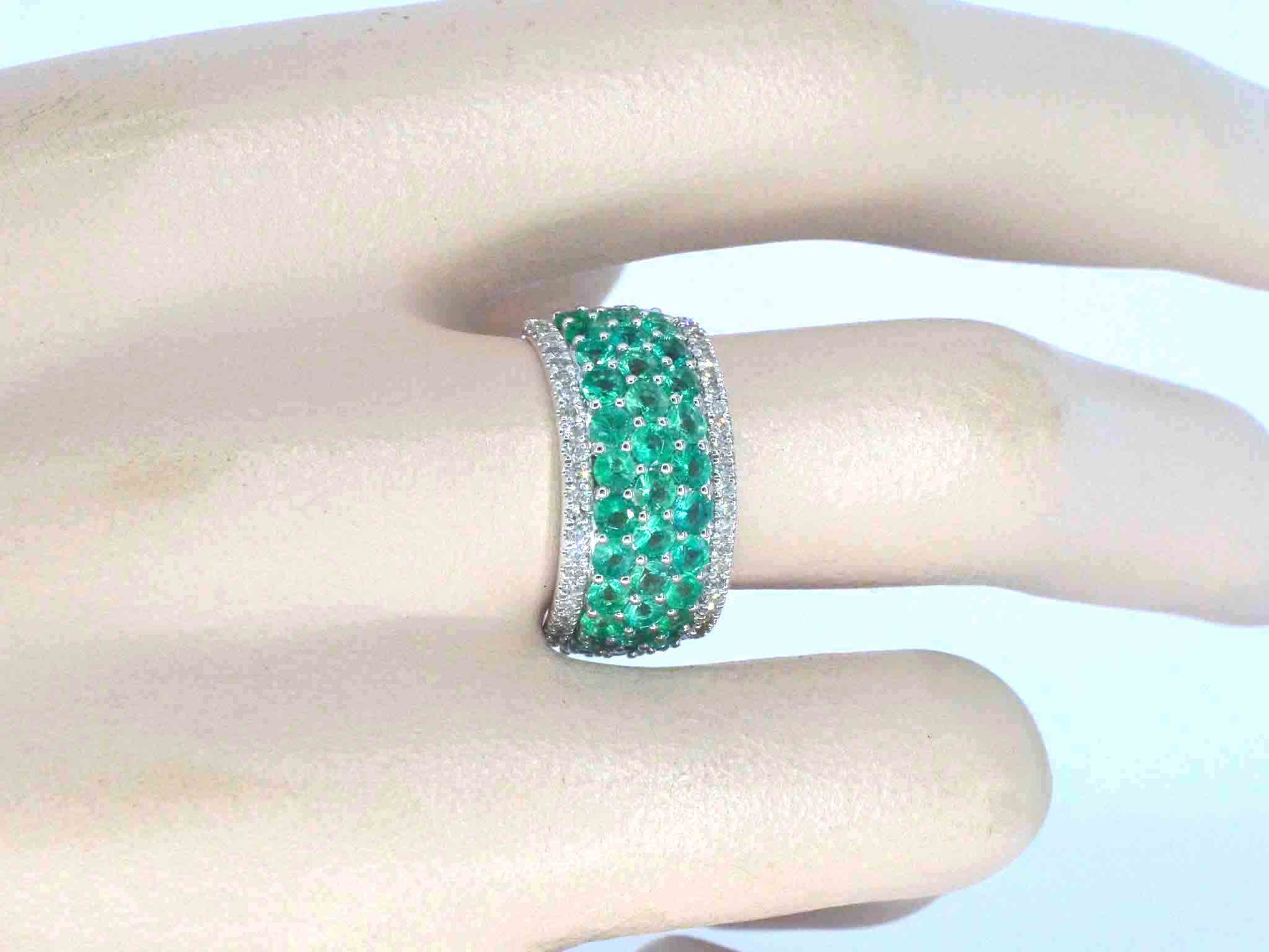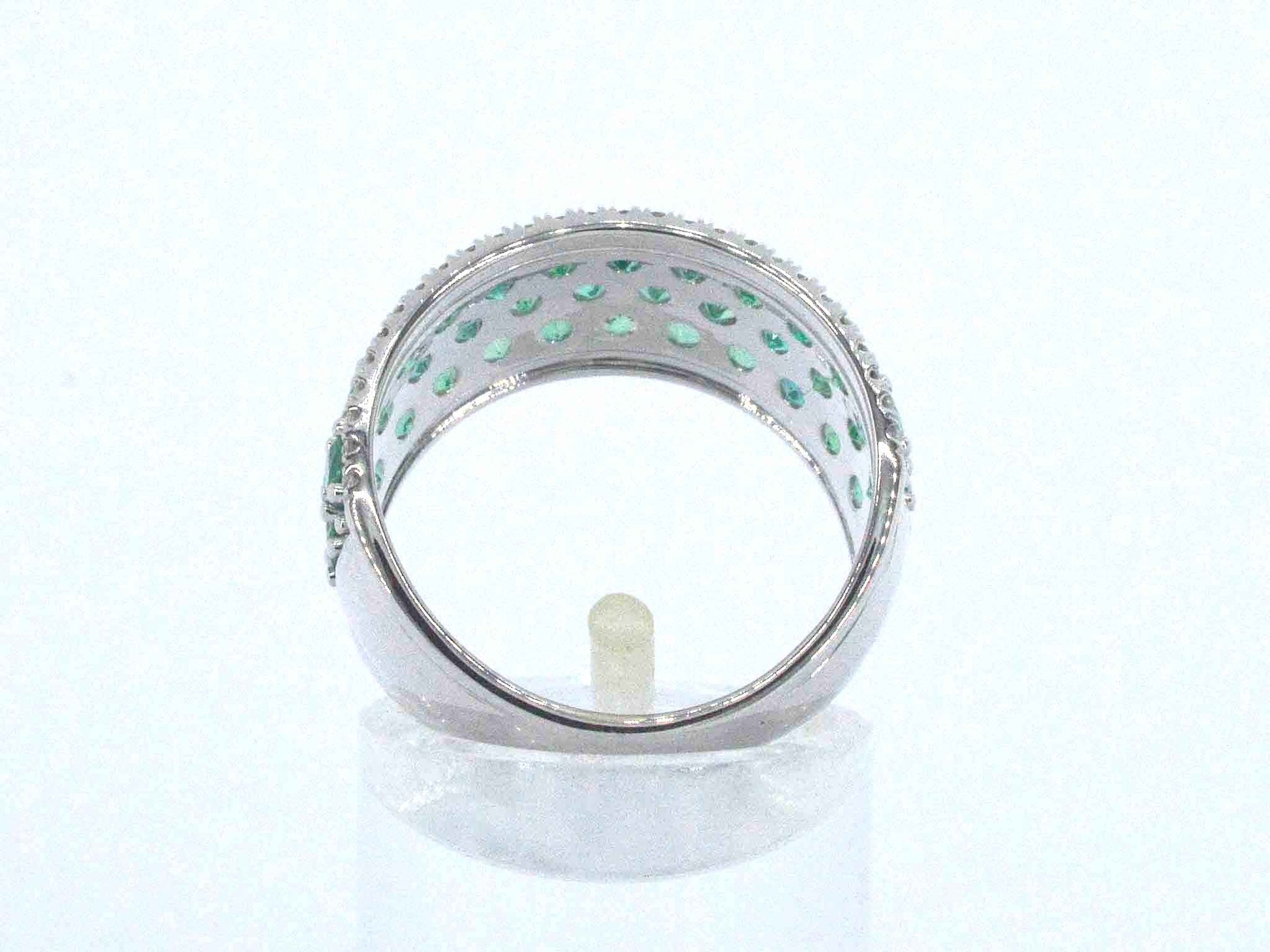 Witgouden pave ring met rijen van natuurlijke diamanten en smaragden