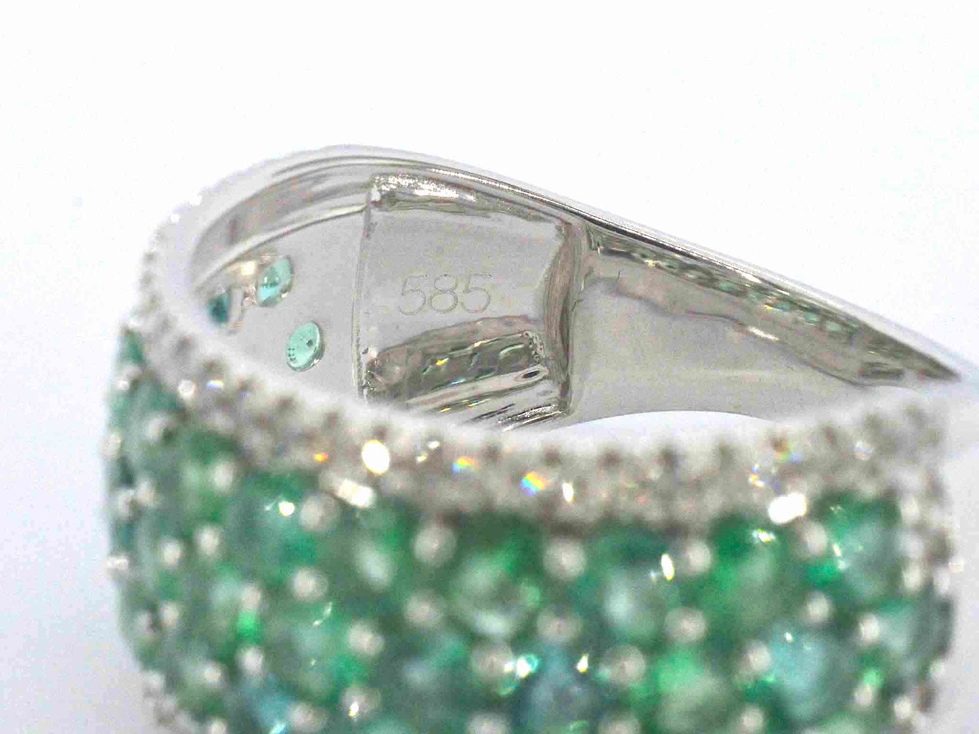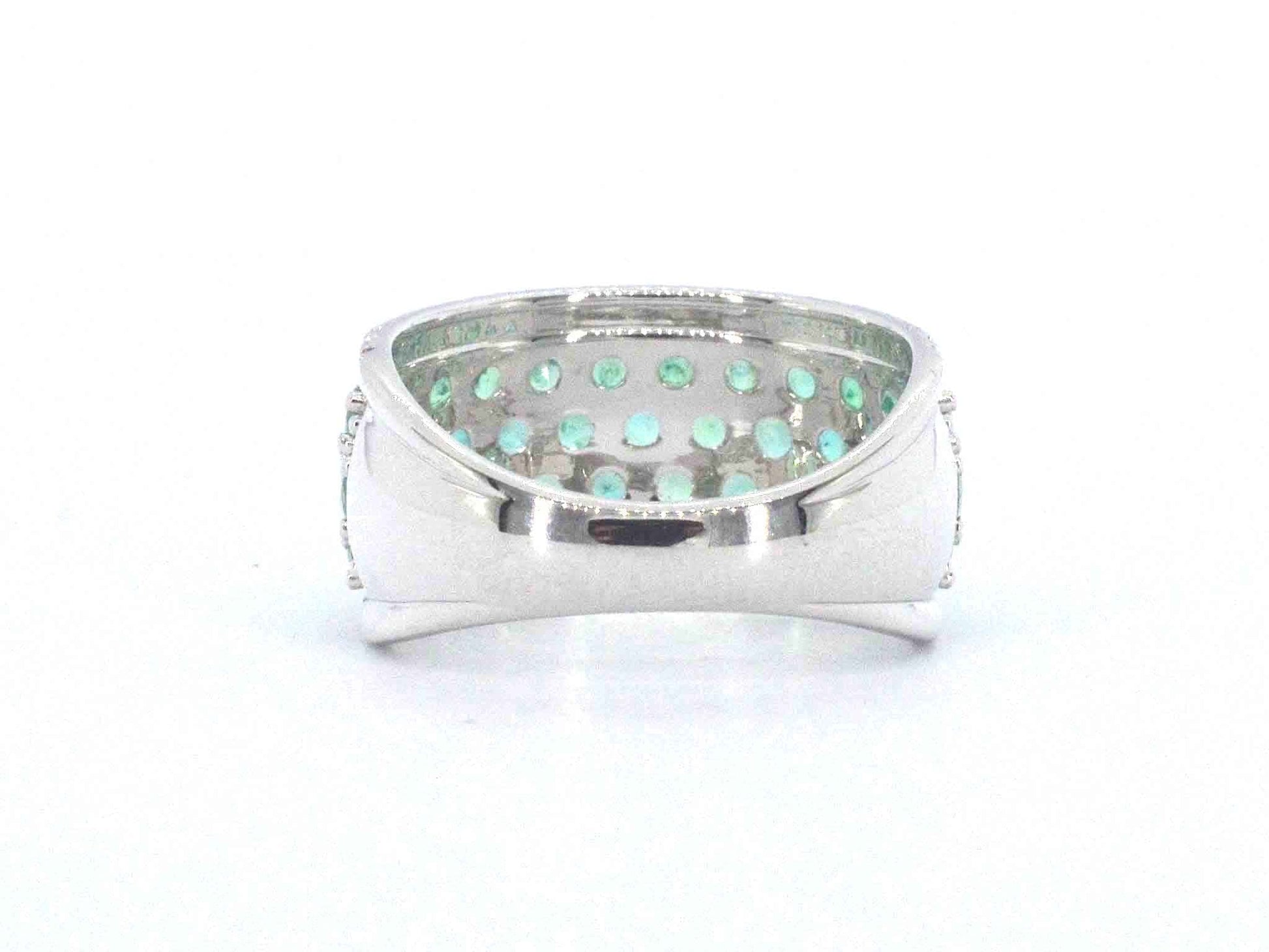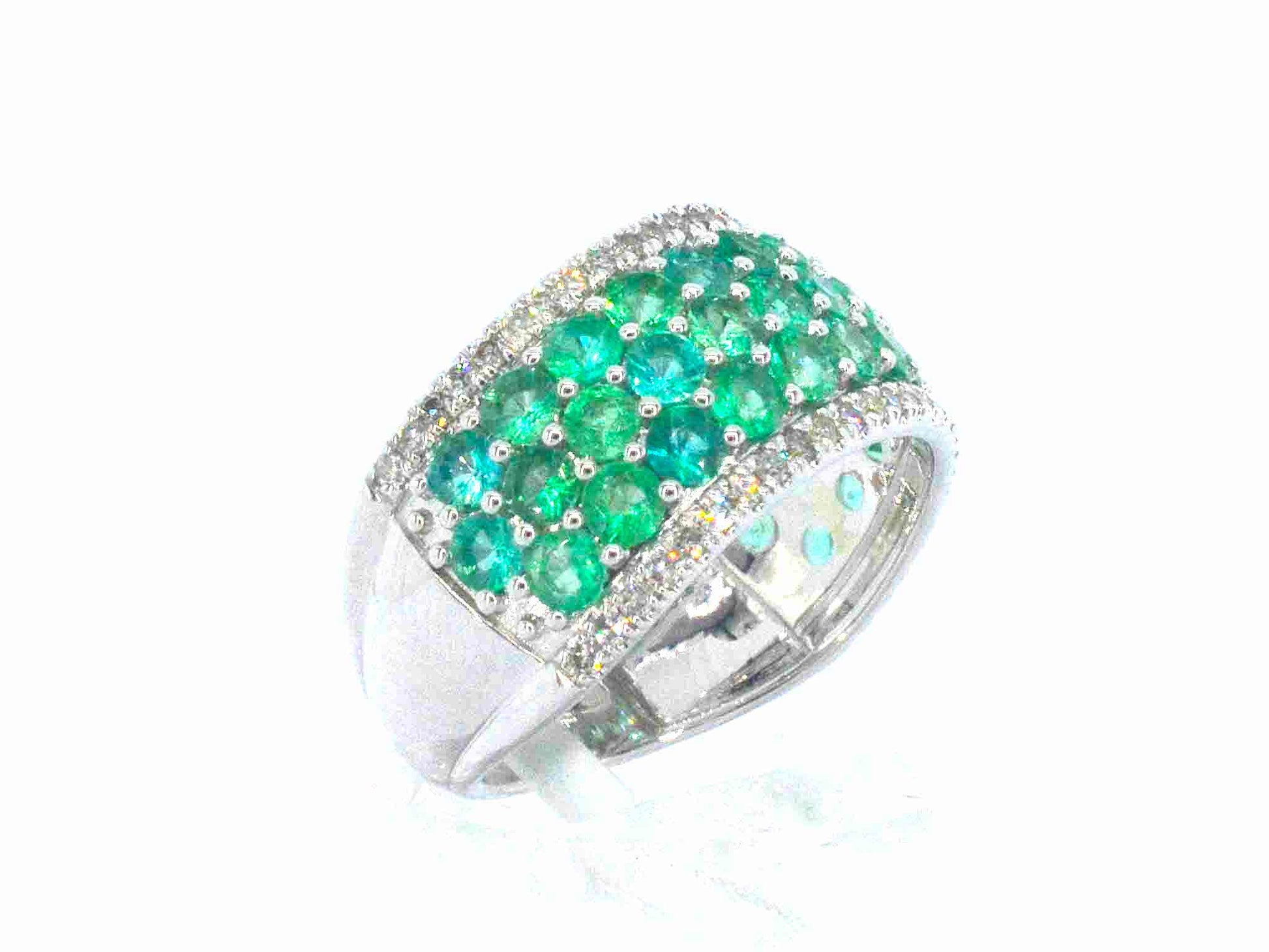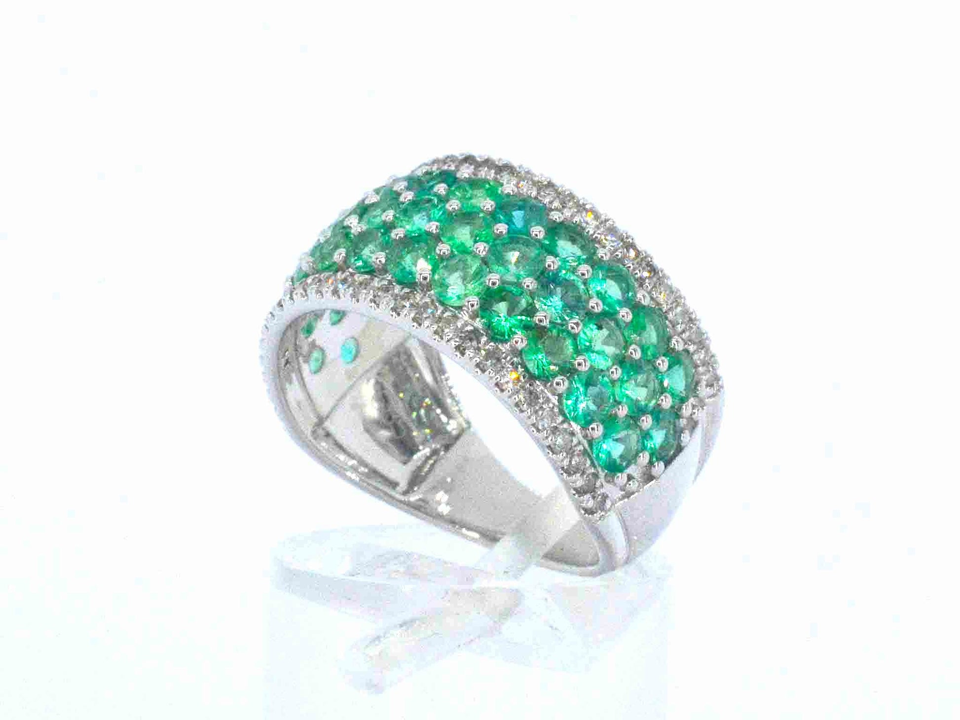 Witgouden pave ring met rijen van natuurlijke diamanten en smaragden